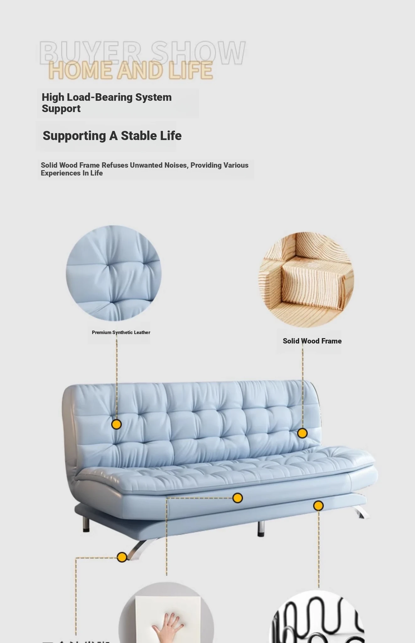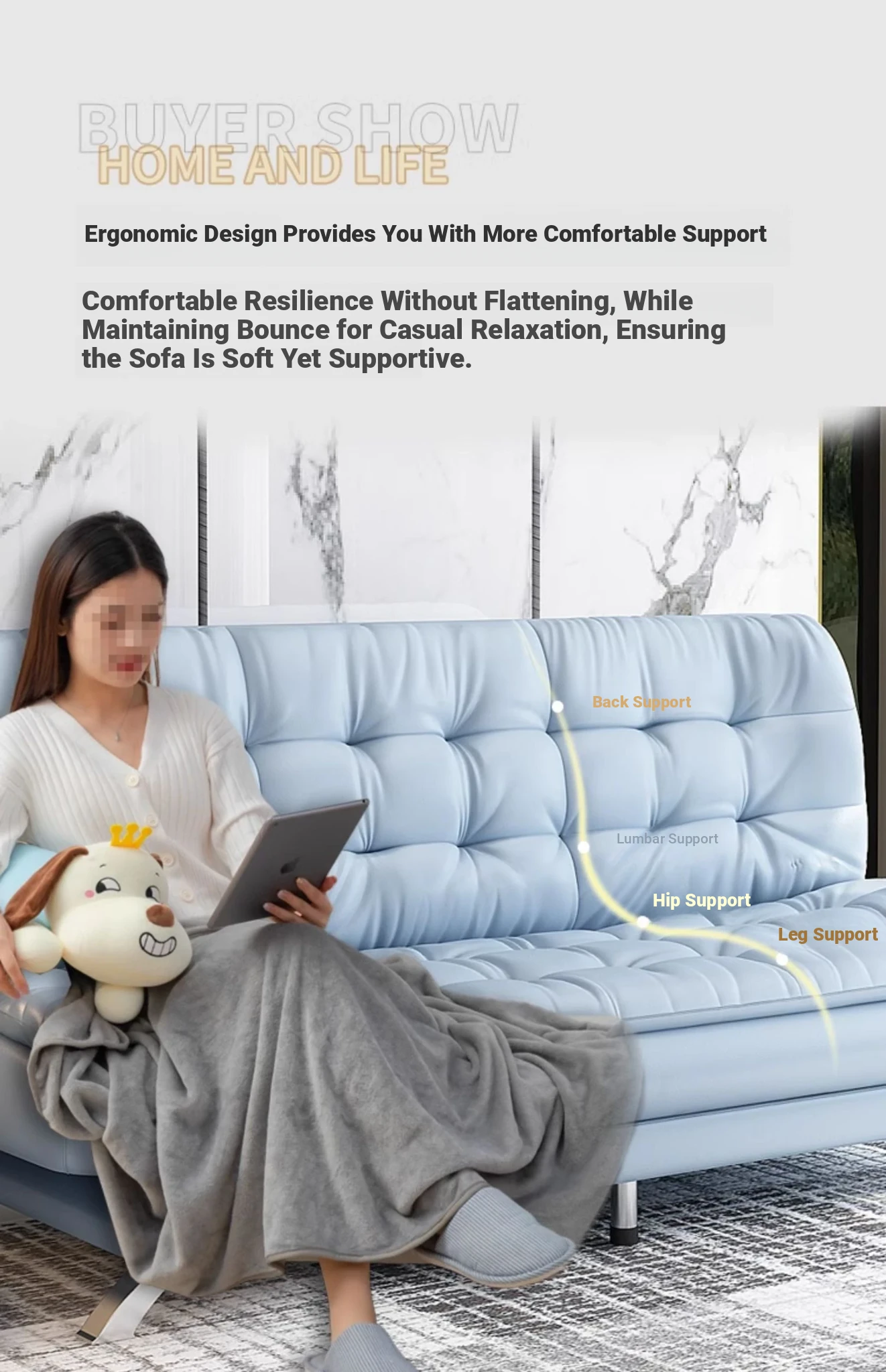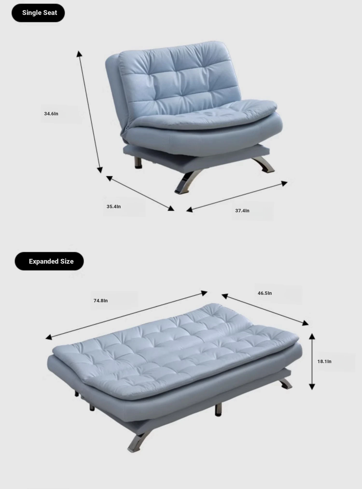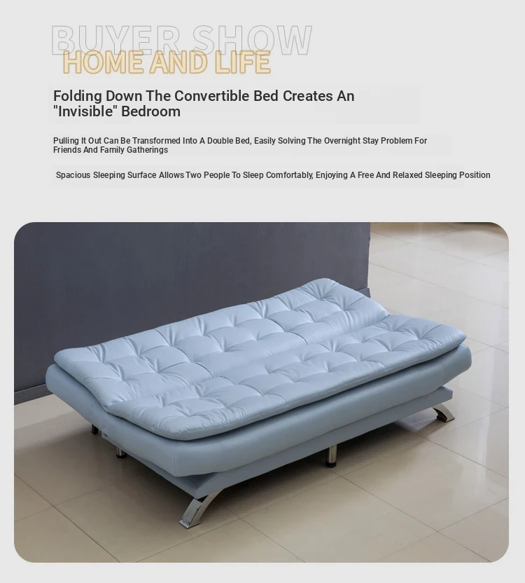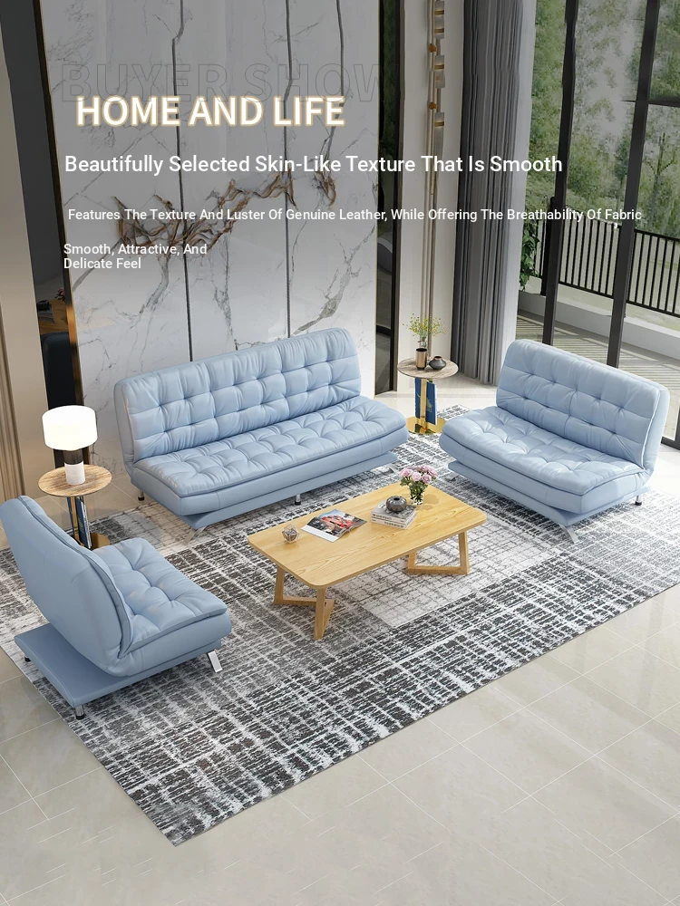 Genuine Leather Sofa - Modern Minimalist 3-Seater for Small Spaces, Perfect for Living Rooms & Offices, Features Top-Grade Cowhide and Convertible Bed Function