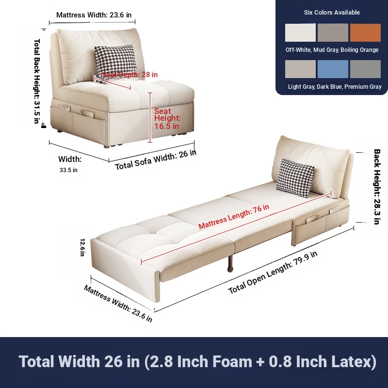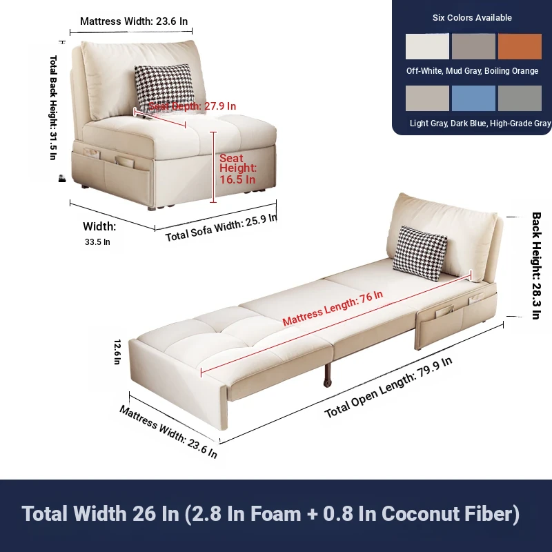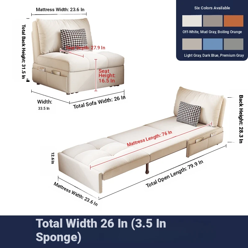 【Hong Kong Free Shipping】2024 New Trendy Sofa Bed - Armrest-Free, Space-Saving, Foldable and Expandable Design for Small Apartments, Perfect for Single or Double Use