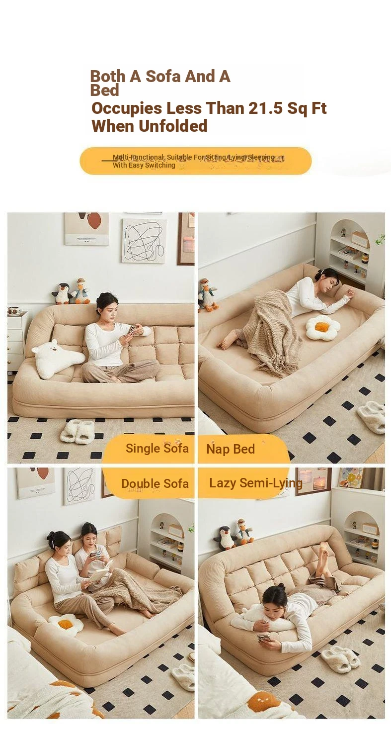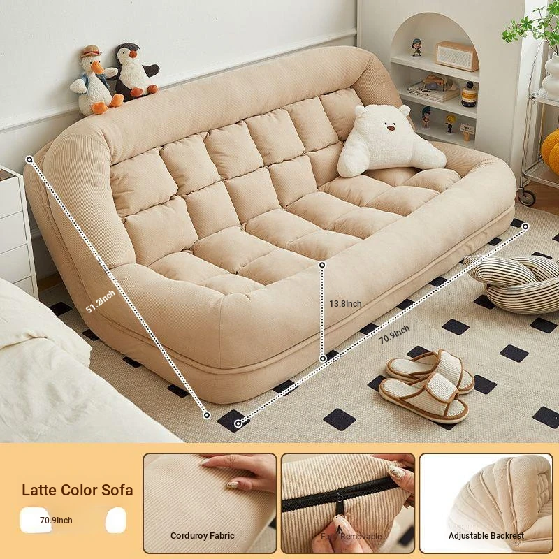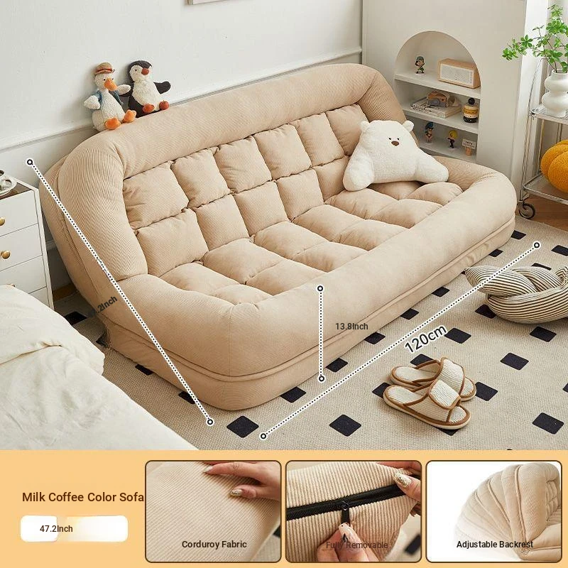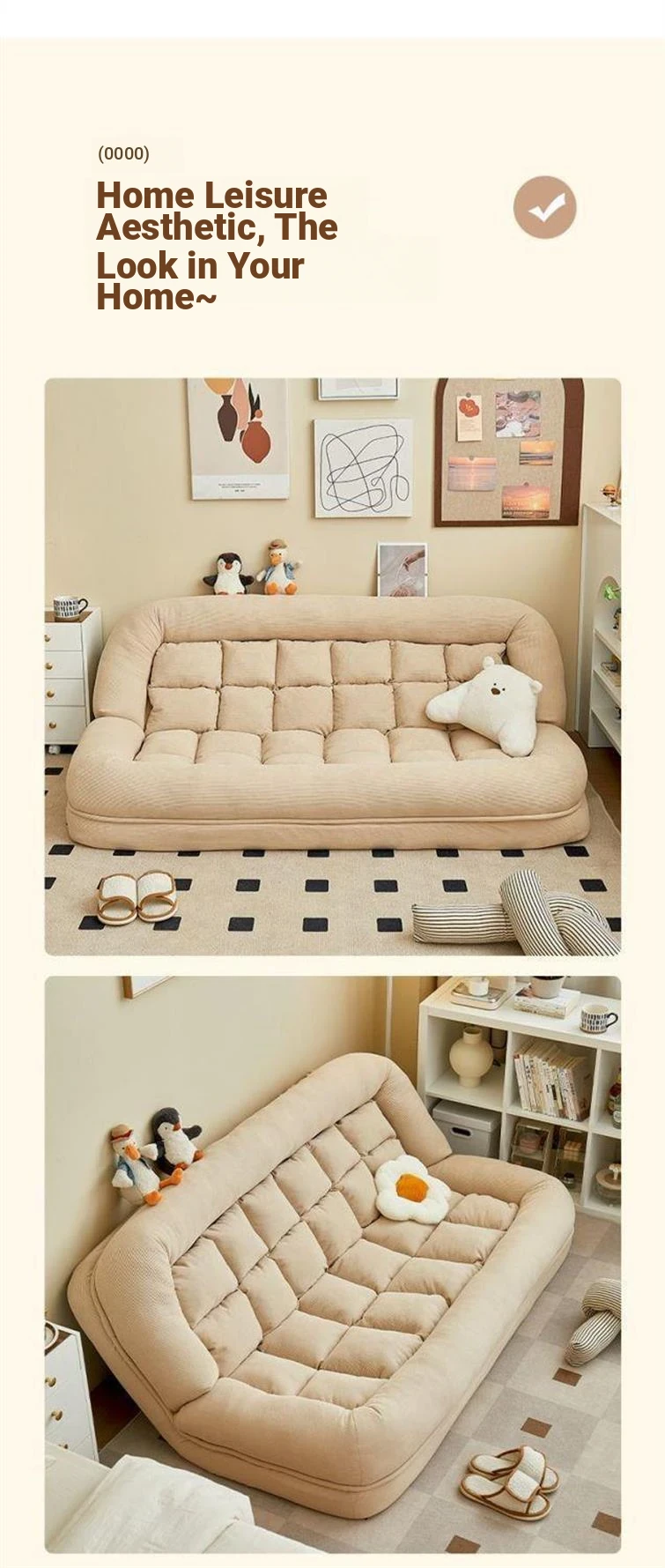Double nest [120*120] beige Comfortable corduroy [send 2 large cushions] thickened increase the feeling of sitting in the cloud