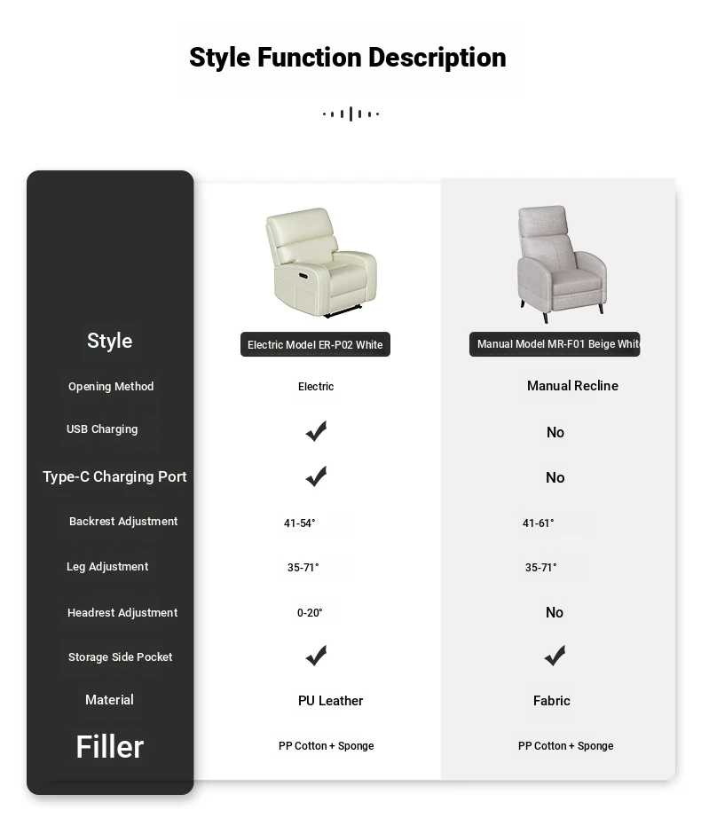 Lege ER-P02/MR-F01 Multifunctional Electric Single Sofa - Eco-Friendly PU Leather Recliner for Ultimate Comfort and Relaxation