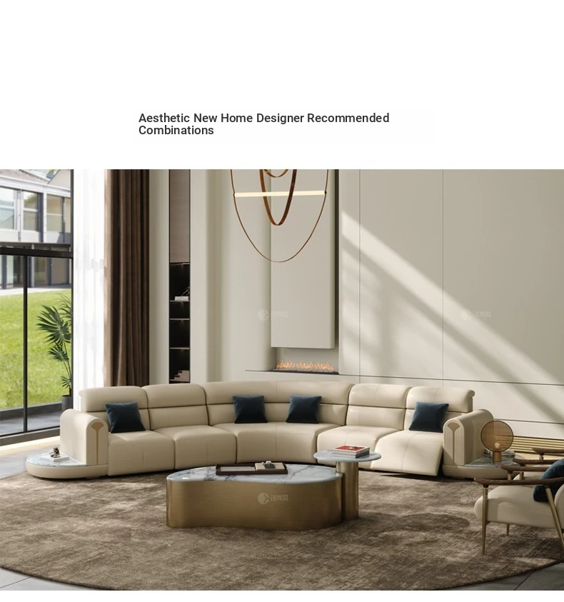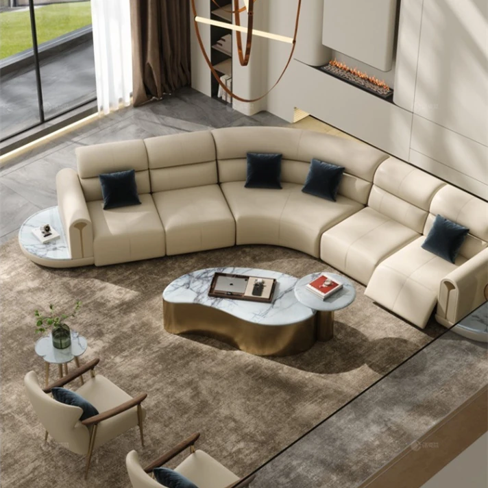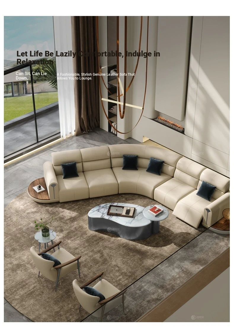 Luxury Curved Leather Sofa for Living Room - Premium Italian Design, Ideal for Spacious Villas and Modern Homes, Crafted from Top-Grain Cowhide for Ultimate Comfort and Style.