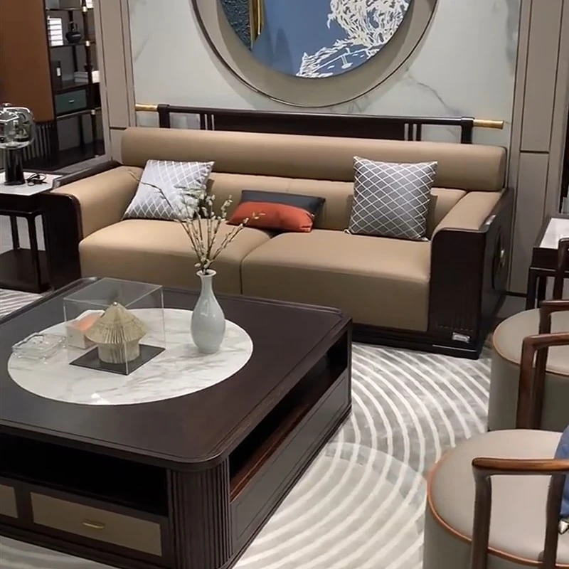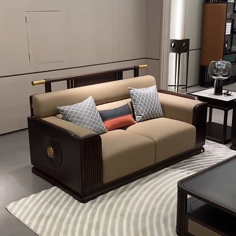 Modern Chinese-Style Ukin Wood Official Hat Sofa Set - Luxurious Solid Wood Furniture for Villas and Apartment Living Rooms