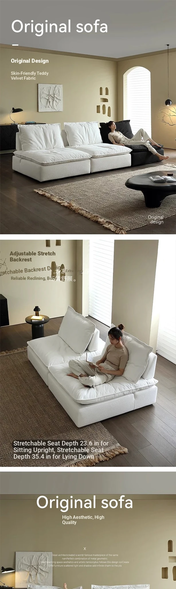 Modern Minimalist Cloud Sofa - No Armrest, Teddy Velvet, Movable Backrest, Creamy Style, Modular Single Lazy Couch