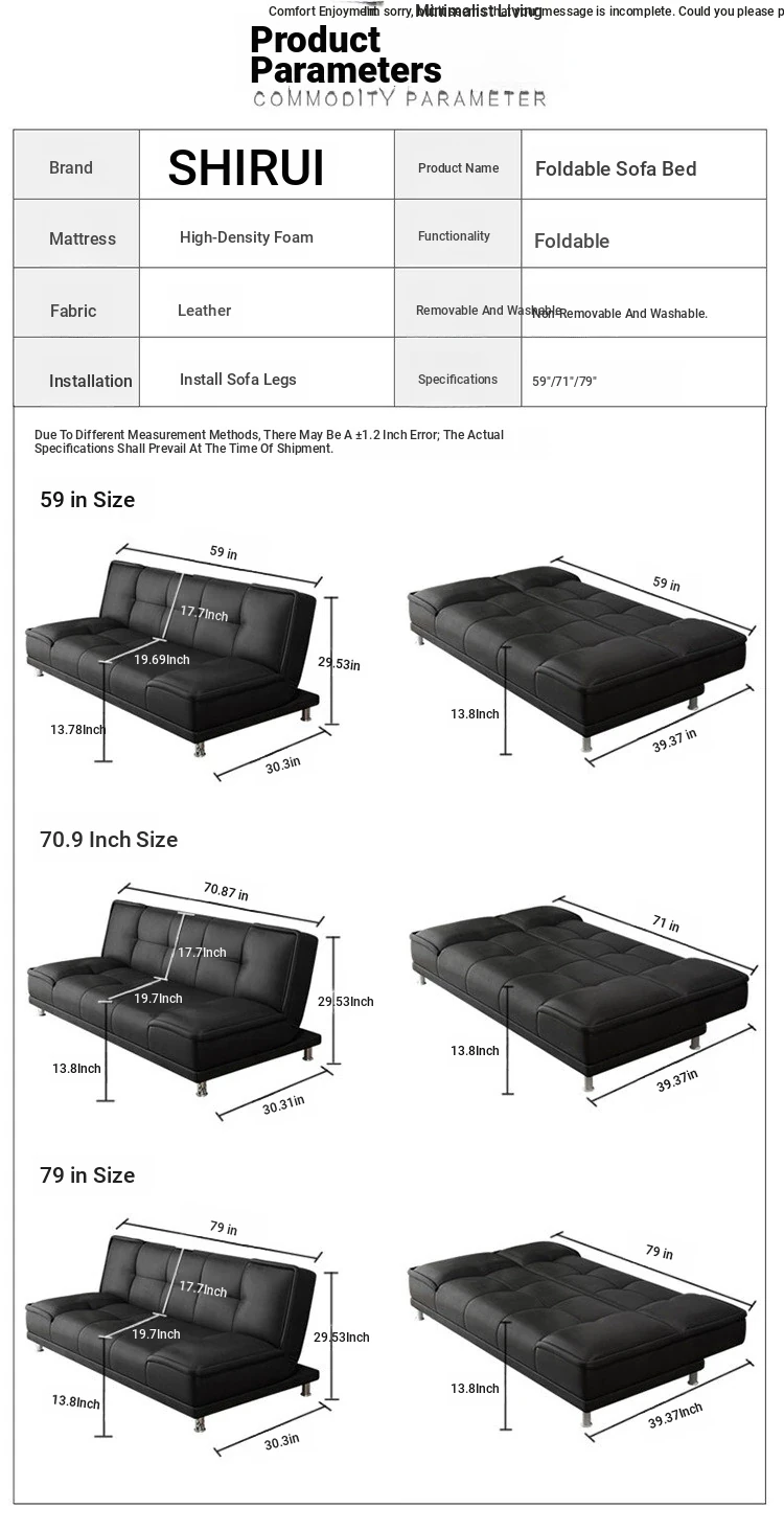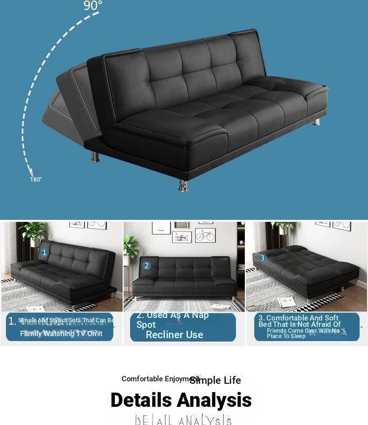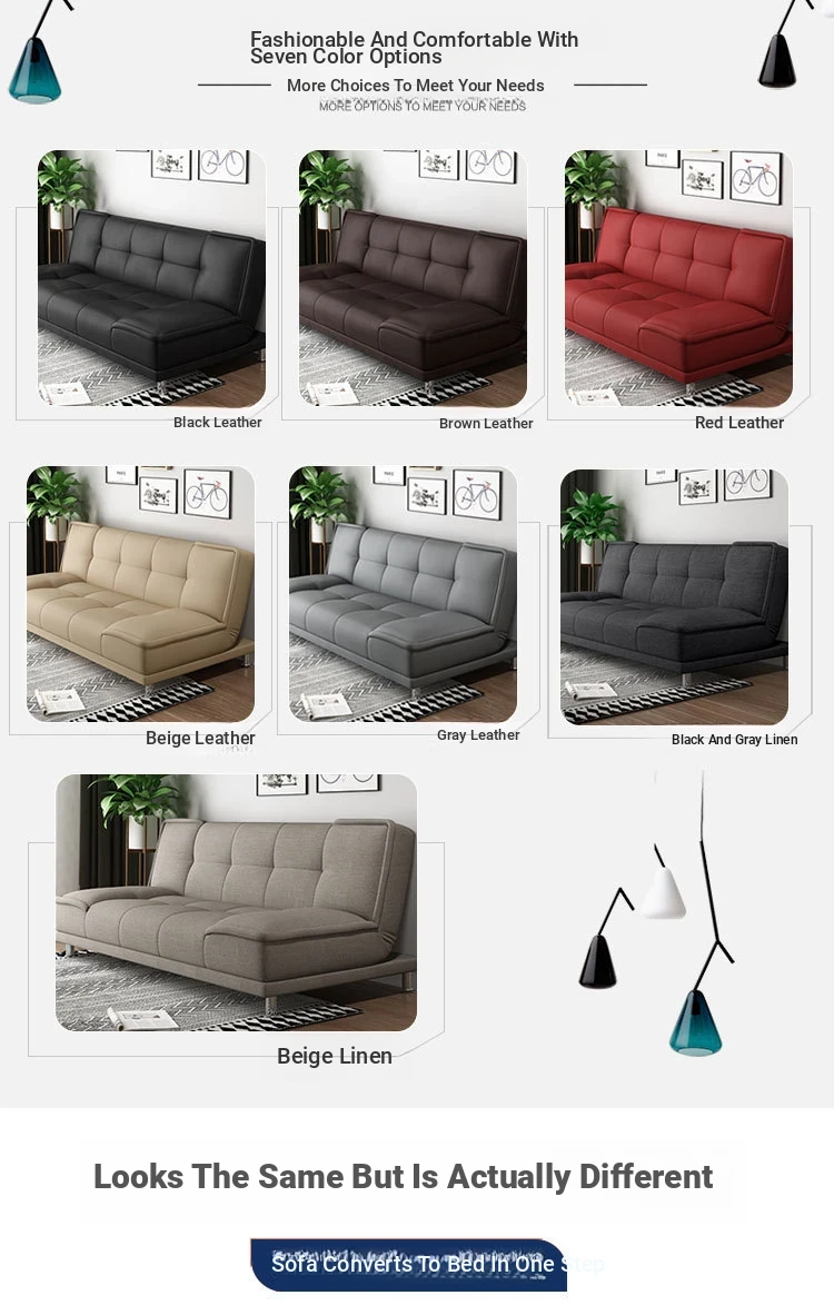 Multi-Functional Folding Sofa Bed for Small Spaces - Ideal for Living Rooms, Home Offices & Afternoon Naps - Stylish Leather Couch for Two to Three People