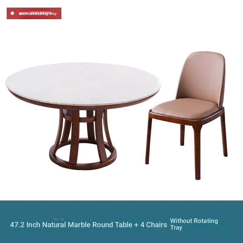 47.24 in natural marble round table +4 solid wood chair [with turntable]]