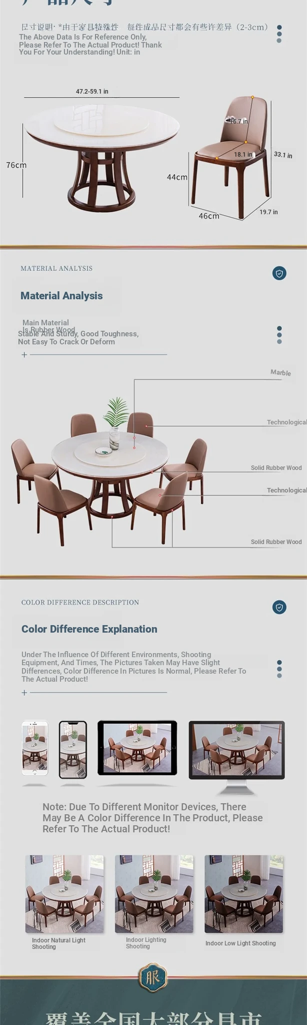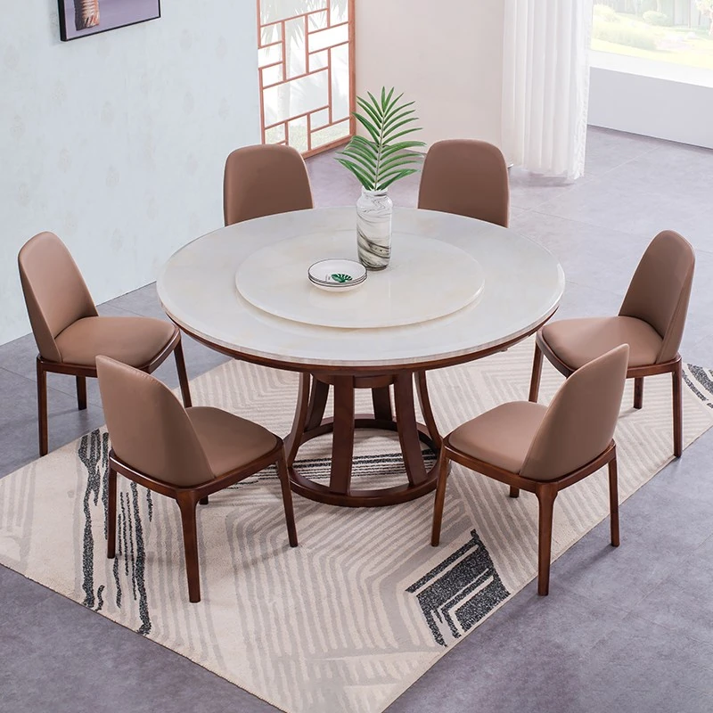 47.24 in natural marble round table +6 solid wood chair [with turntable]]