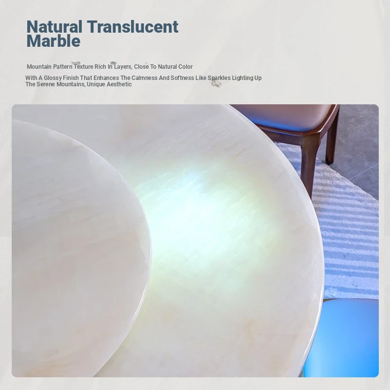 51.18 in natural marble round table +8 solid wood chair [without turntable]]