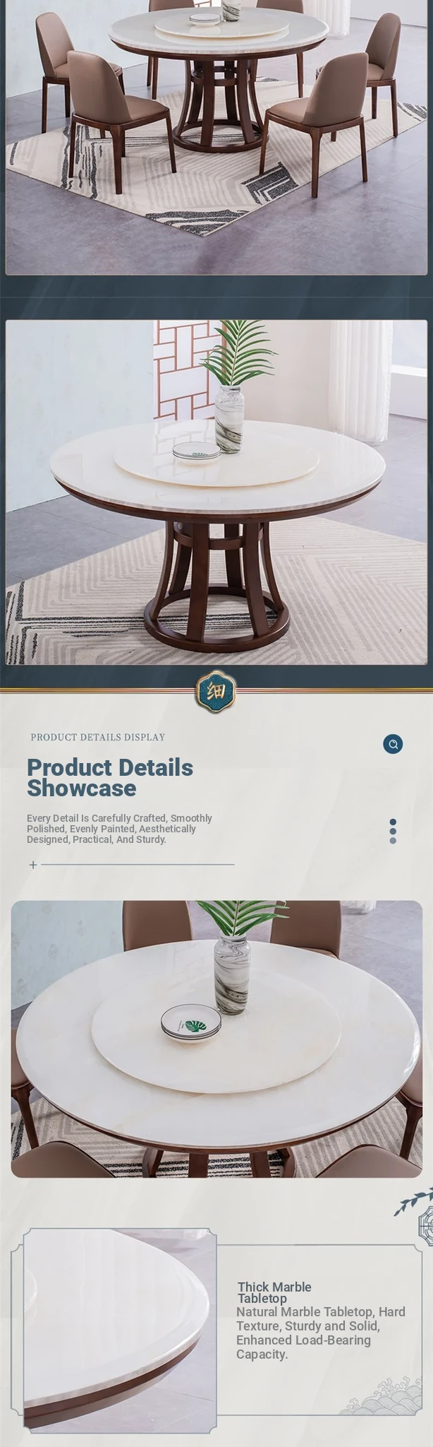 59.06 in natural marble round table +10 solid wood chair [with turntable]]