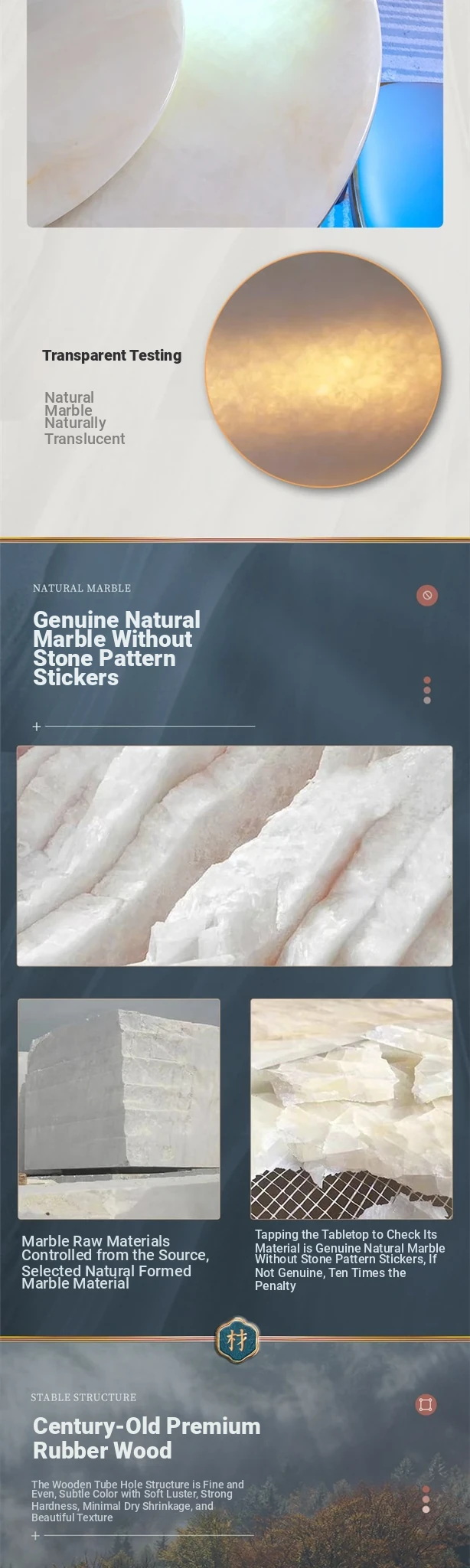 51.18 in natural marble round table +6 solid wood chair [without turntable]]