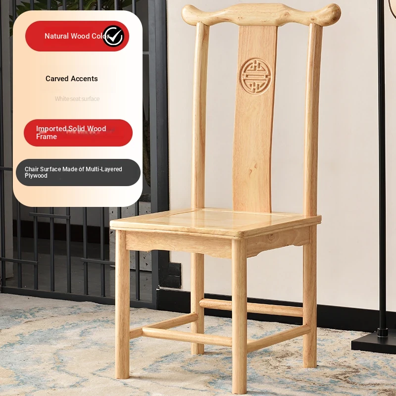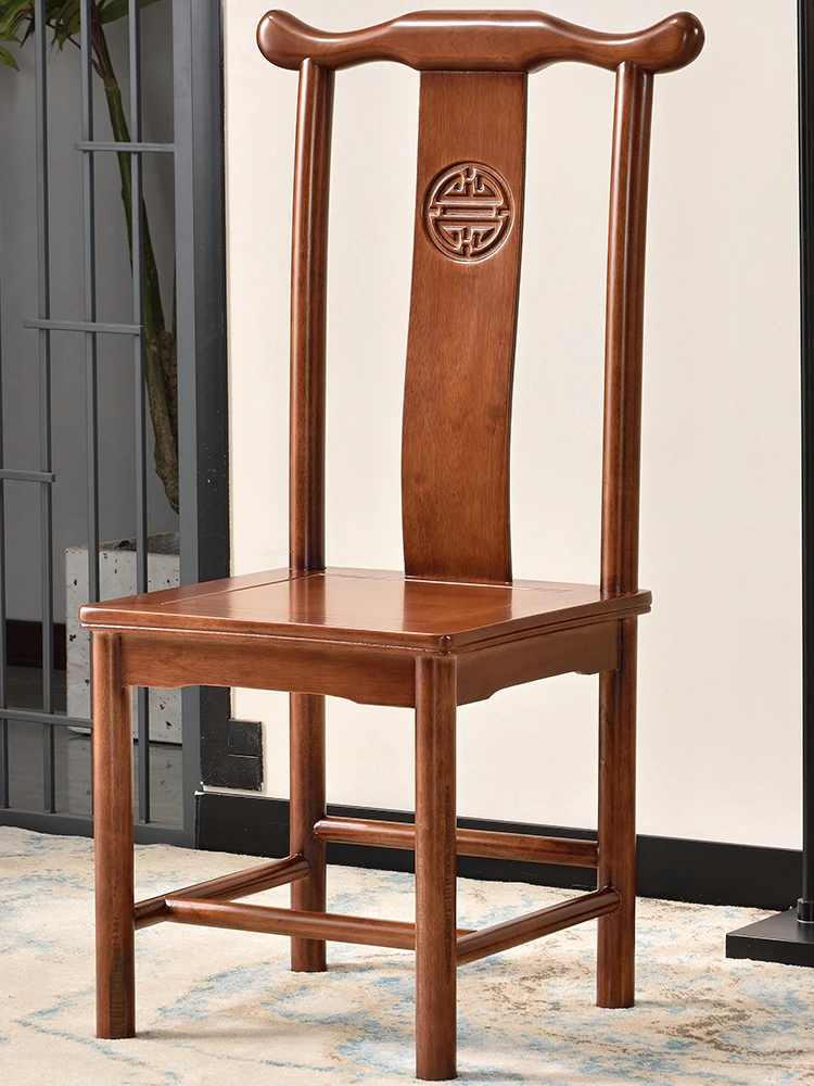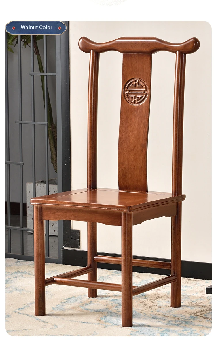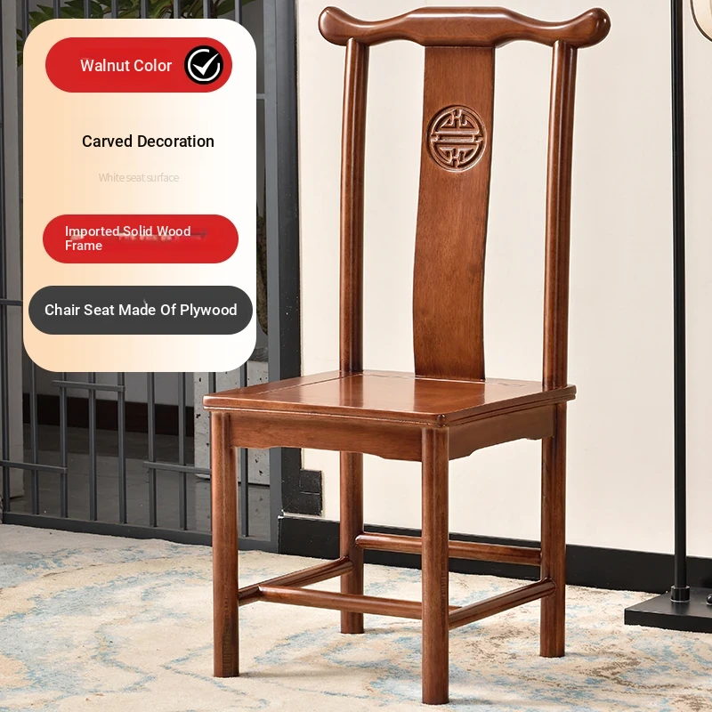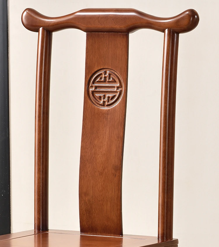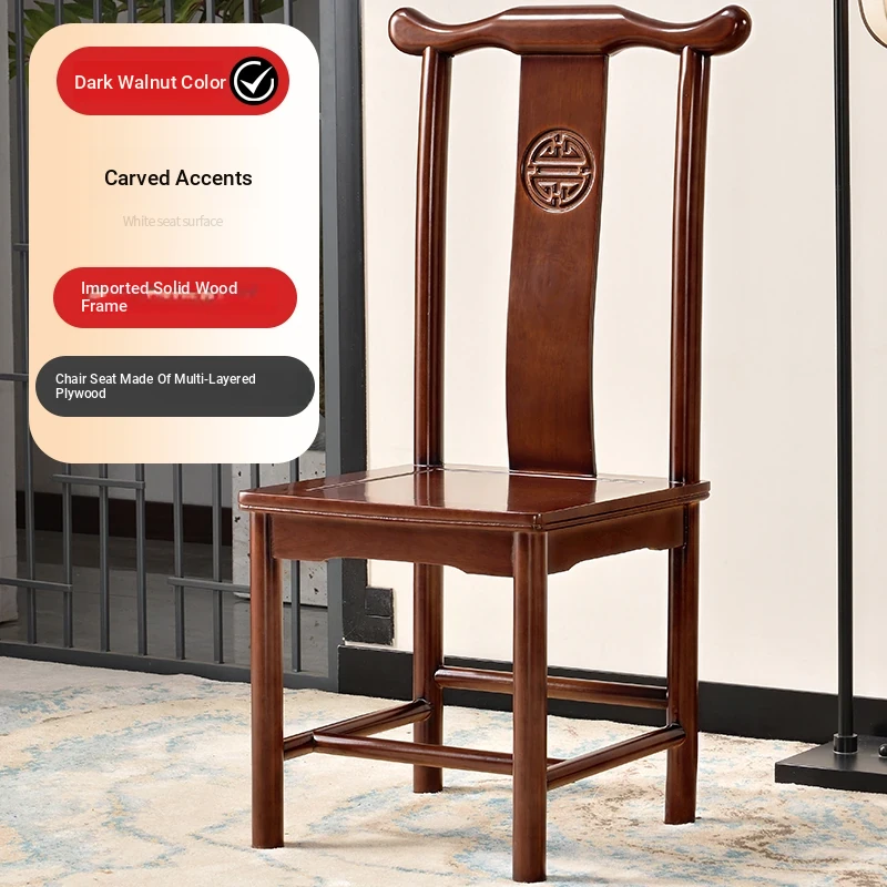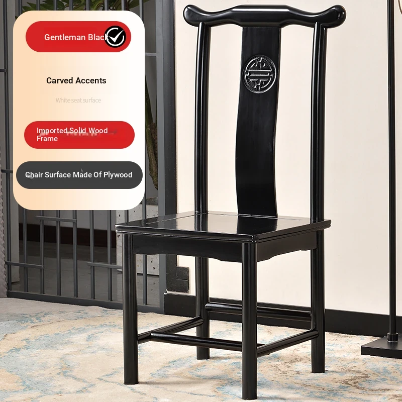 New Chinese Style Solid Wood Dining Chair with Horn Backrest - Elegant Restaurant and Hotel Seating, Perfect for Home Use and Leisure, Featuring a Stylish Official Hat Design