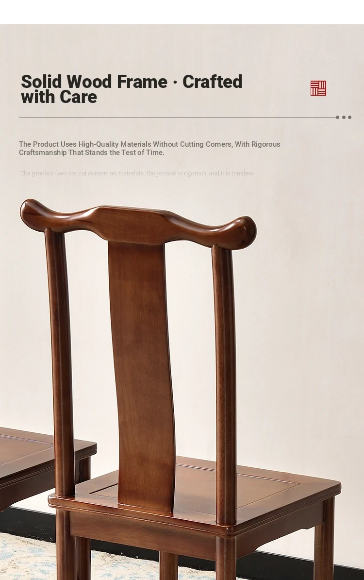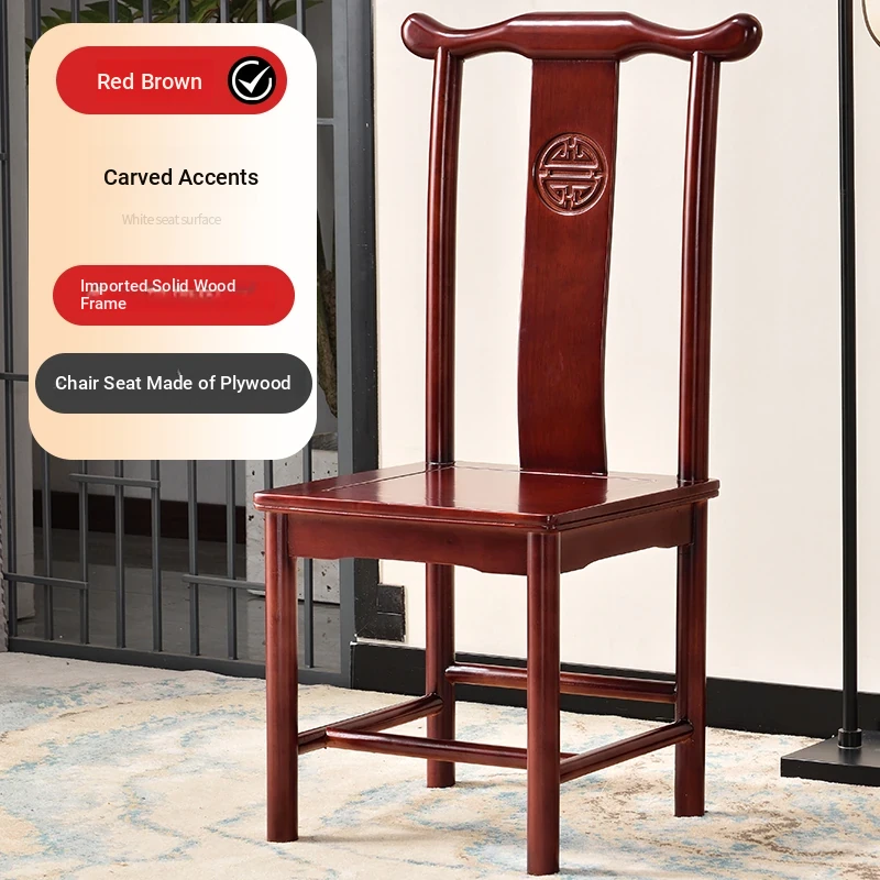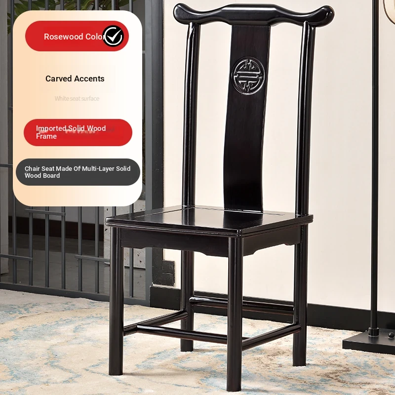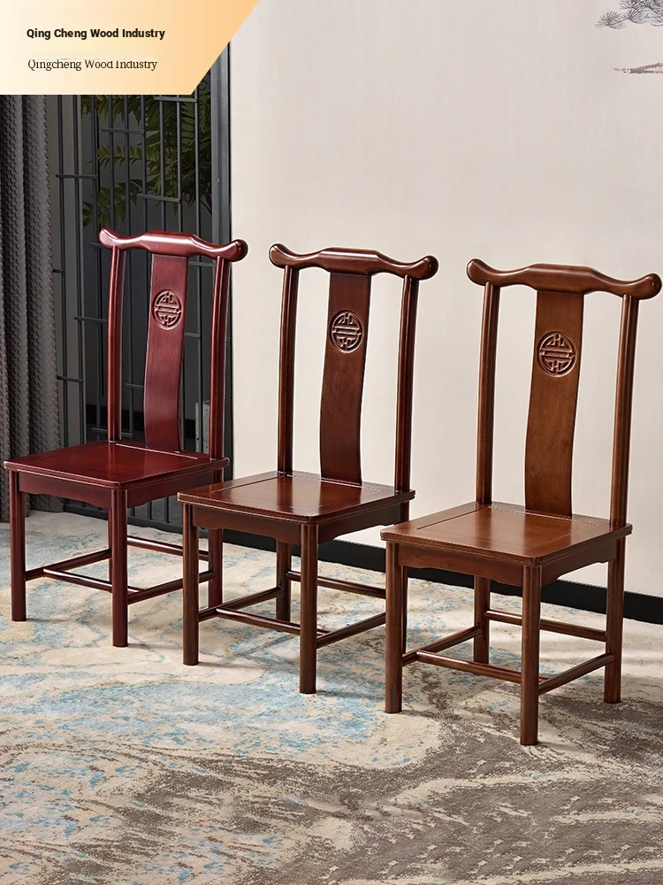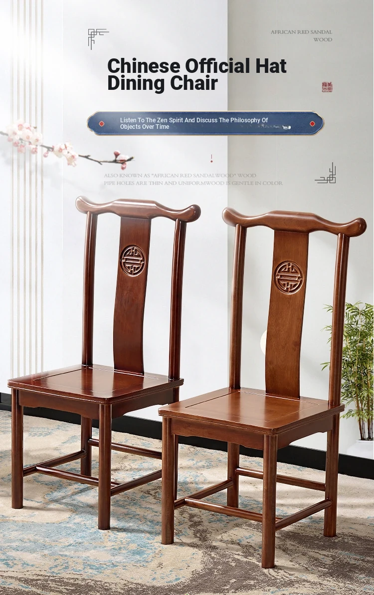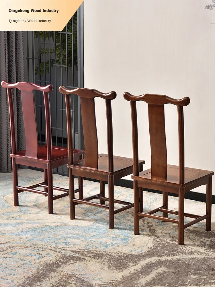 New Chinese Style Solid Wood Dining Chair with Horn Backrest - Elegant Restaurant and Hotel Seating, Perfect for Home Use and Leisure, Featuring a Stylish Official Hat Design
