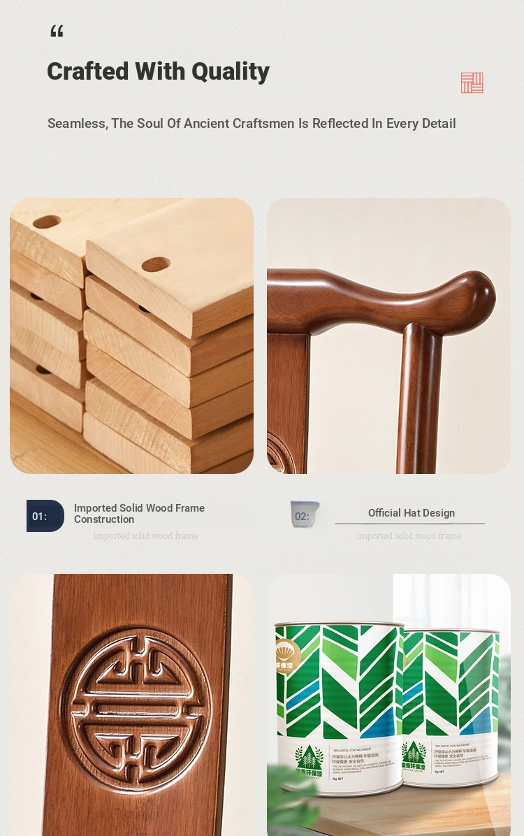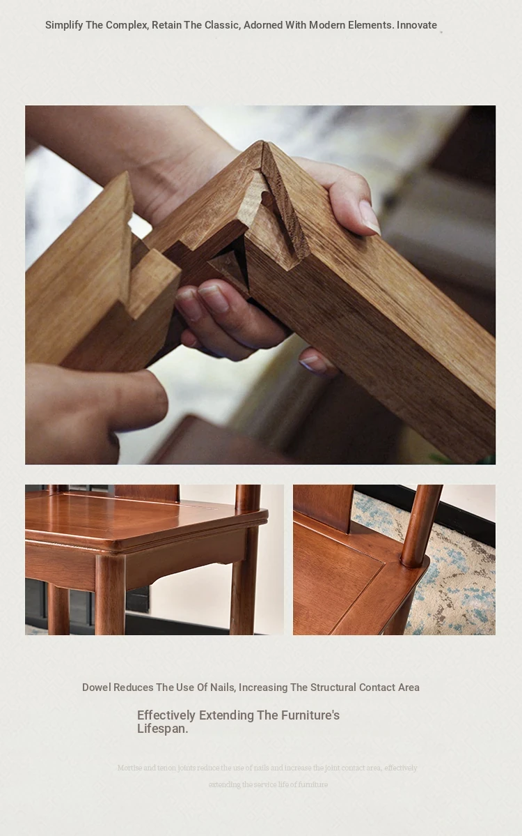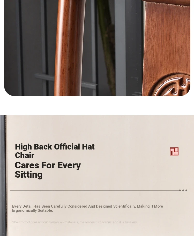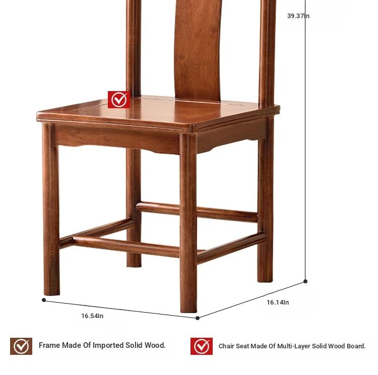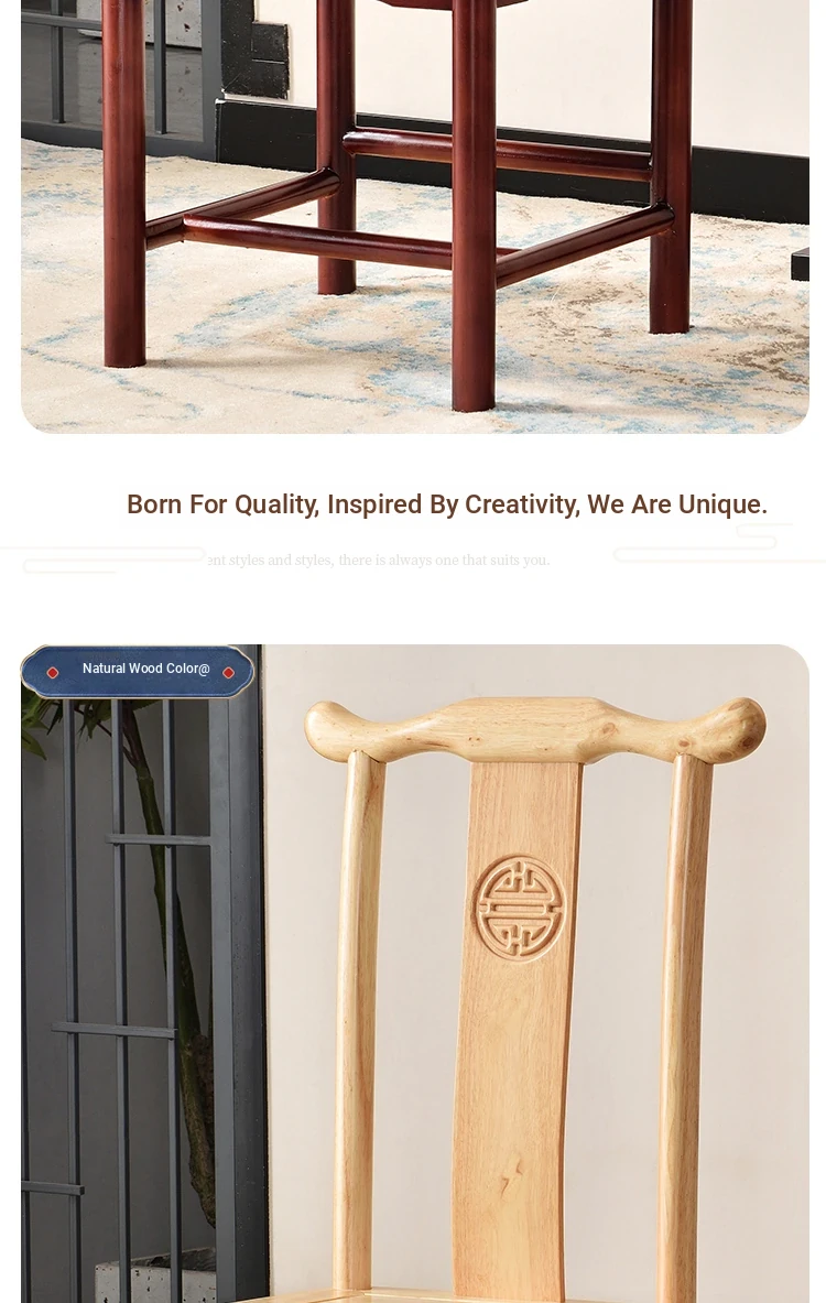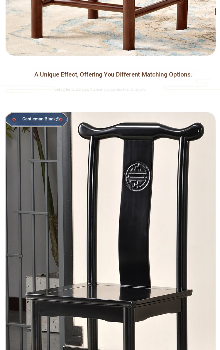 New Chinese Style Solid Wood Dining Chair with Horn Backrest - Elegant Restaurant and Hotel Seating, Perfect for Home Use and Leisure, Featuring a Stylish Official Hat Design
