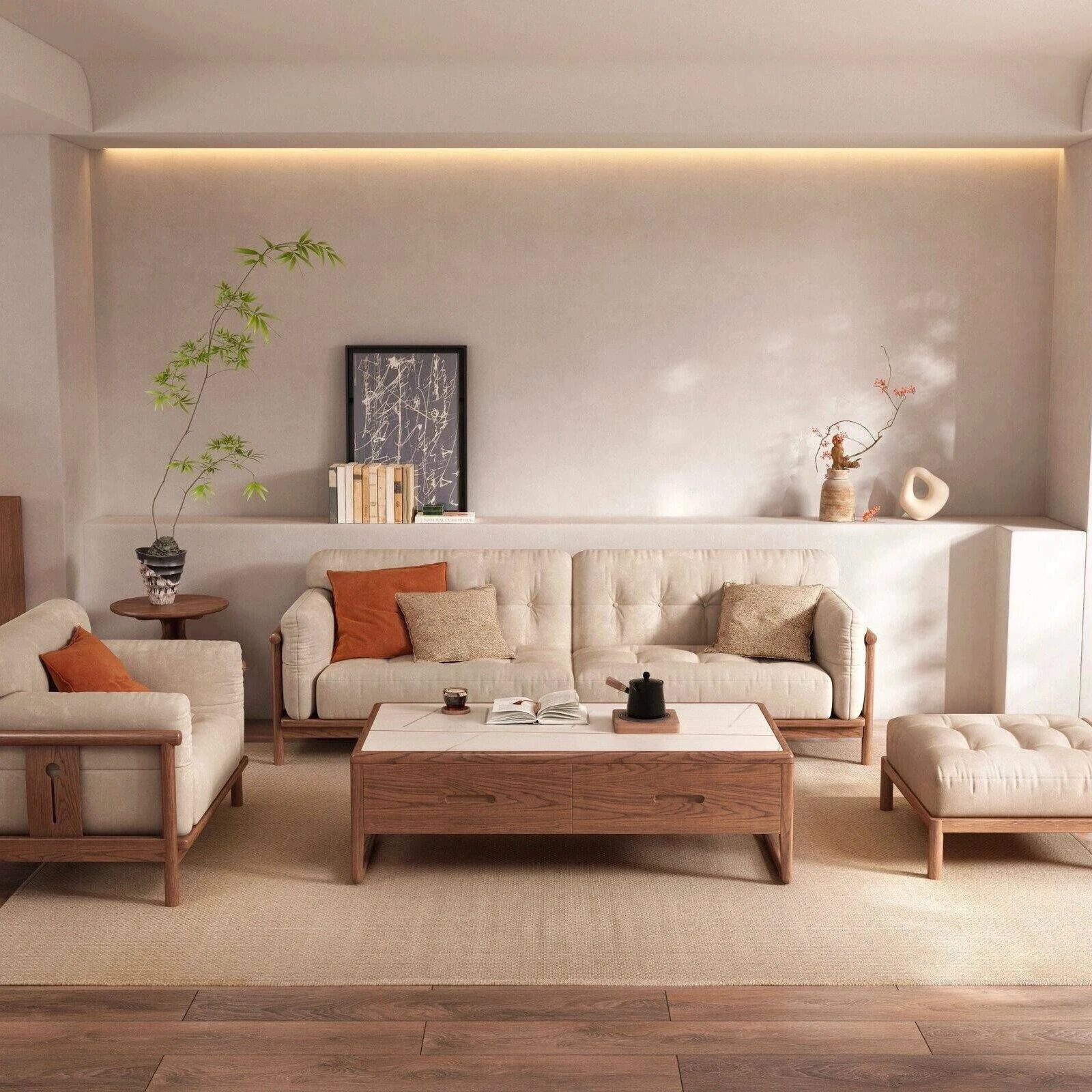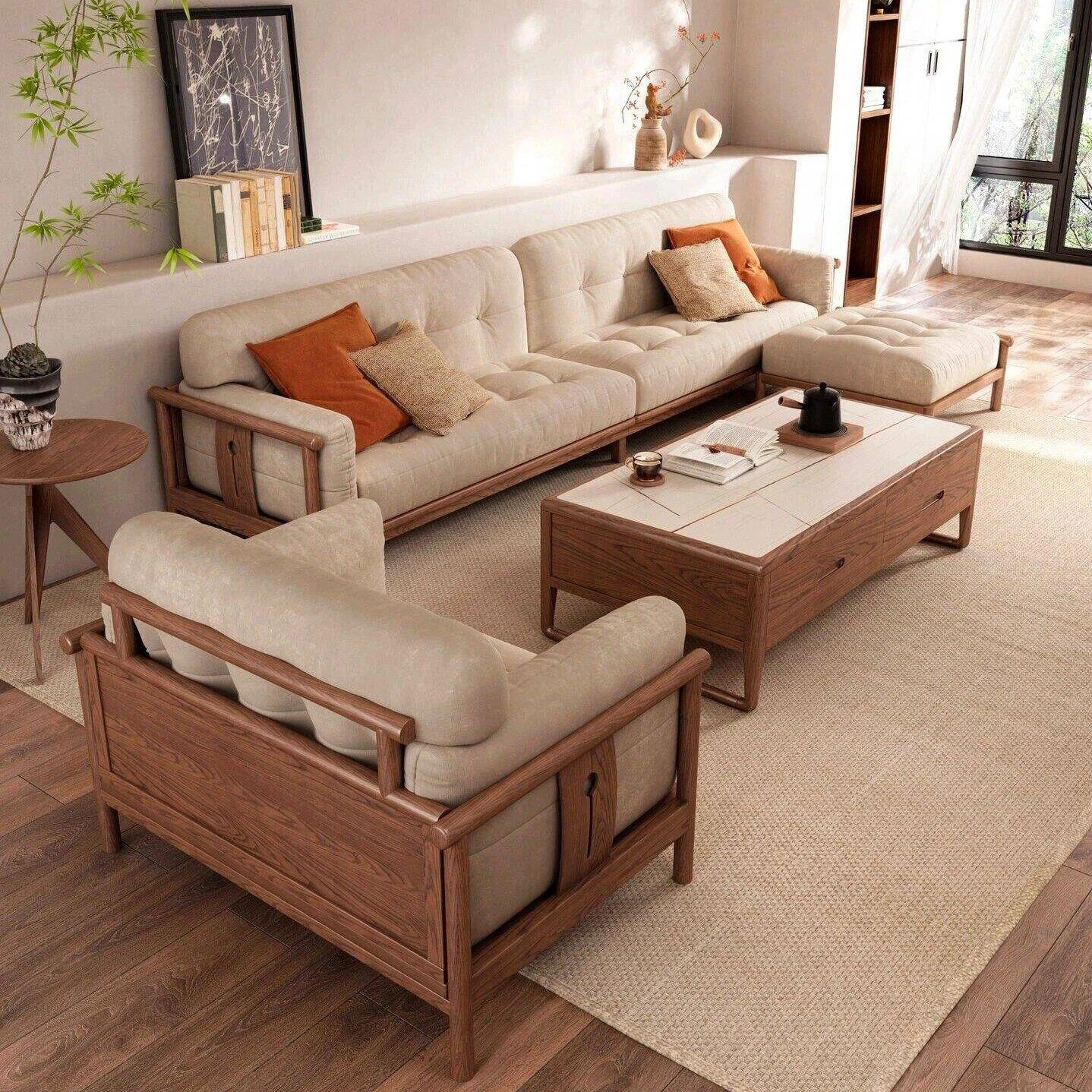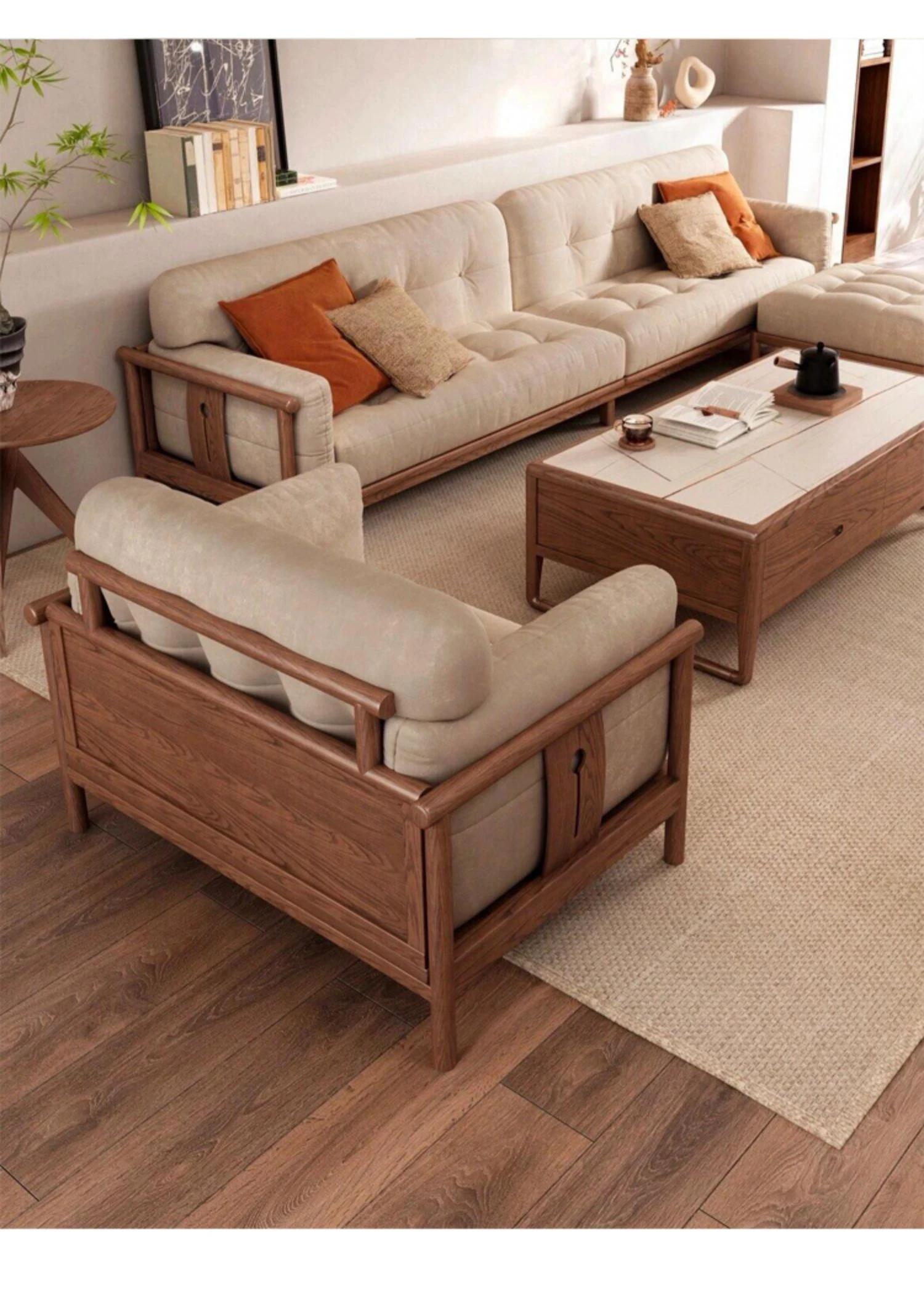 New Chinese Style Solid Wood Sofa Set - Minimalist Design for Office and Living Room, Perfect for Business Reception, Suitable for Small to Large Spaces