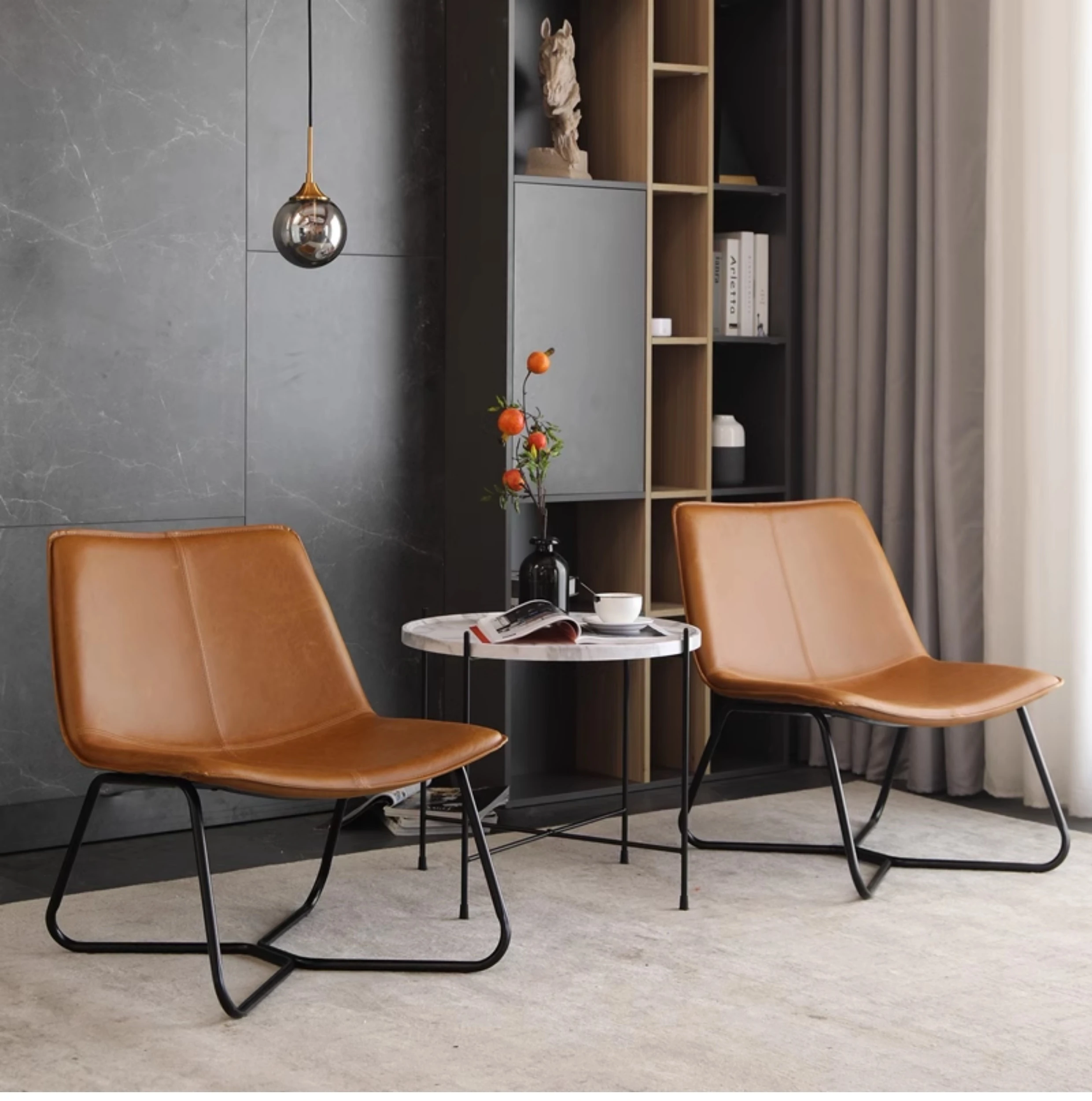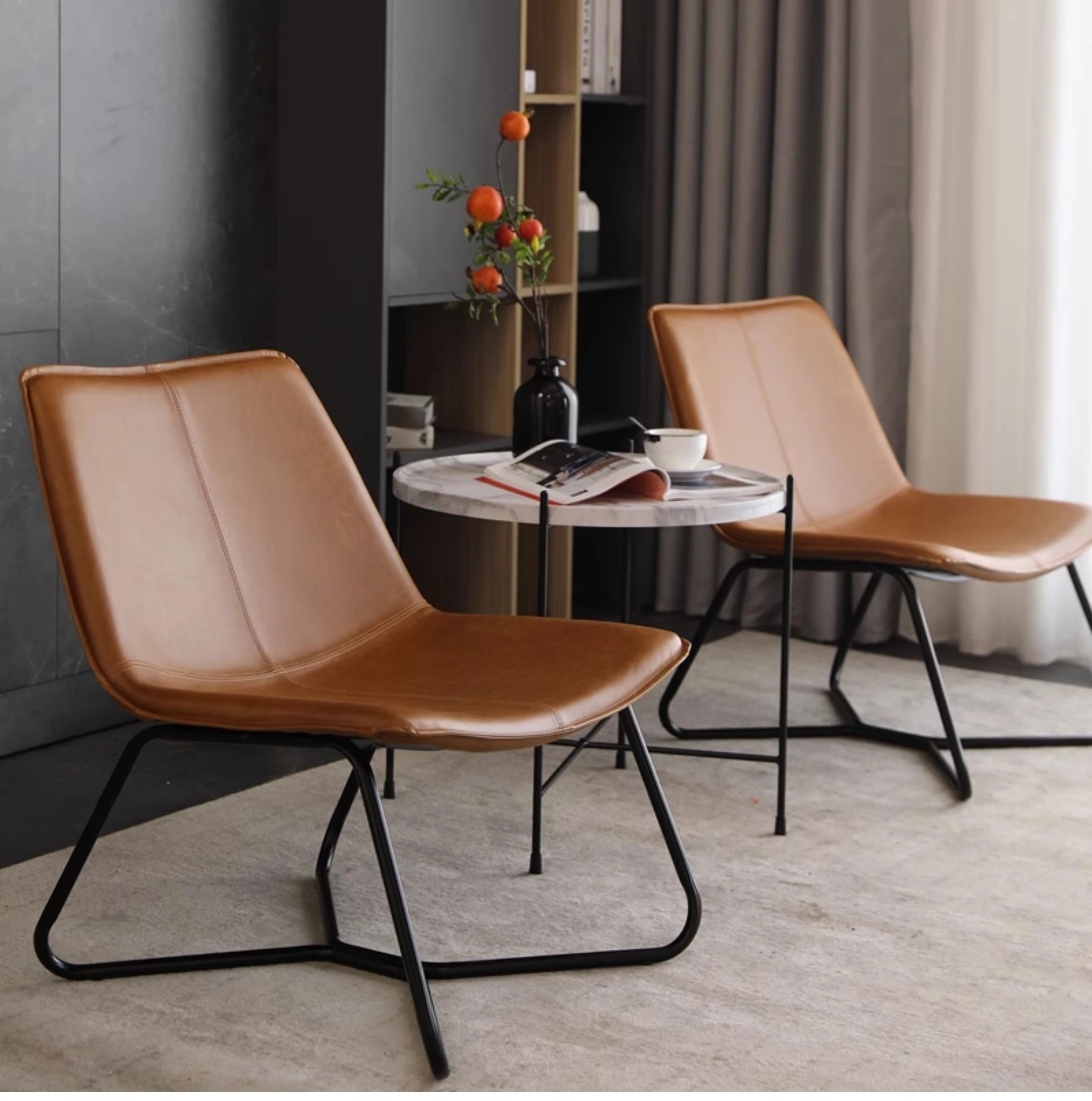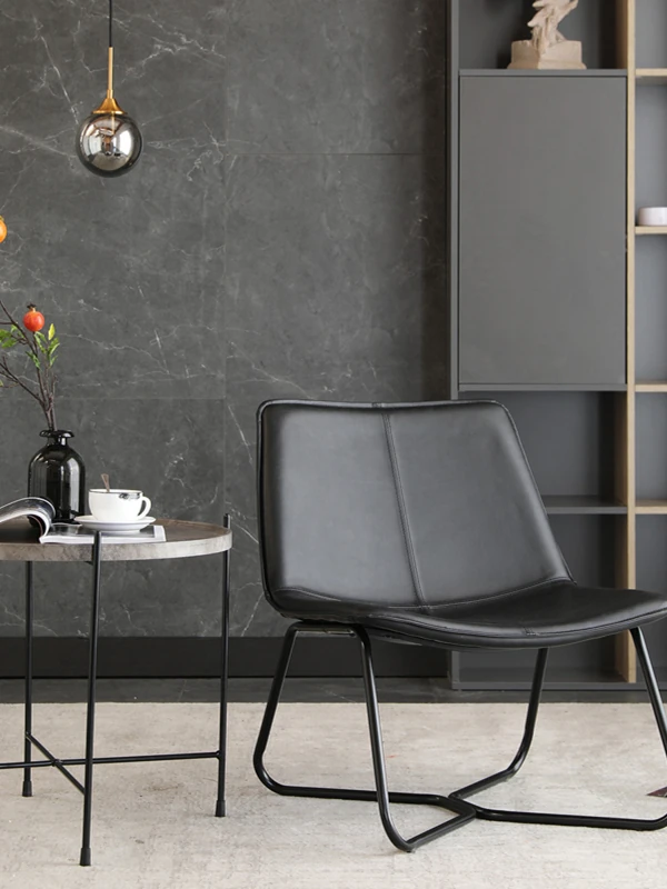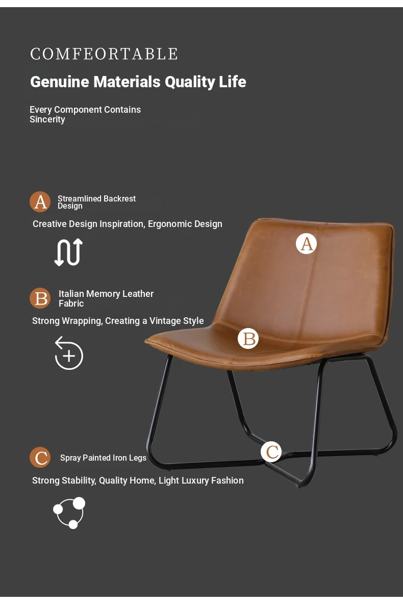 Nordic Design Orange Iron Minimalist Single Sofa - Affordable Leather Armchair for Home and Balcony Relaxation