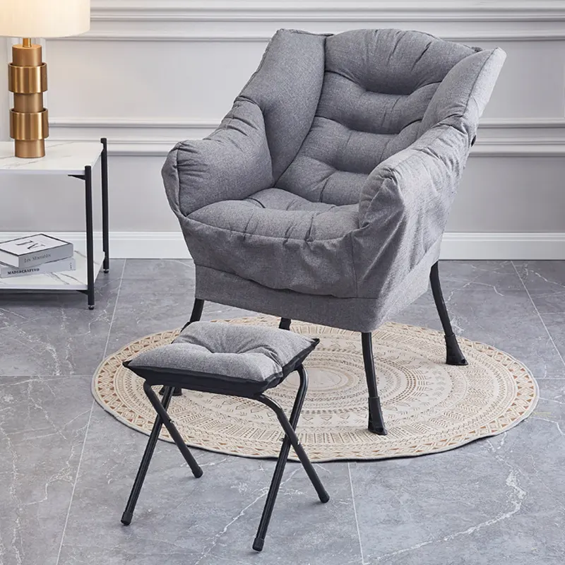 Deerskin velvet Gray Chair + footstool