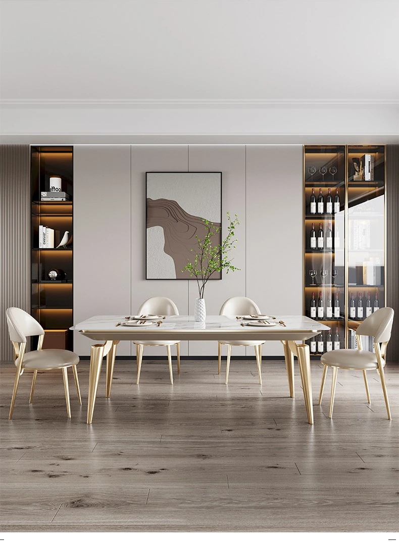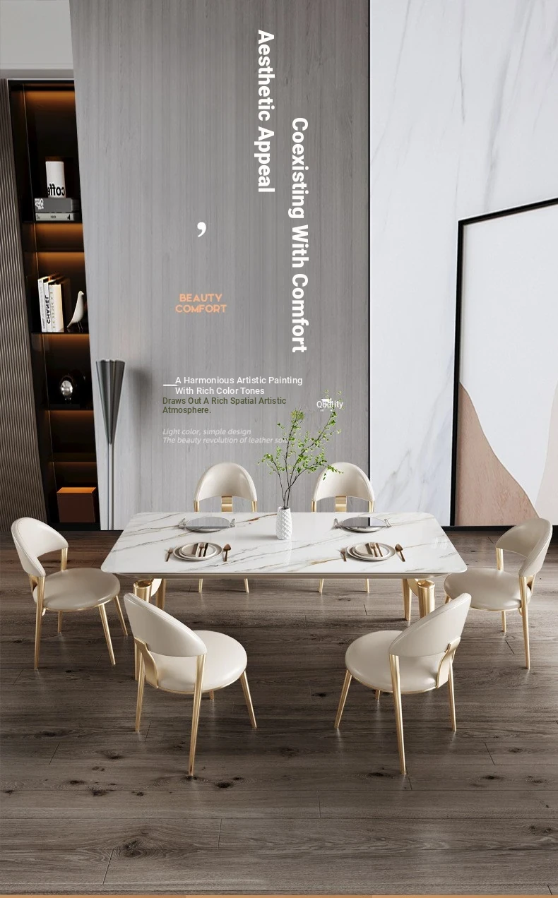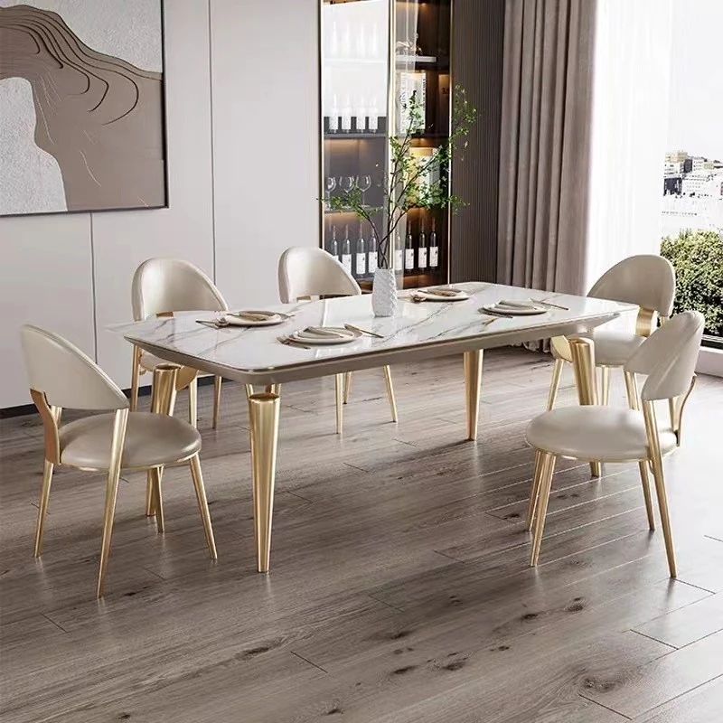 Nordic Minimalist Luxury Rectangular Marble Dining Table and Chair Set - Perfect for Small Spaces, Modern Living Room Elegance