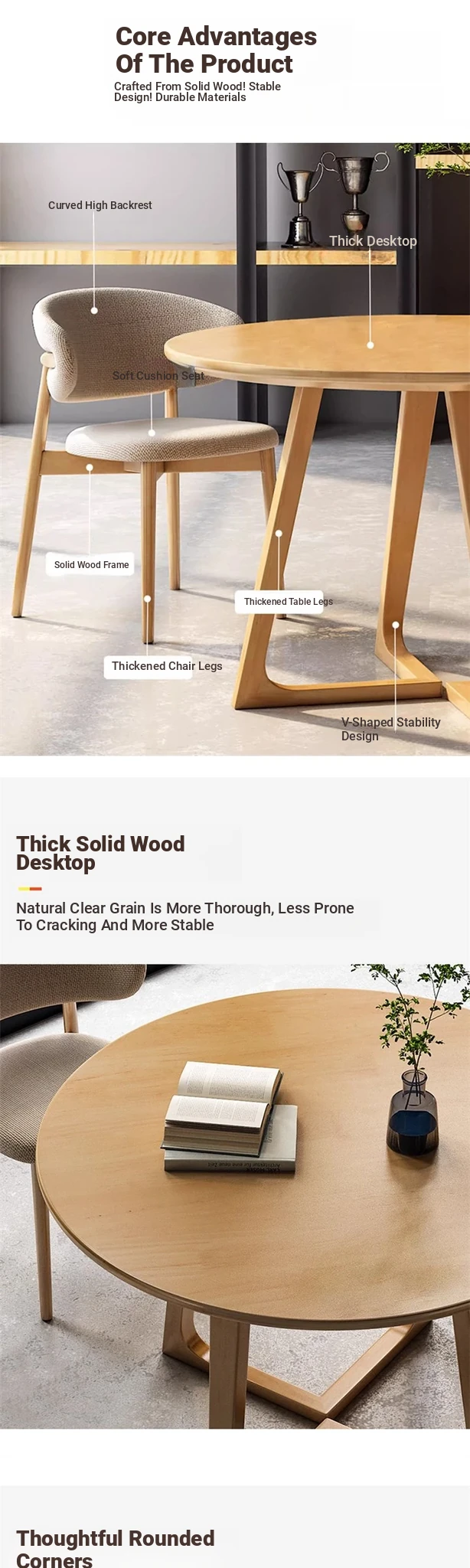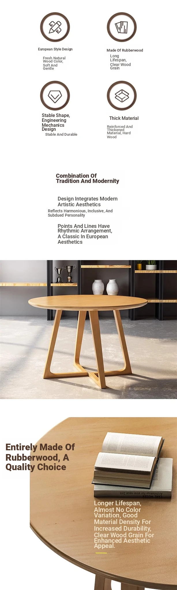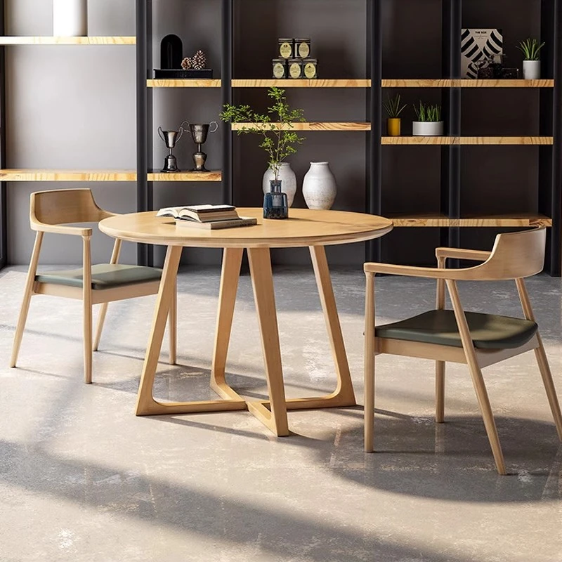 Round Solid Wood Coffee Table – Oak Dining Table for Small Spaces, Perfect for Homes and Cafés, Ideal for Casual Meetings and Relaxing Moments