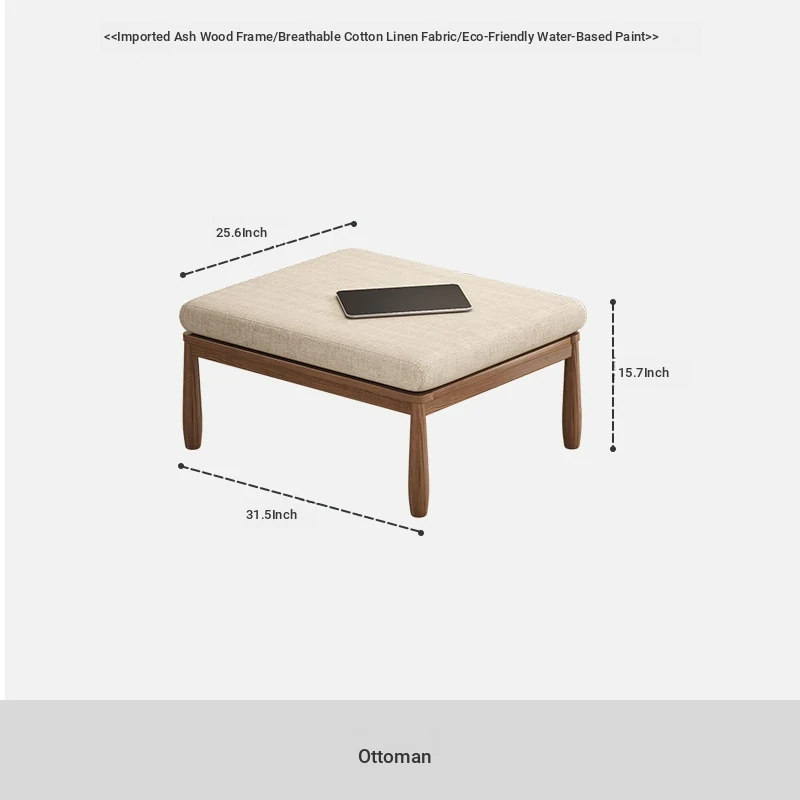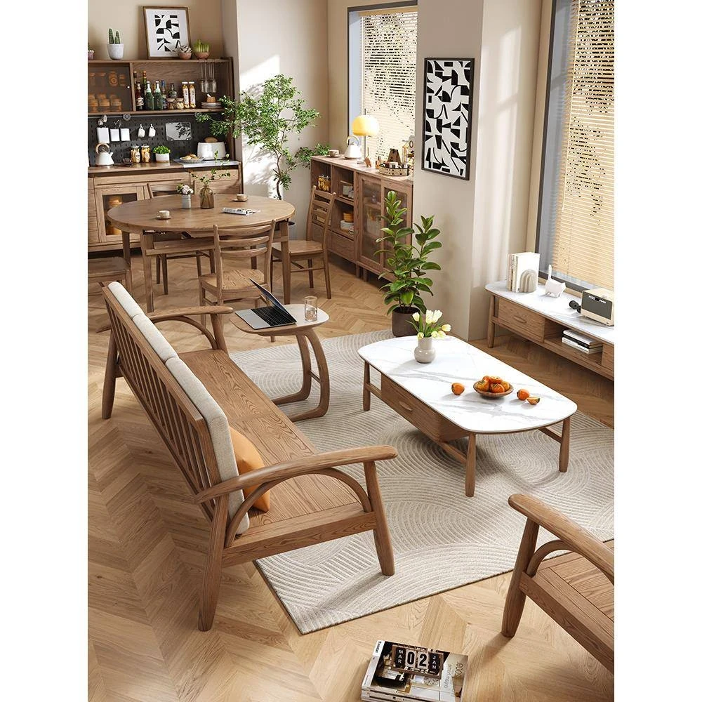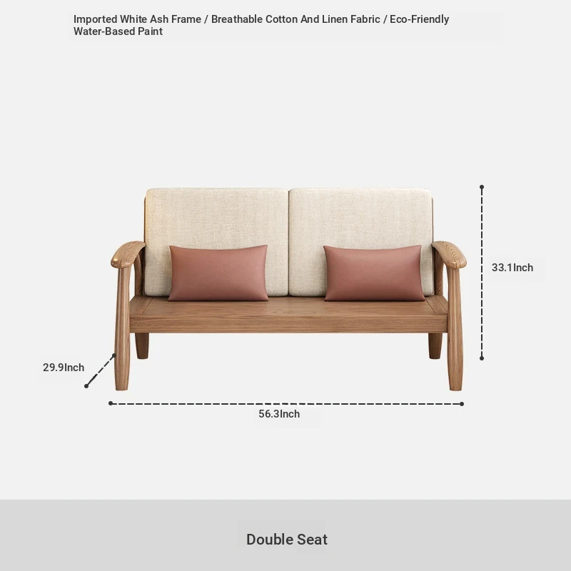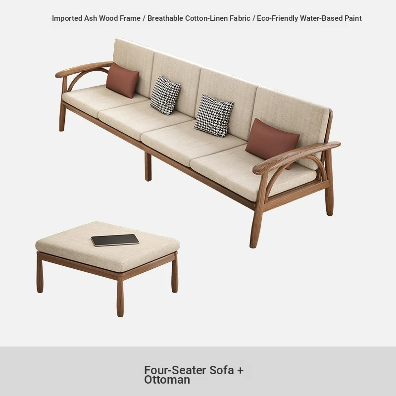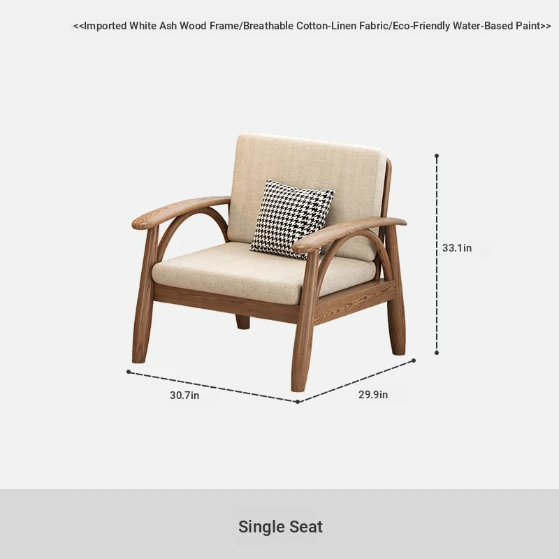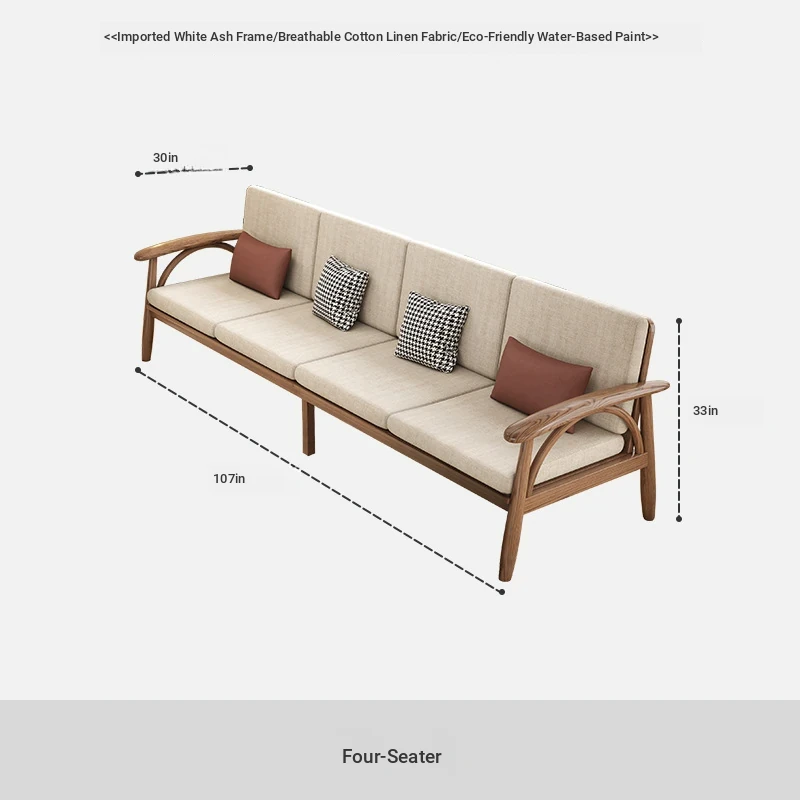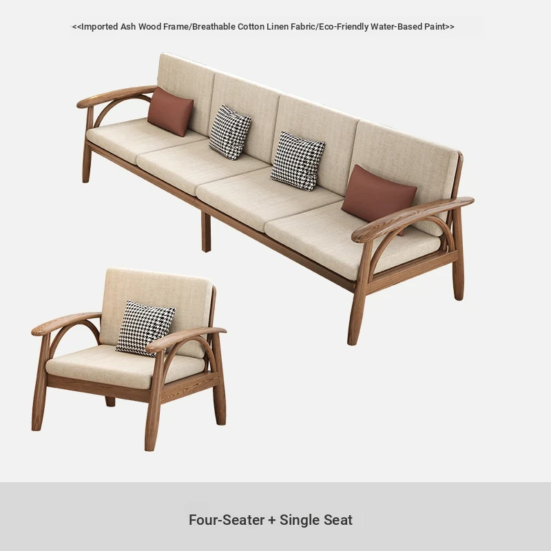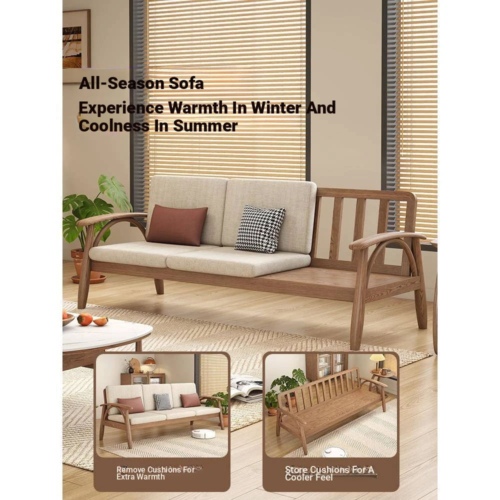 Solid Wood Sofa - Modern Nordic Style Three-Seat Couch for Small Living Rooms, Made of Ash Wood, Simple and Elegant Furniture Set