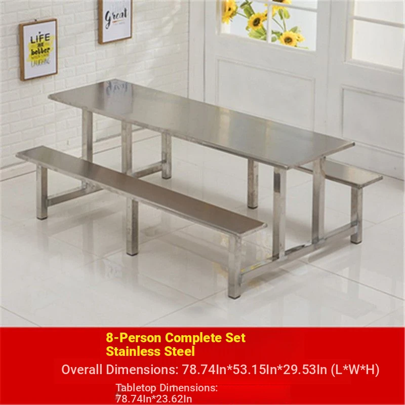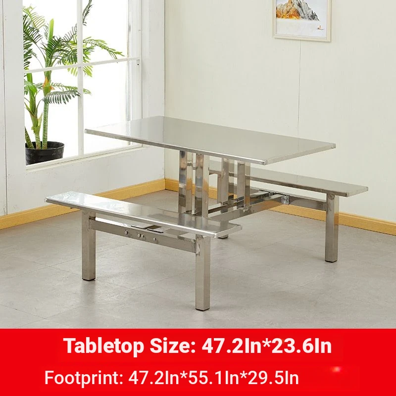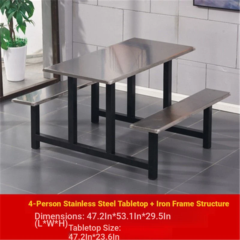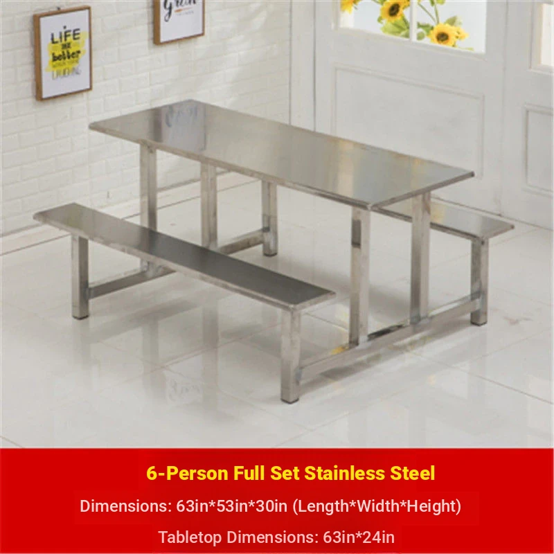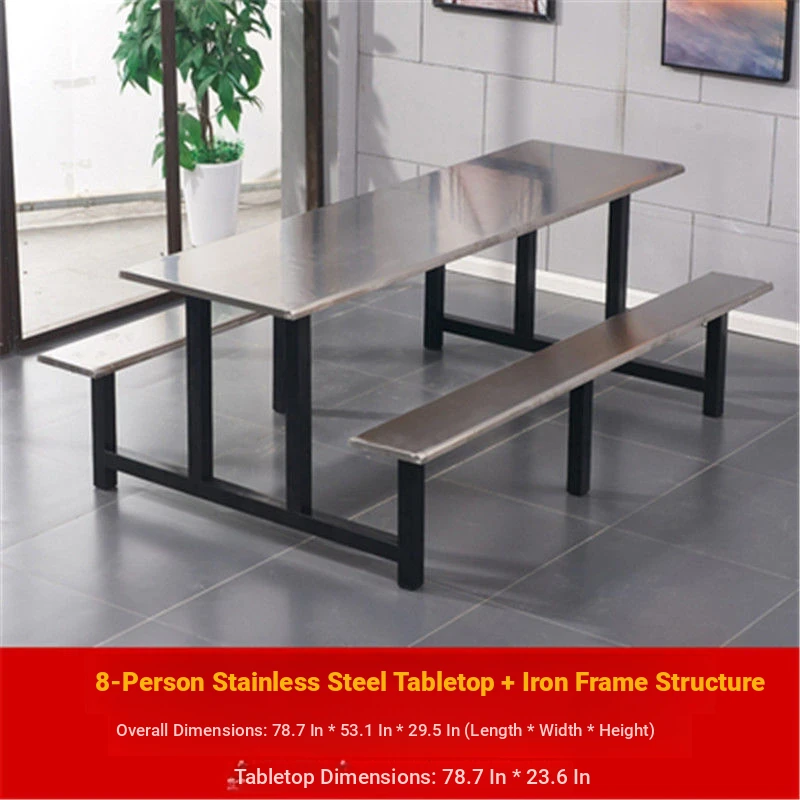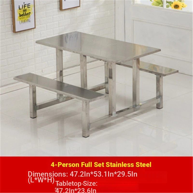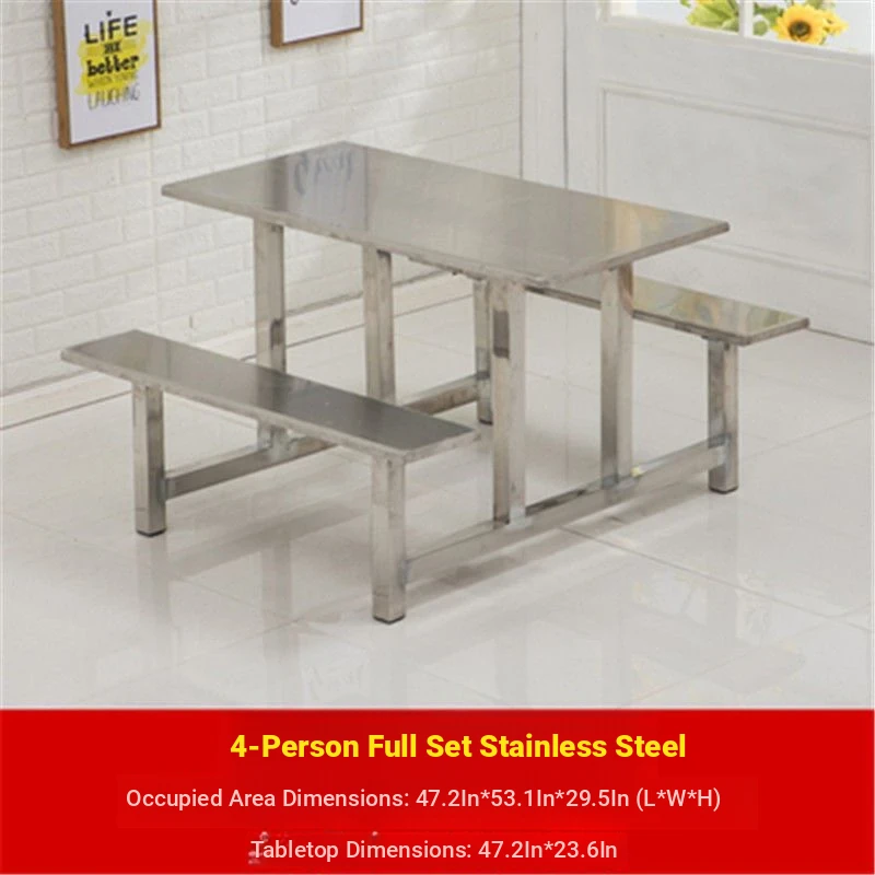 Stainless Steel Dining Table Set for Schools and Cafeterias - Space-Saving 4, 6, or 8-Person Combo for Students and Staff - Durable and Economical Fast Food Solution