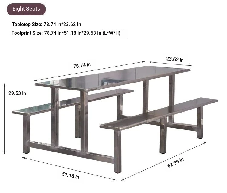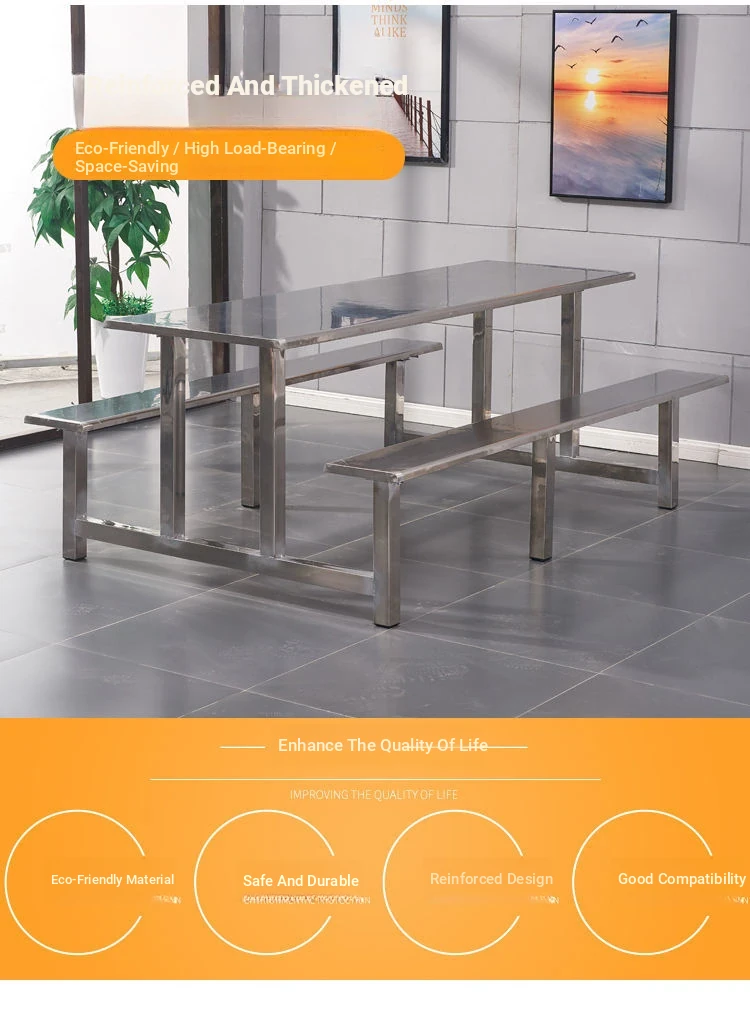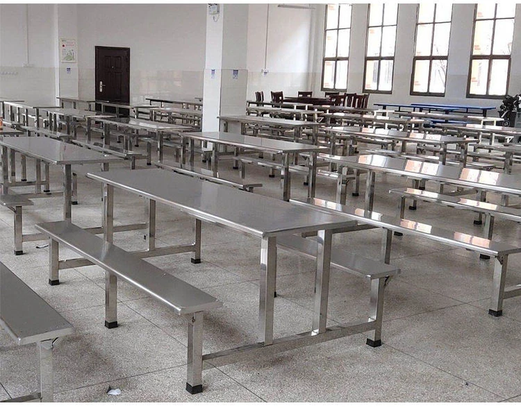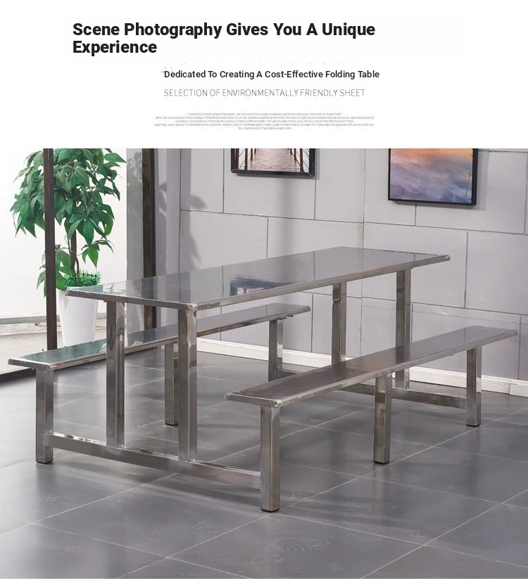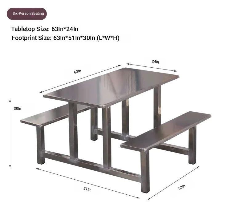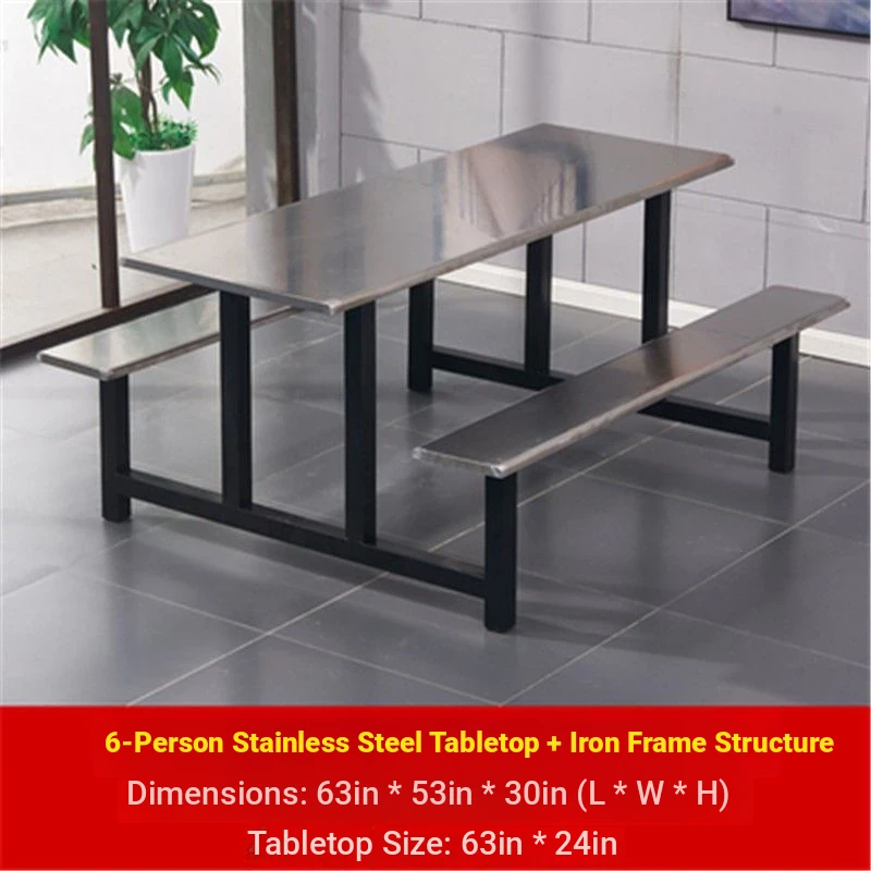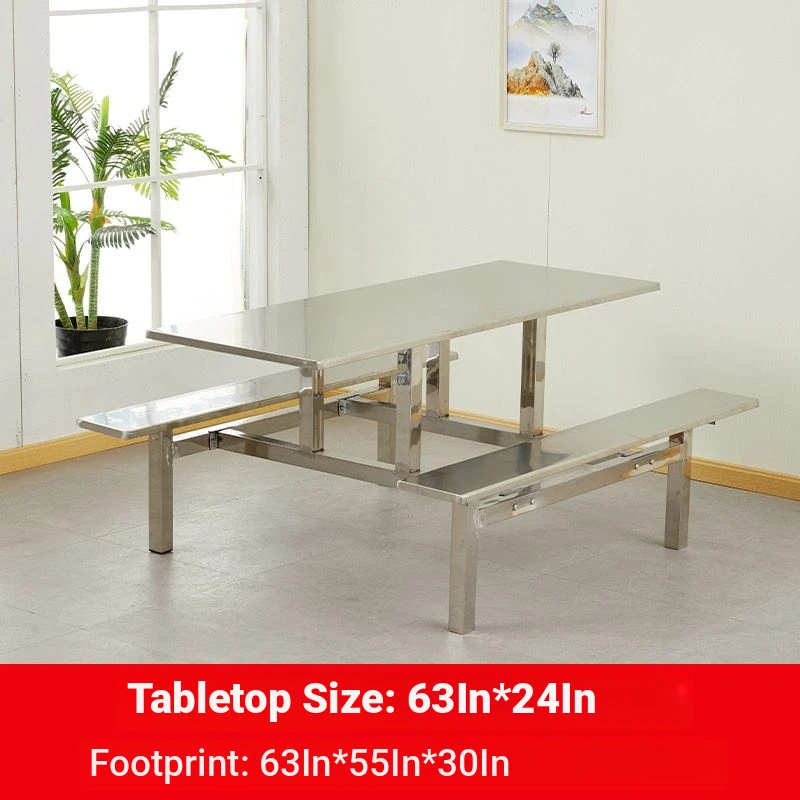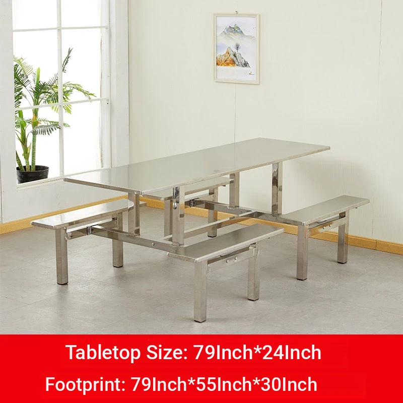 Stainless Steel Dining Table Set for Schools and Cafeterias - Space-Saving 4, 6, or 8-Person Combo for Students and Staff - Durable and Economical Fast Food Solution