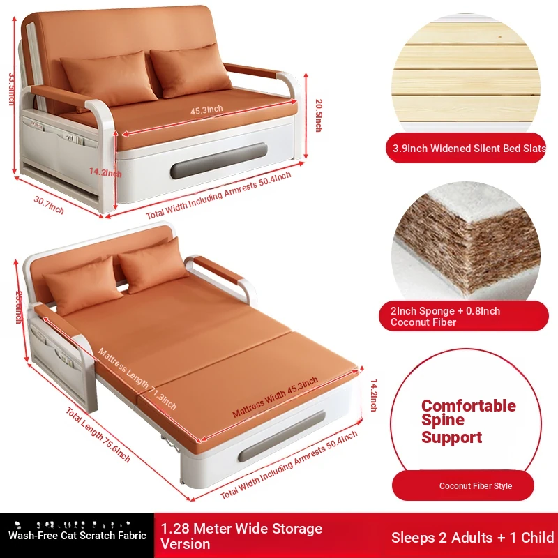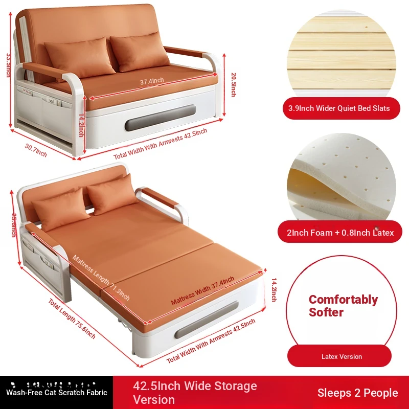 [50.39 in Storage] 1.97in Sponge +0.79in Latex (Technology Upgrade Cat Scratch Leather)
