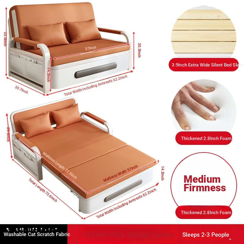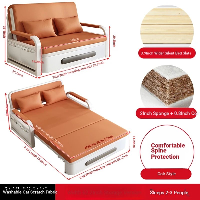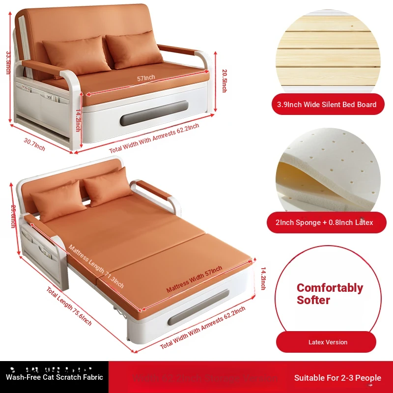 [62.20 in Storage] 1.97in Sponge +0.79in Latex (Technology Upgrade Cat Scratch Leather)