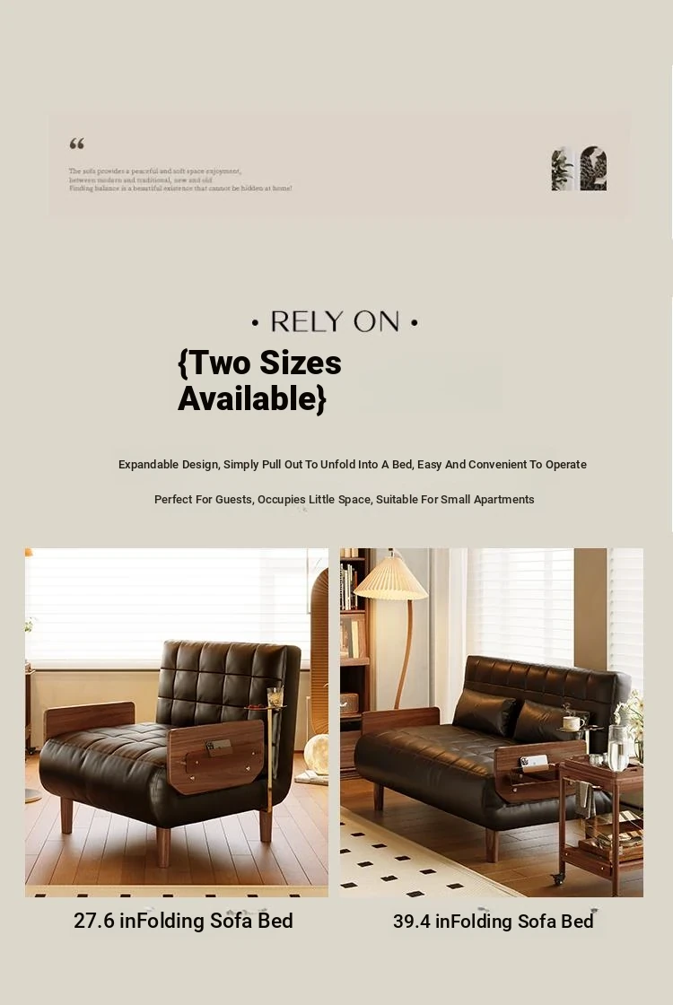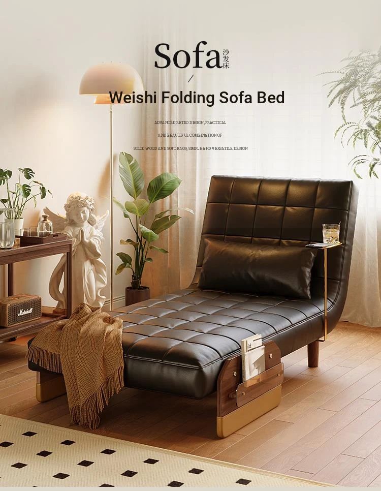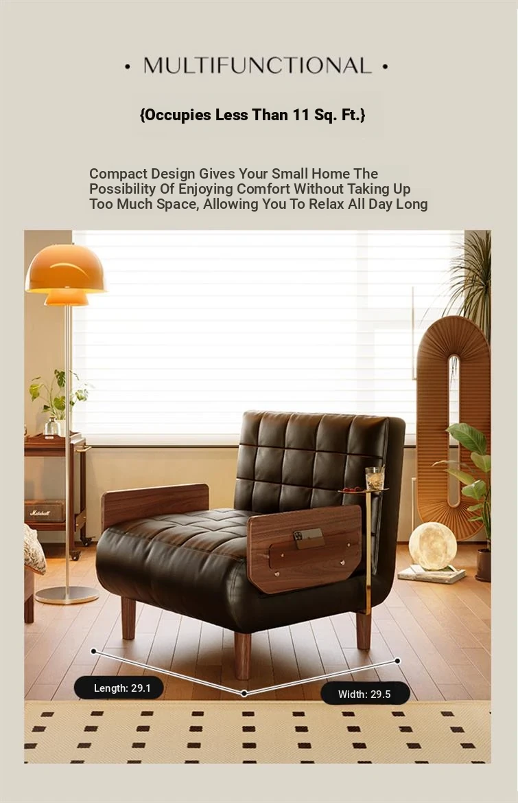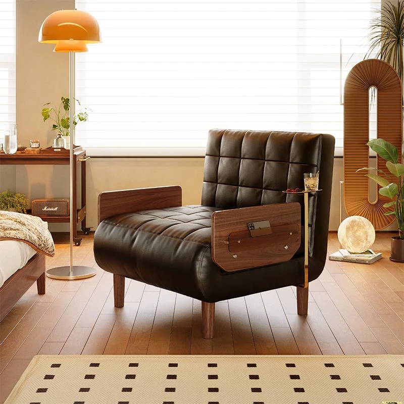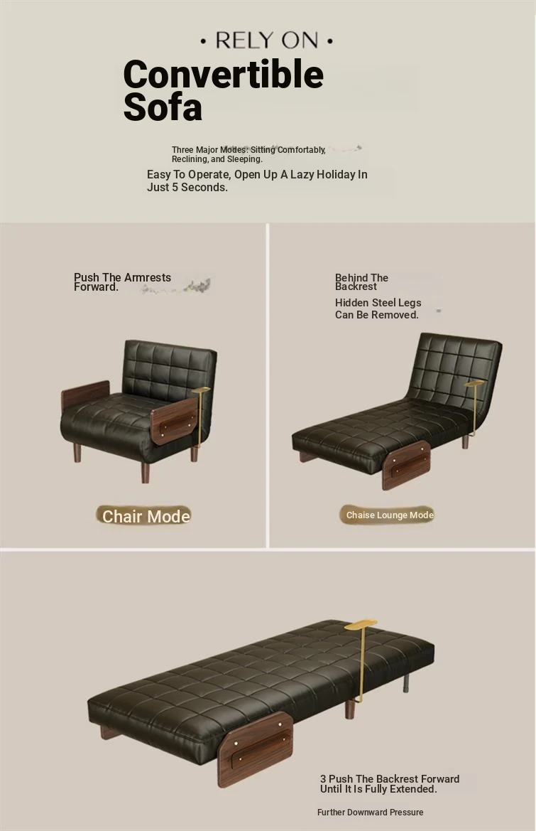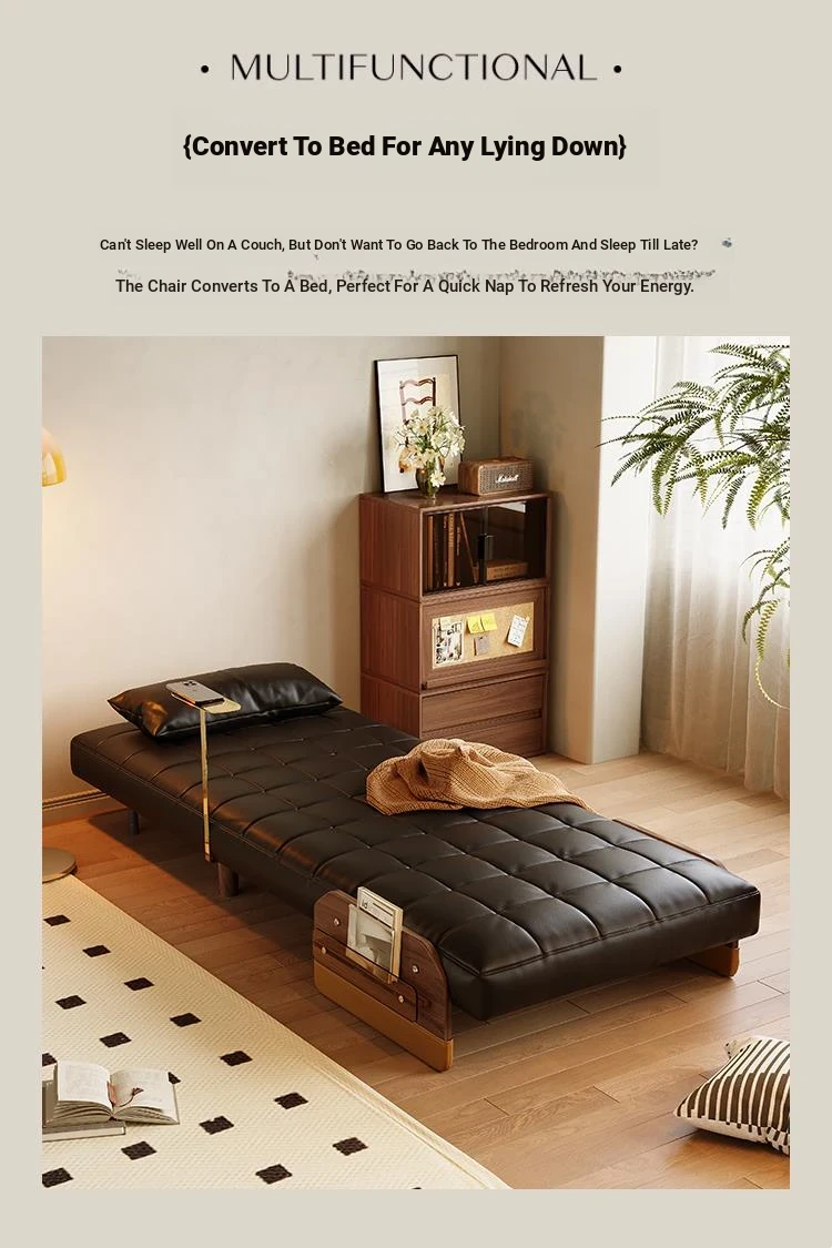 Versatile Foldable Sofa Bed for Small Living Spaces - Stylish Leather Armchair for Home Office or Lounge, Space-Saving Design with Solid Wood Frame, Perfect for Cozy Comfort and Practicality.