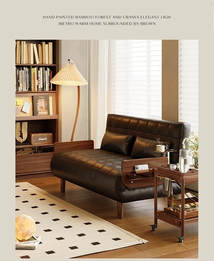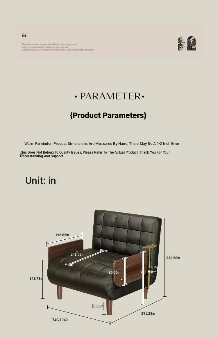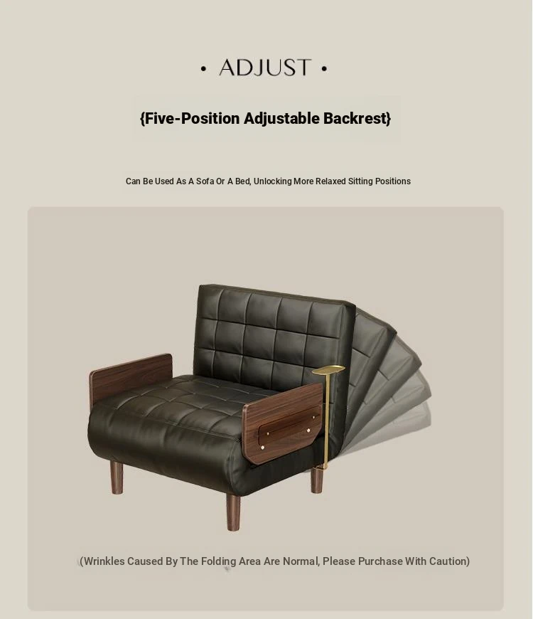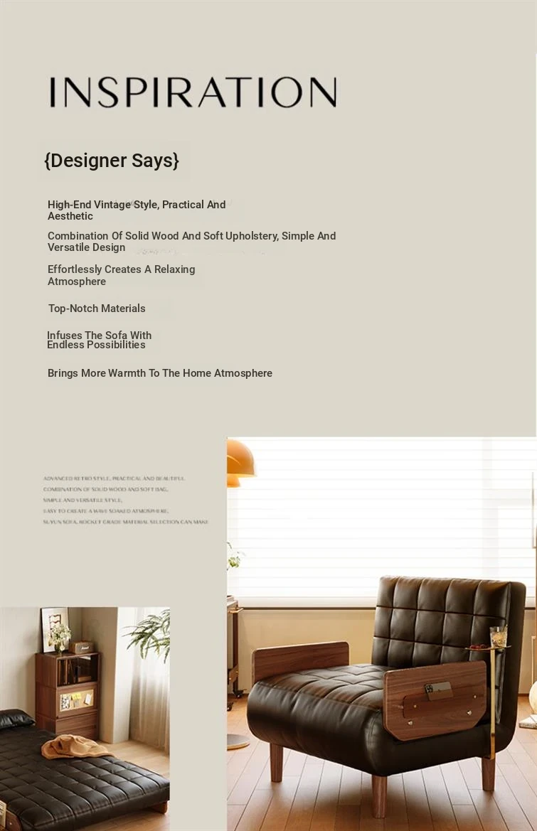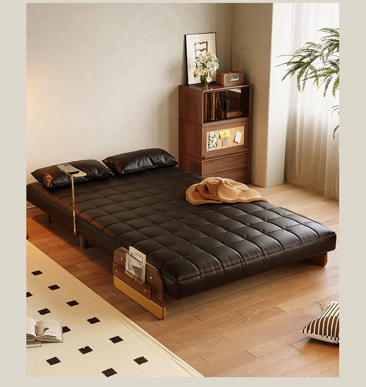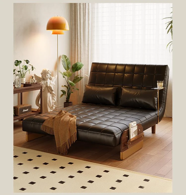 Versatile Foldable Sofa Bed for Small Living Spaces - Stylish Leather Armchair for Home Office or Lounge, Space-Saving Design with Solid Wood Frame, Perfect for Cozy Comfort and Practicality.