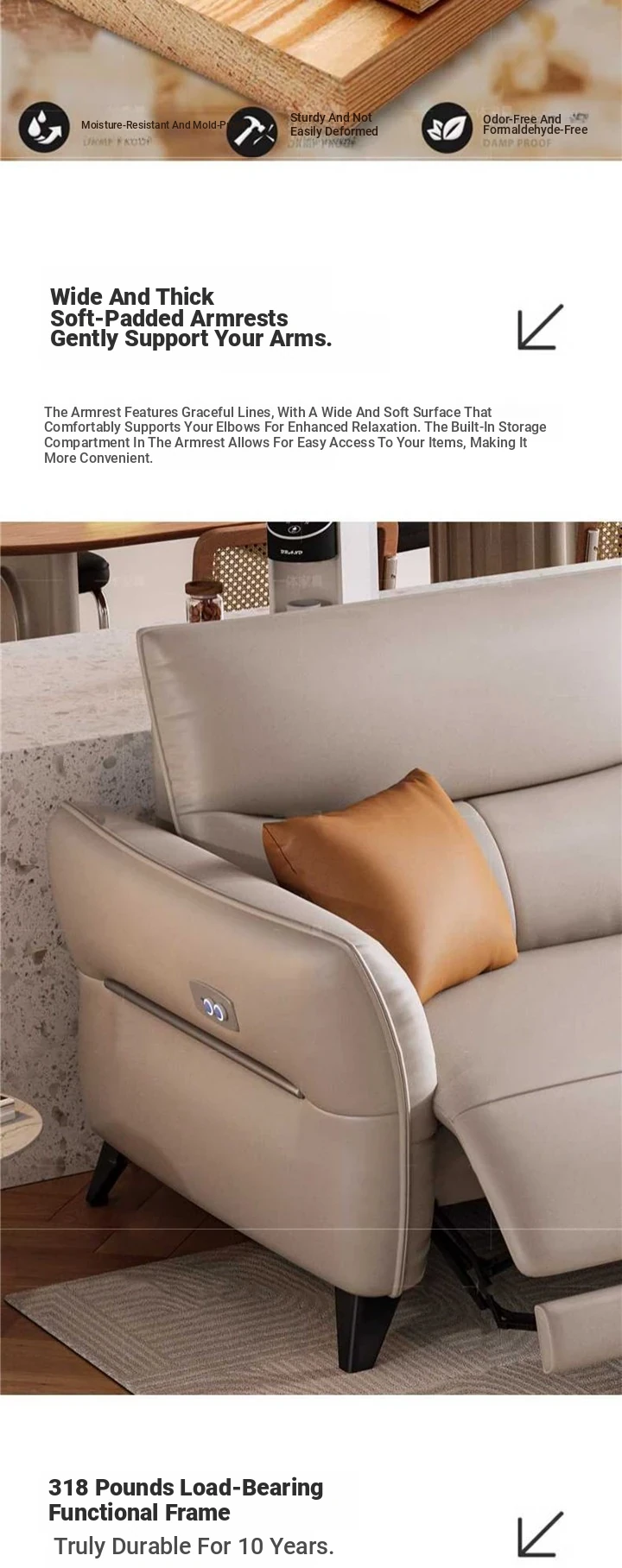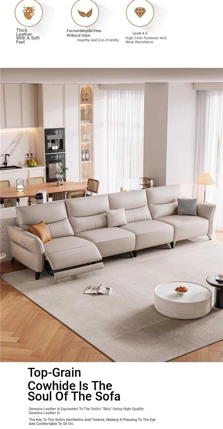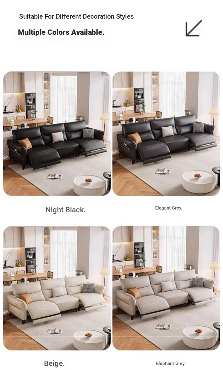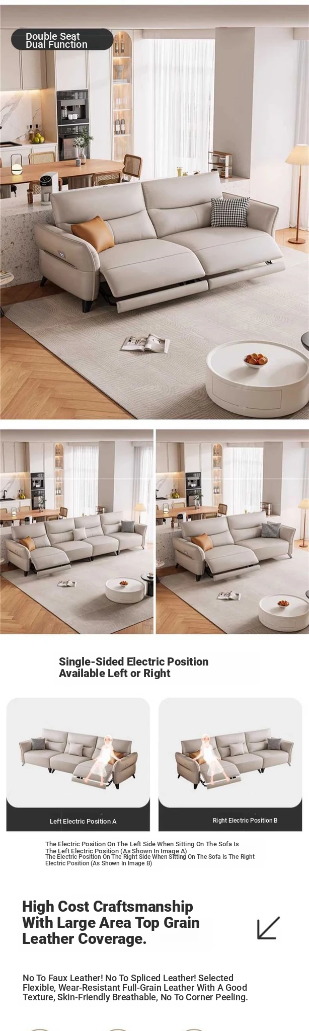 Voice-Controlled Electric Genuine Leather Sofa - Space-Saving Wall-Back Design for Living Room, 3-Seater Family Cinema Seating, In Stock Now!