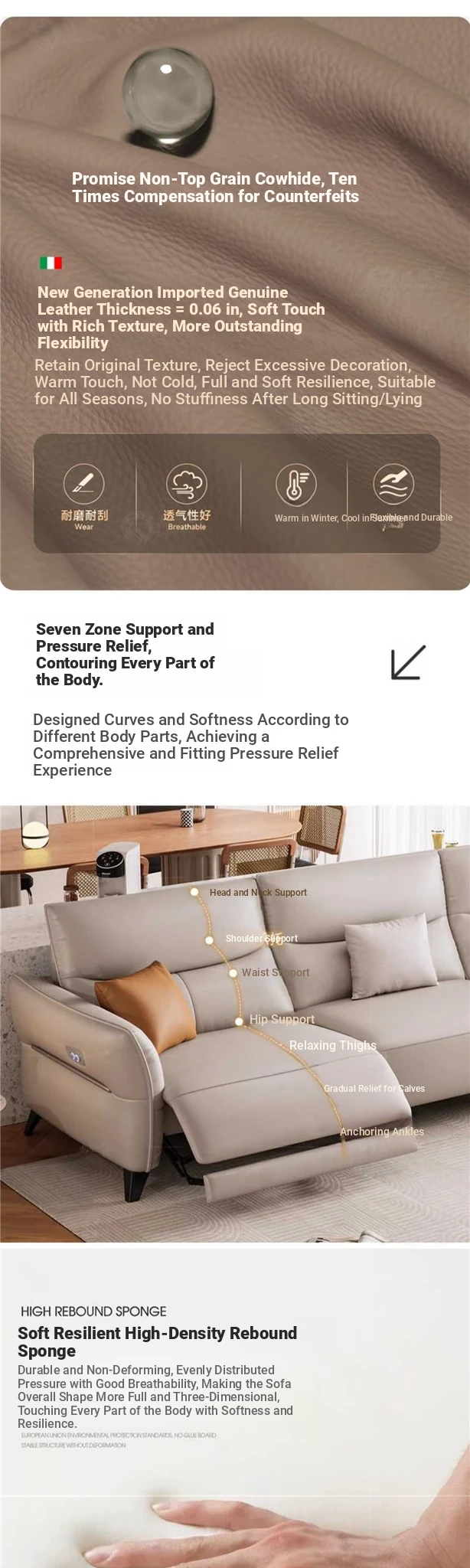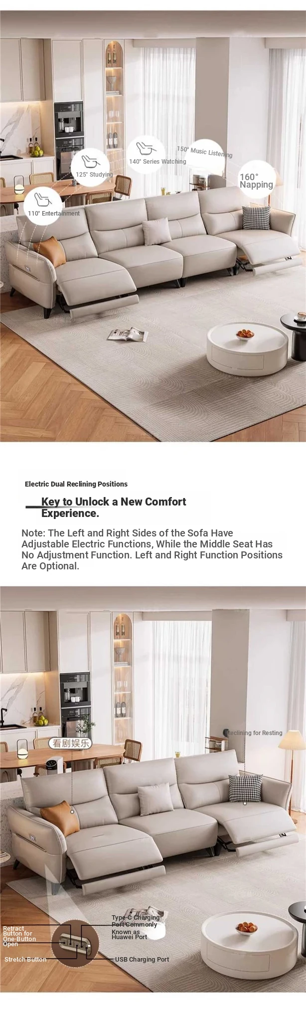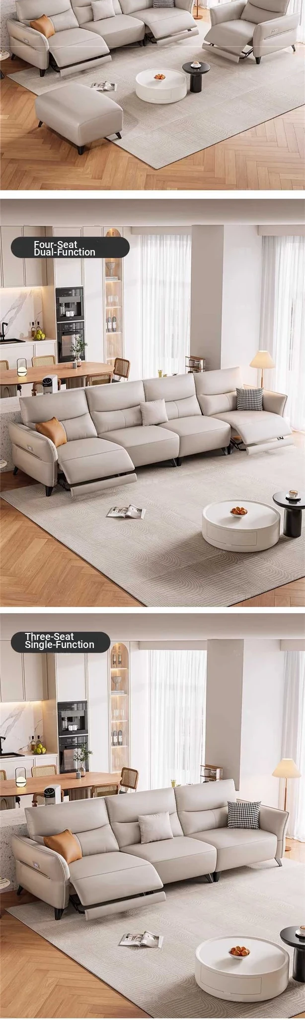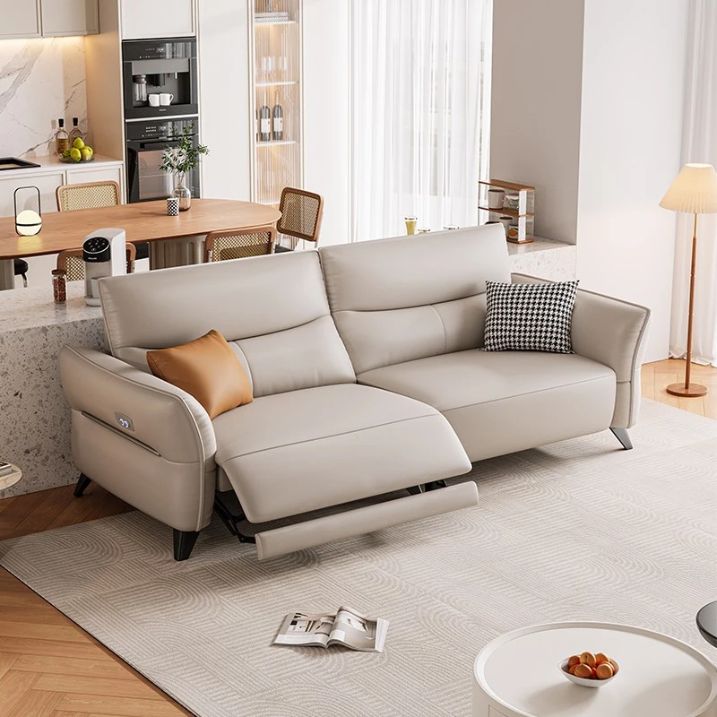 Voice-Controlled Electric Genuine Leather Sofa - Space-Saving Wall-Back Design for Living Room, 3-Seater Family Cinema Seating, In Stock Now!
