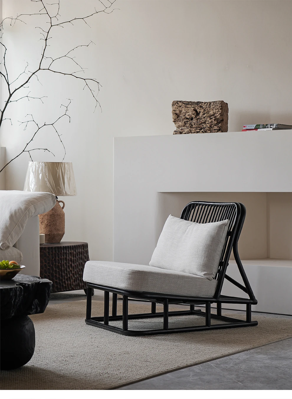 Wabi-Sabi Black Balcony Minimalist Lounge Chair - Designer Single Sofa for Living Room, Perfect for Cozy Bedrooms and Relaxing Spaces