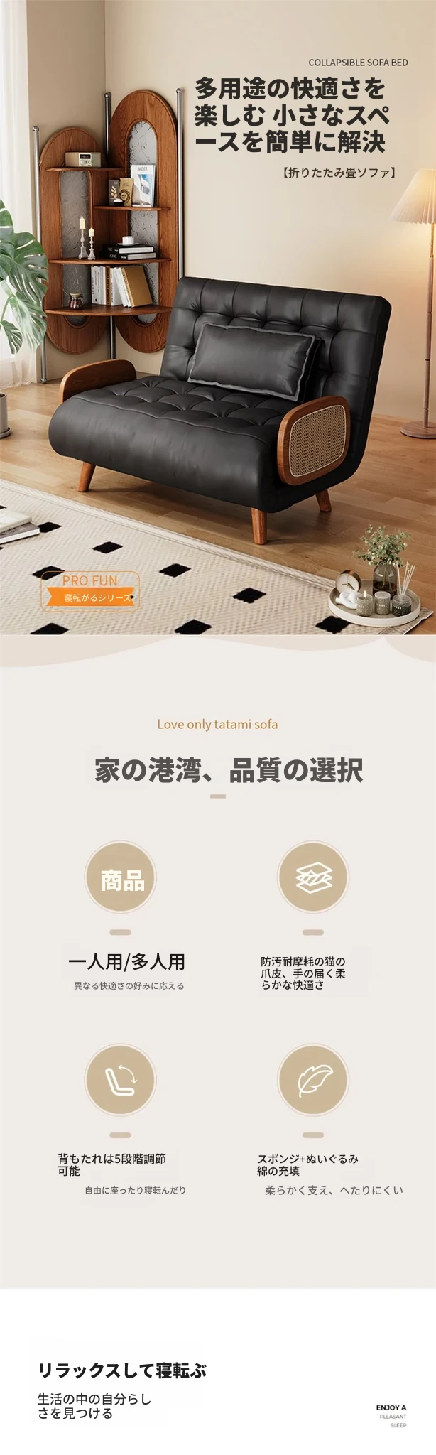 2024年新作!人気の折りたたみソファベッド - 小スペースに最適な伸縮式シングルベッド。リビングやバルコニーでも大活躍!多機能でスタイリッシュな空間を演出します。