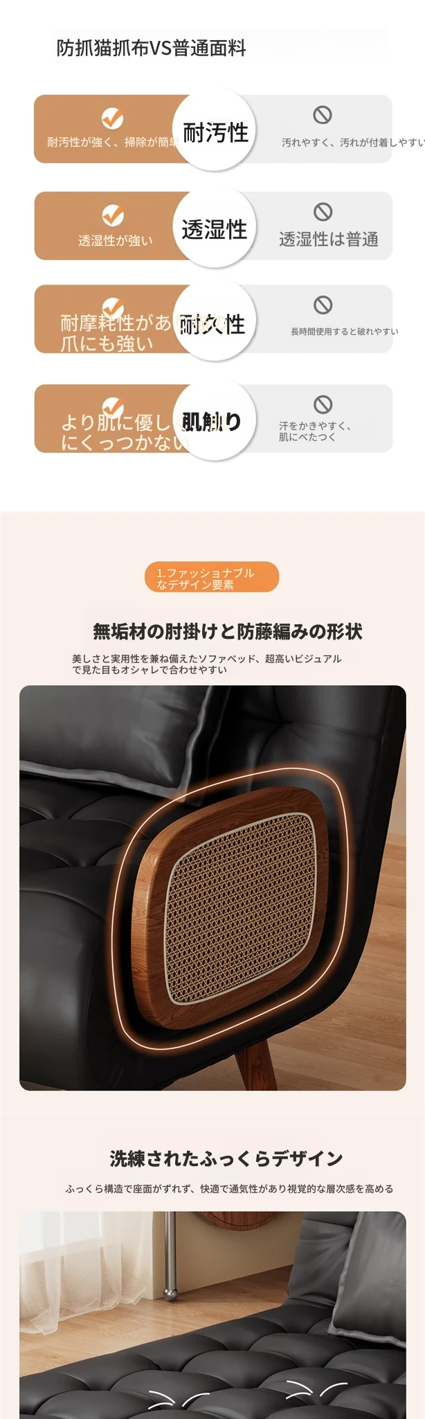 防汚キャットクロー皮【0.66メートルソファベッド】スポンジ充填/クッション付き
