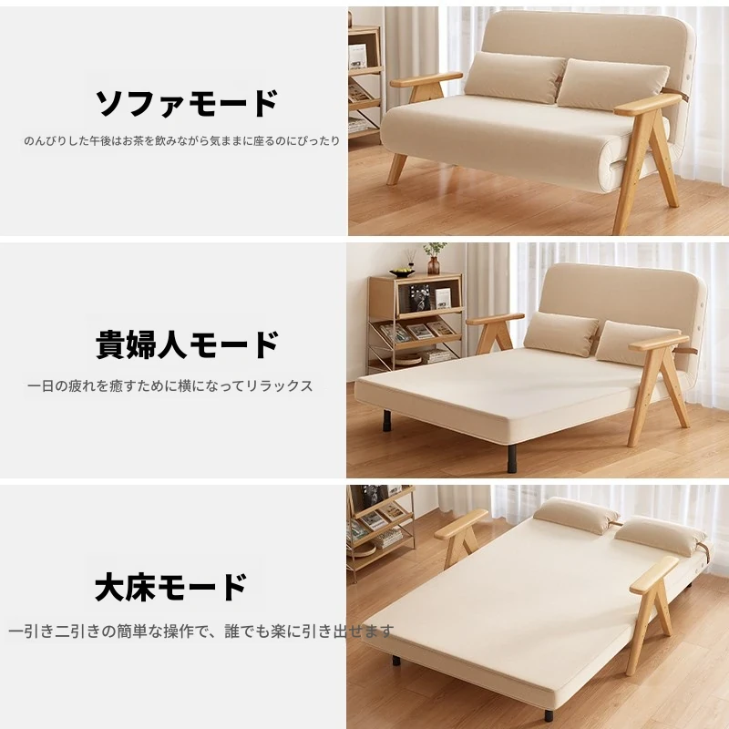 1.2mソファベッド【通気性のあるコットンリネン】宅配便・取り付け込み