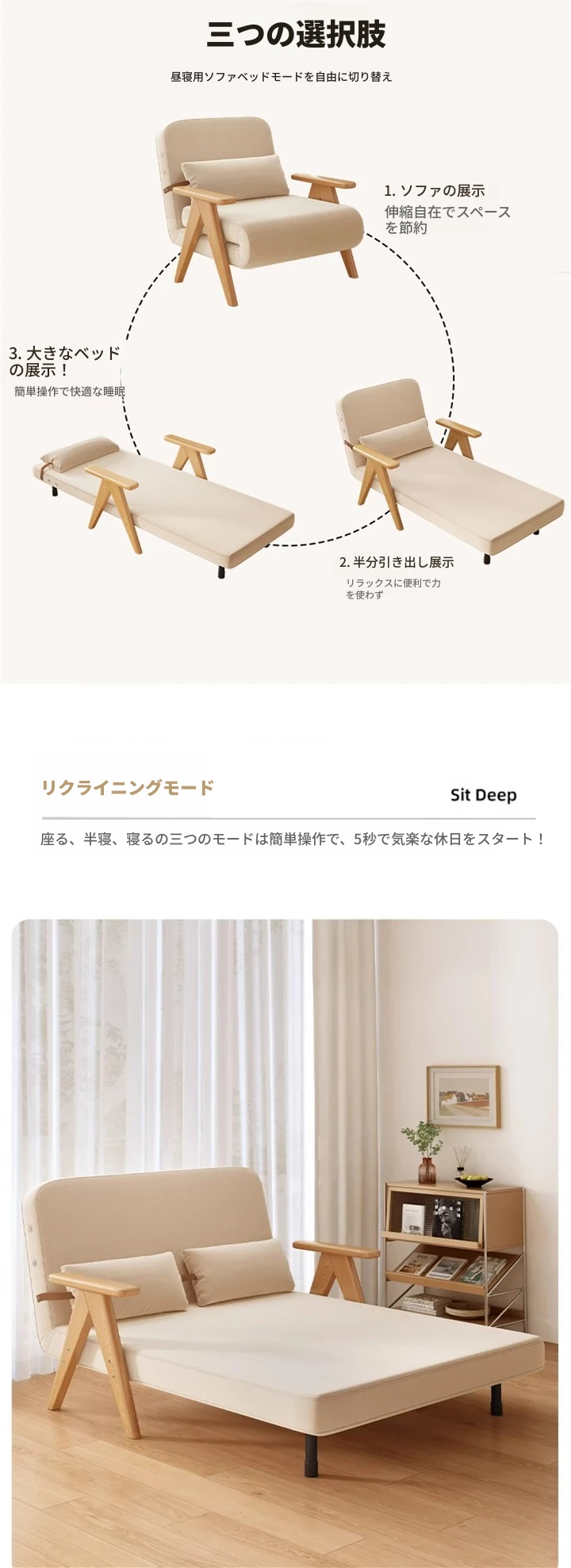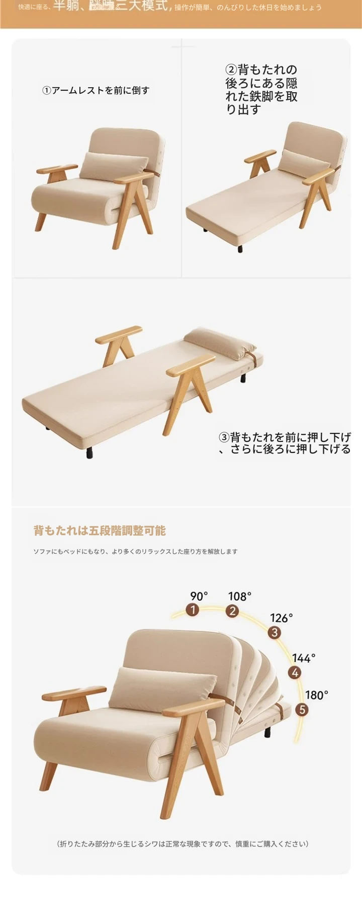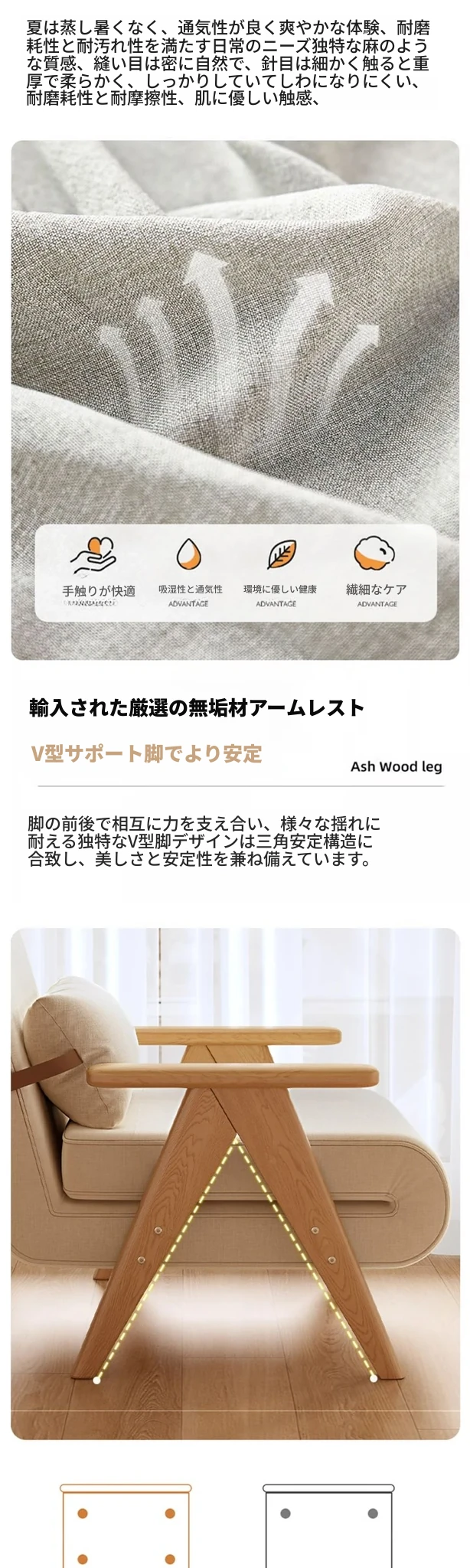 1mソファベッド【通気性のあるコットンリネン】宅配便