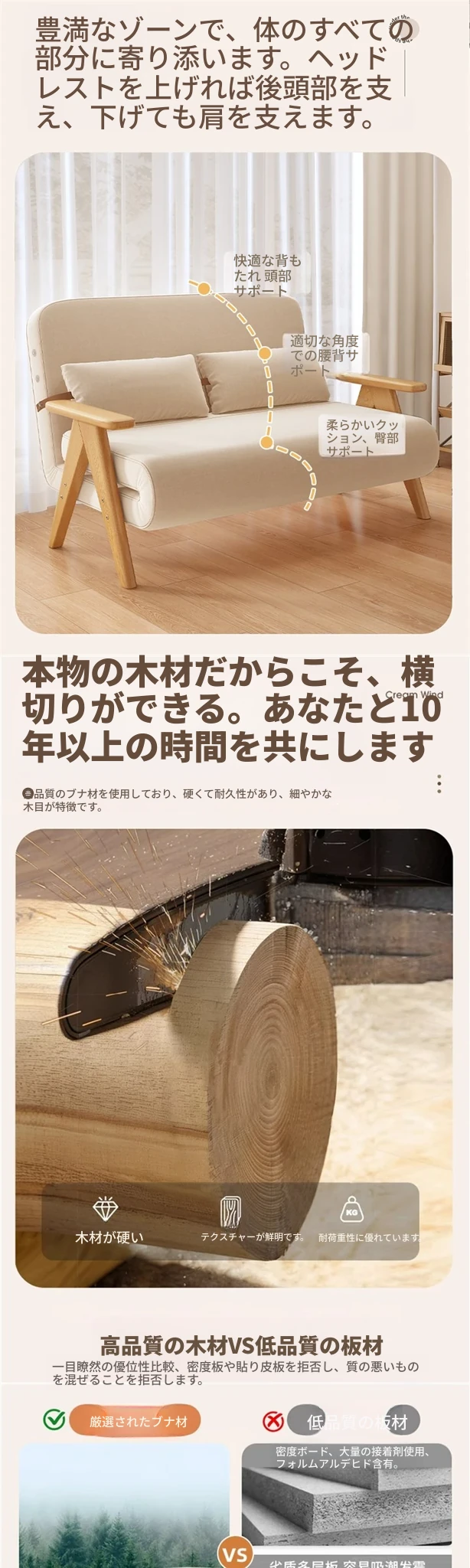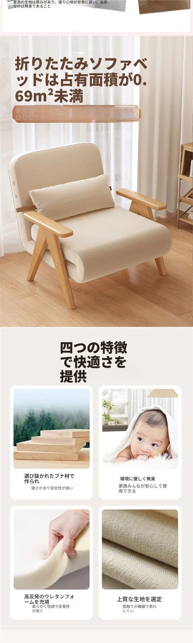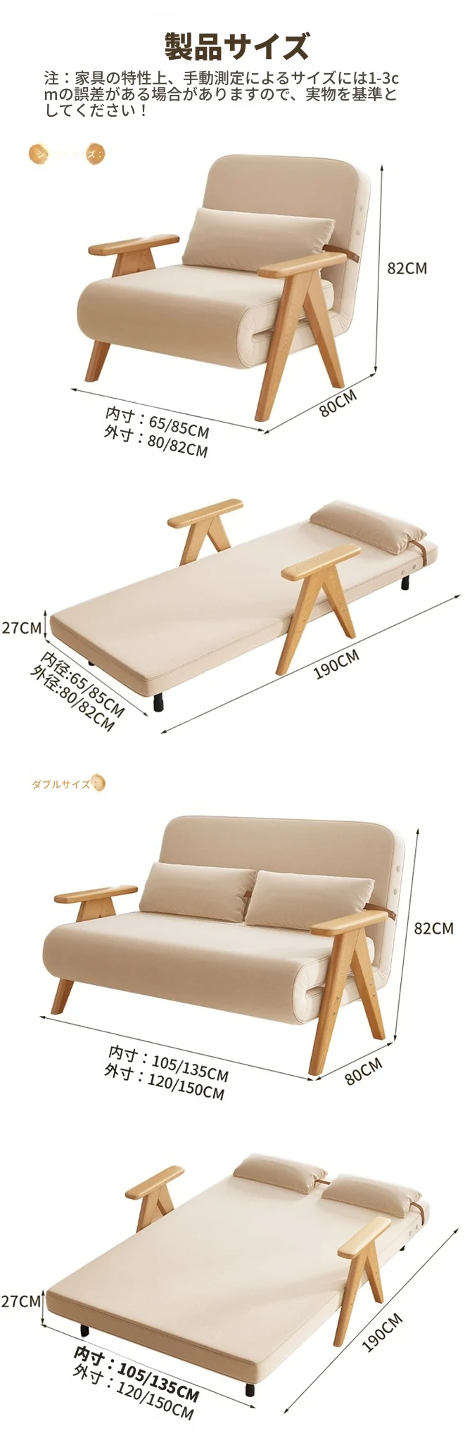 1mソファベッド【通気性のあるコットンリネン】宅配便