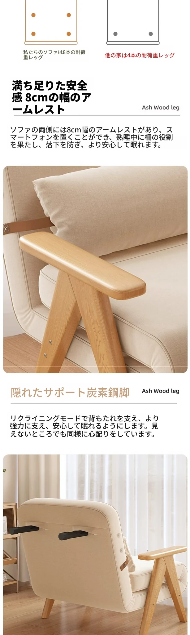 0.8mソファベッド【通気性のあるコットンリネン】宅配便・取り付け込み