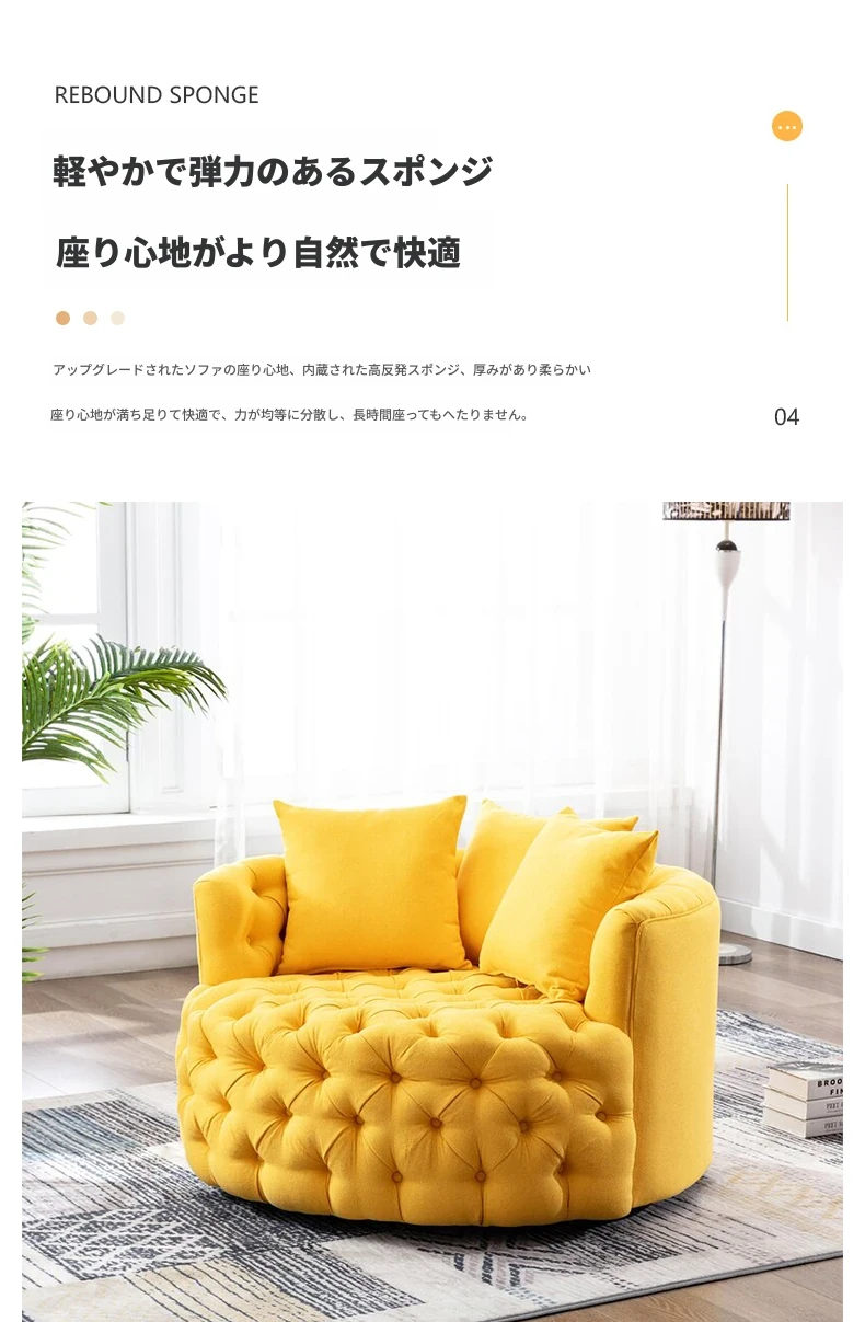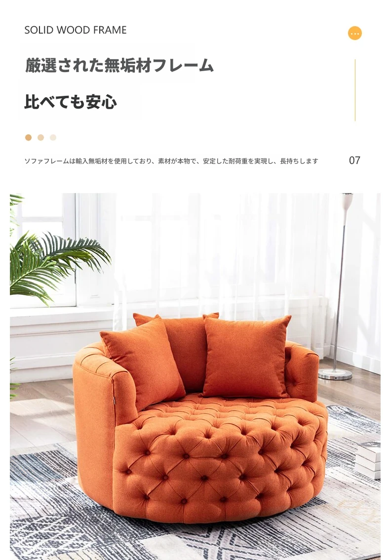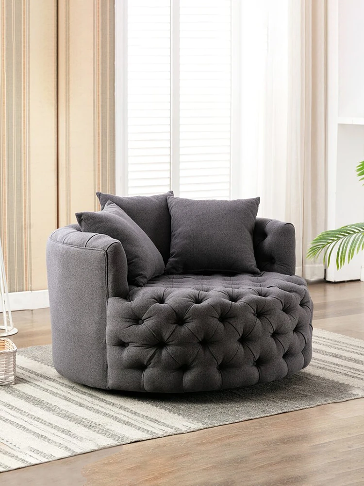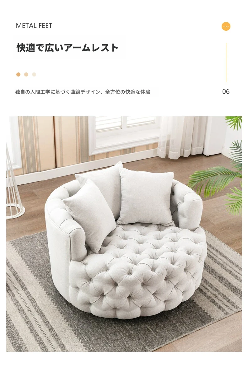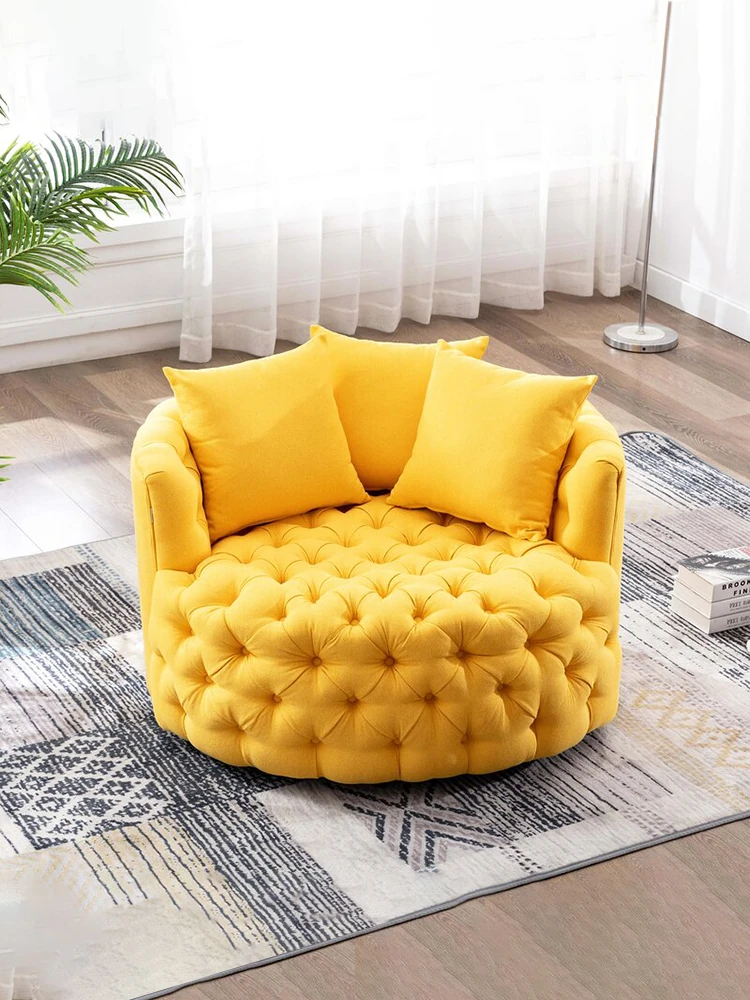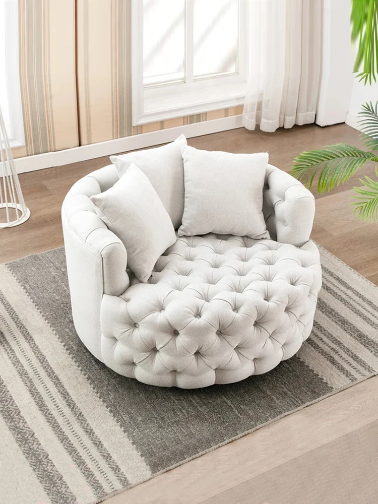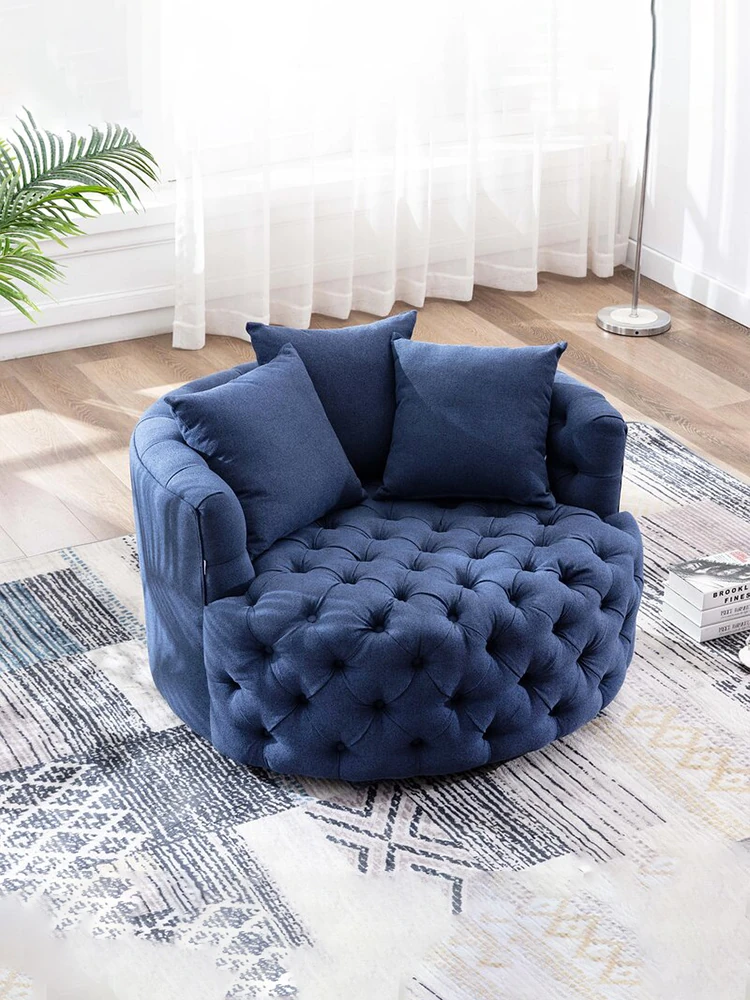 アメリカンスタイルのラグジュアリーリネン生地スナップボタン単人ソファ - イタリアンシンプルデザインの回転式ラウンドリラックスソファチェア。おしゃれで快適なリビング空間を演出!