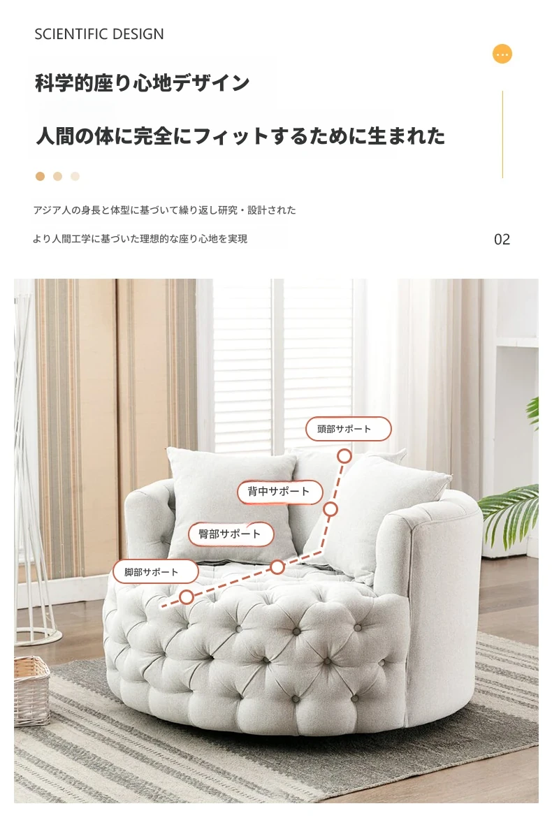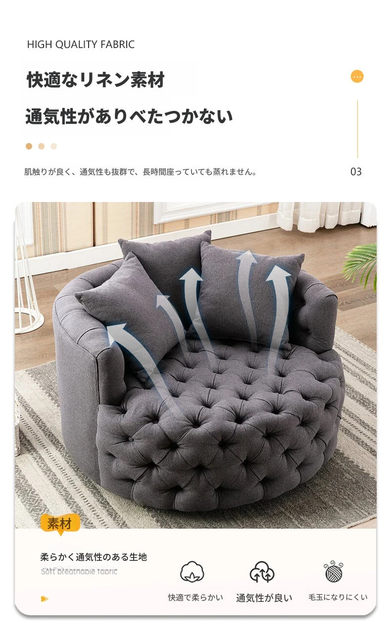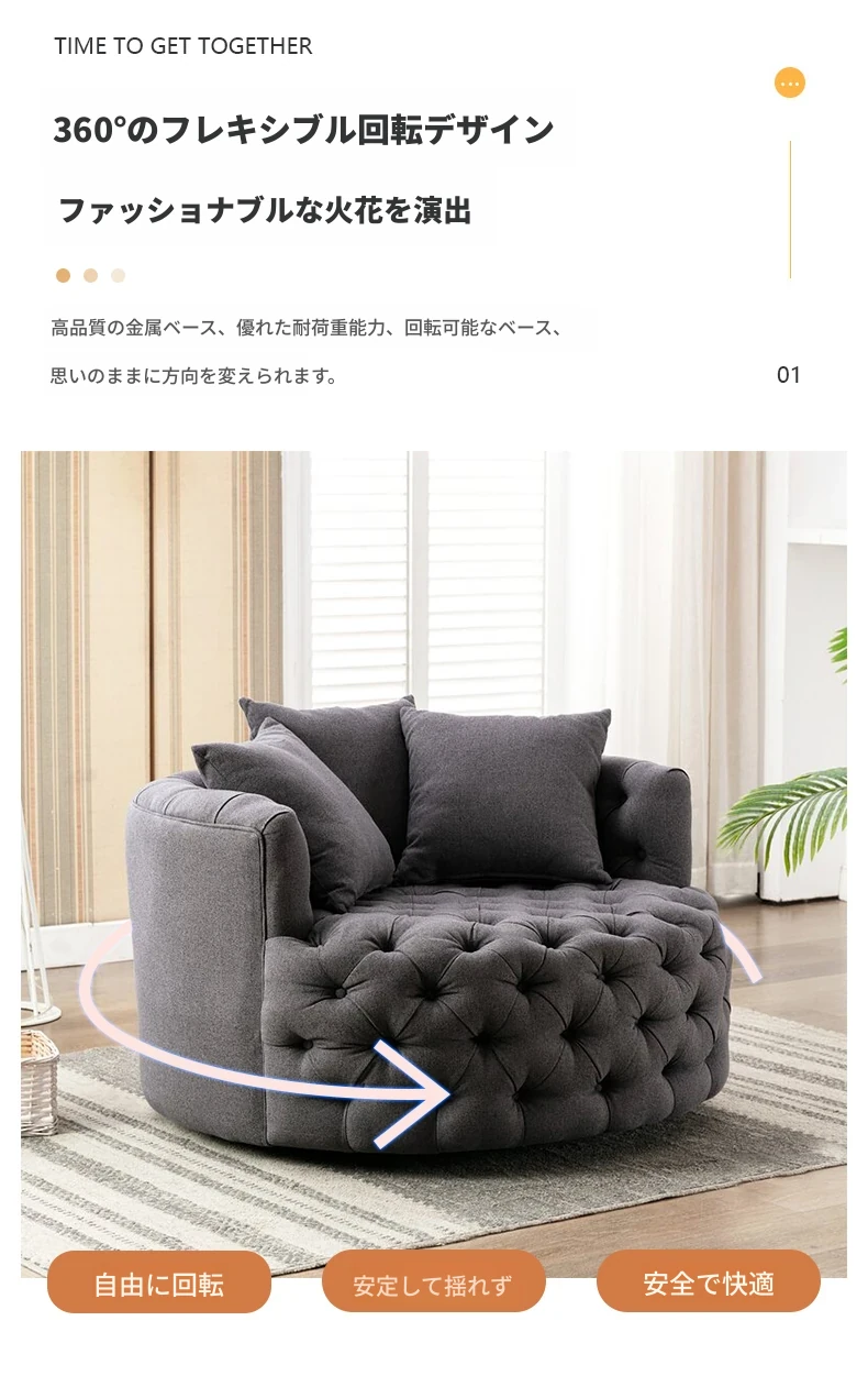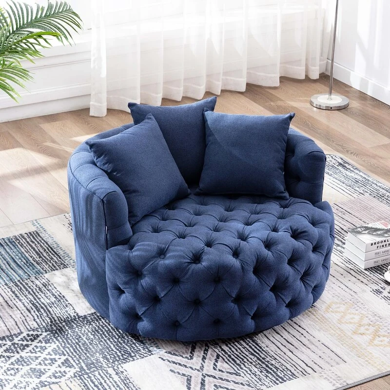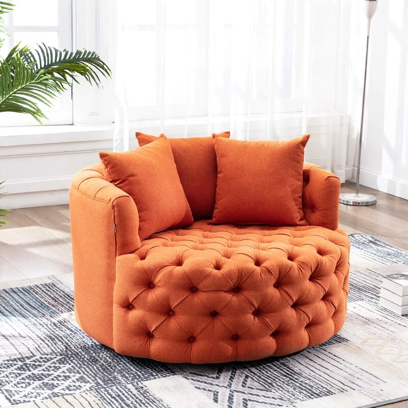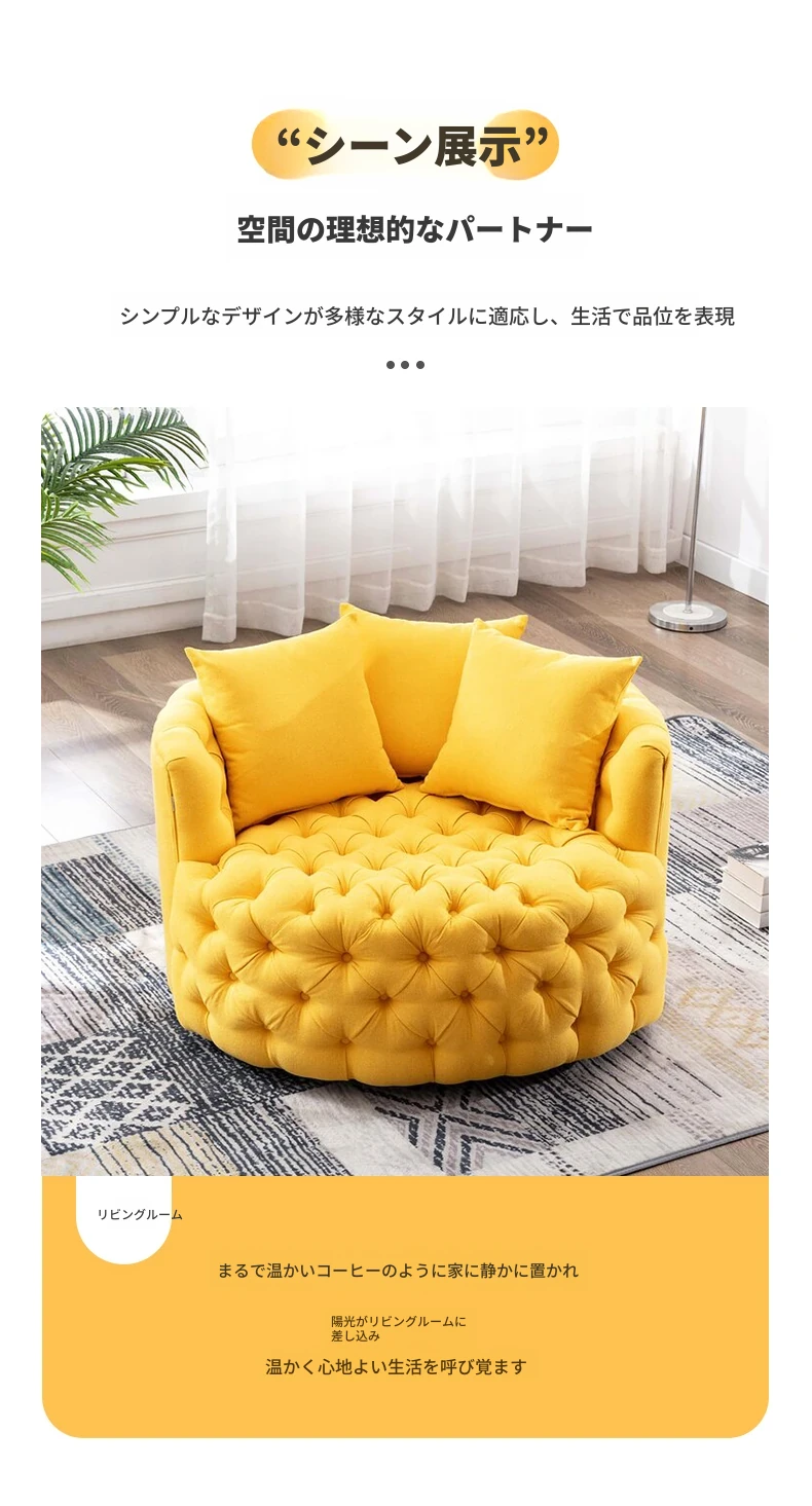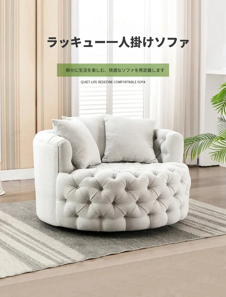 アメリカンスタイルのラグジュアリーリネン生地スナップボタン単人ソファ - イタリアンシンプルデザインの回転式ラウンドリラックスソファチェア。おしゃれで快適なリビング空間を演出!