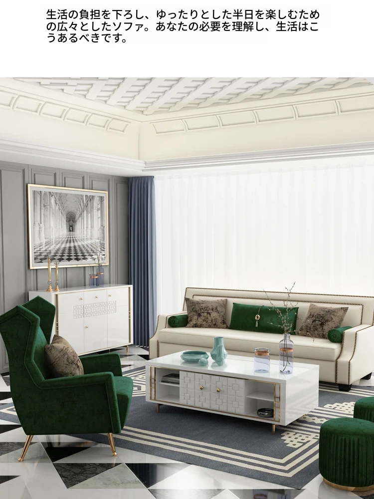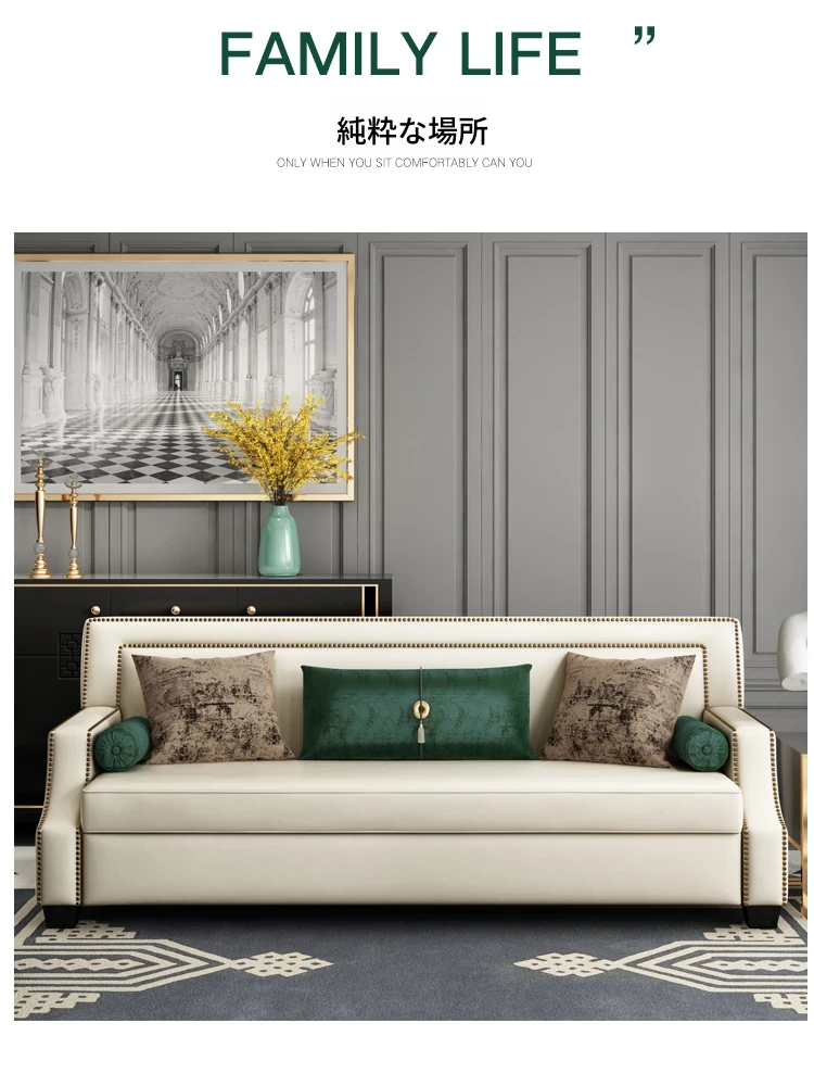 アメリカンラグジュアリー輸入本革ソファー - シンプルで洗練された新中式デザイン、1人用・2人用・3人用、小型住宅にもぴったりなトレンディなコンビネーション!おしゃれなリビング空間を演出します。