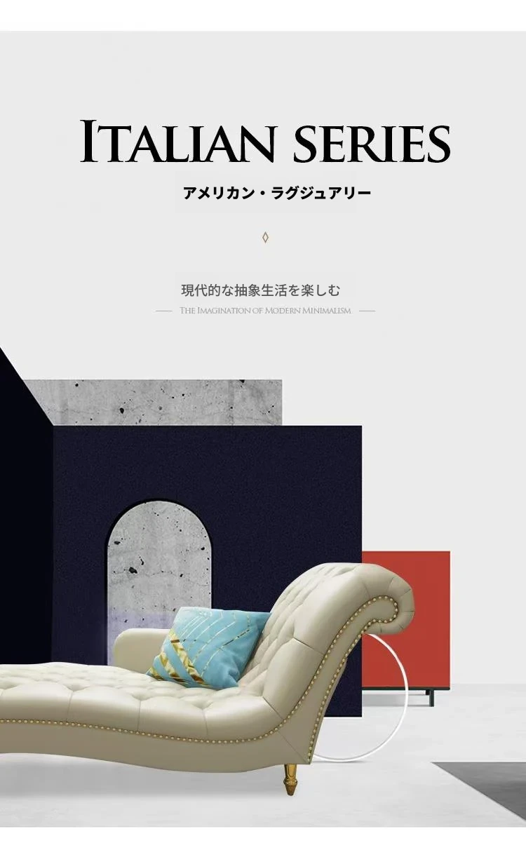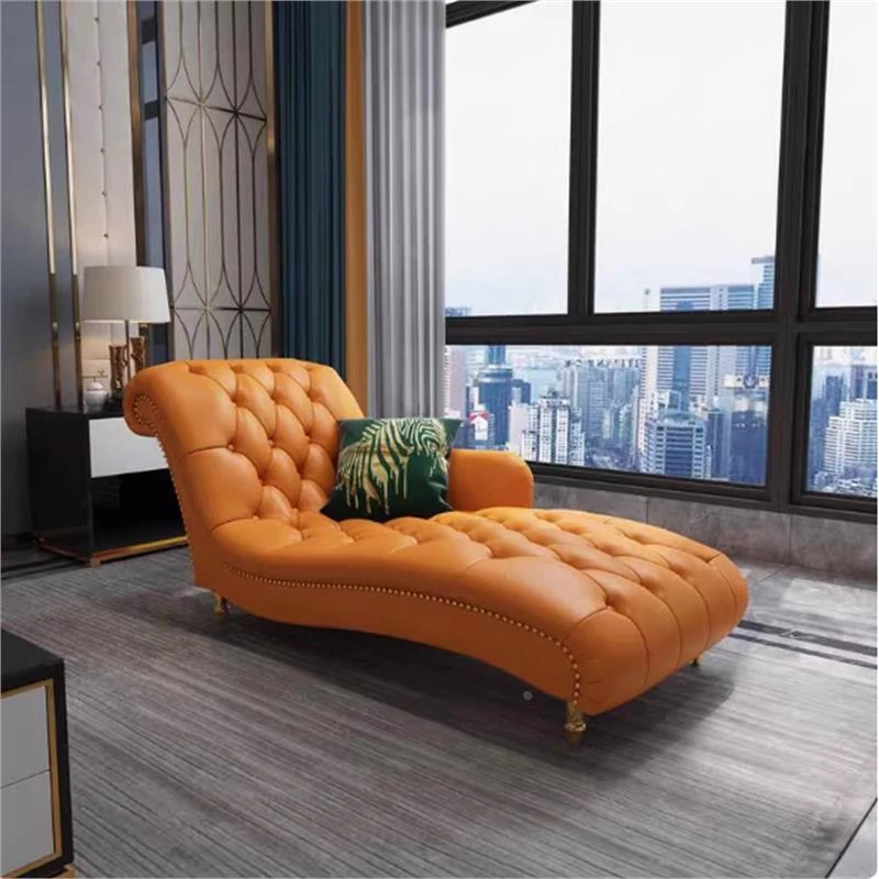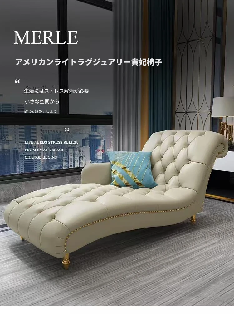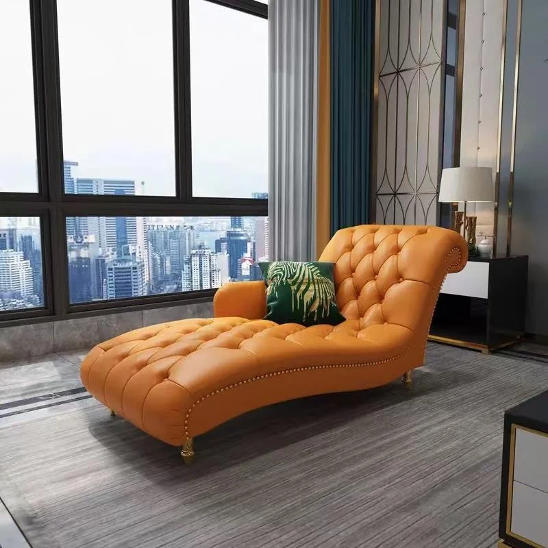 アメリカンスタイルのラグジュアリー・オットマン!小さなリビングや寝室にぴったりな本革の米白色とオレンジ色の一人用リクライニングチェア。優雅なデザインで、あなたの空間を格上げします!