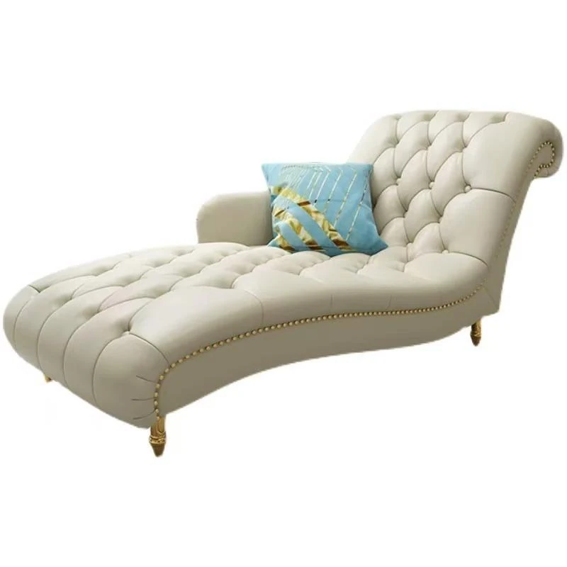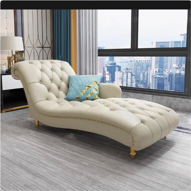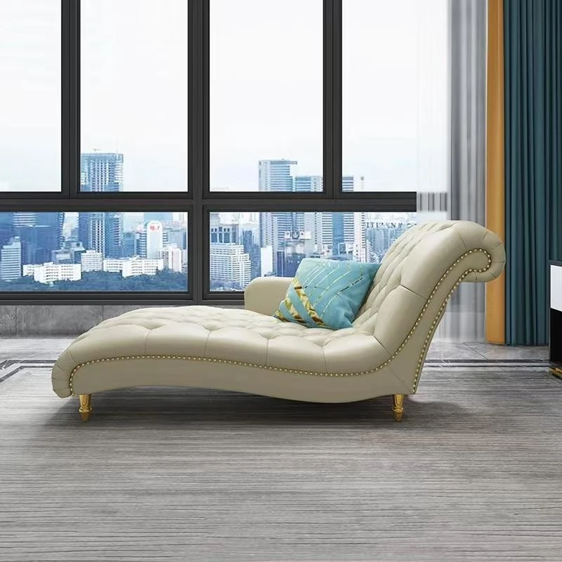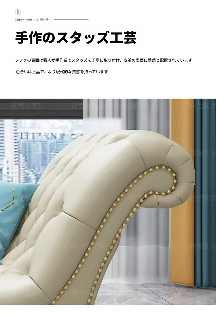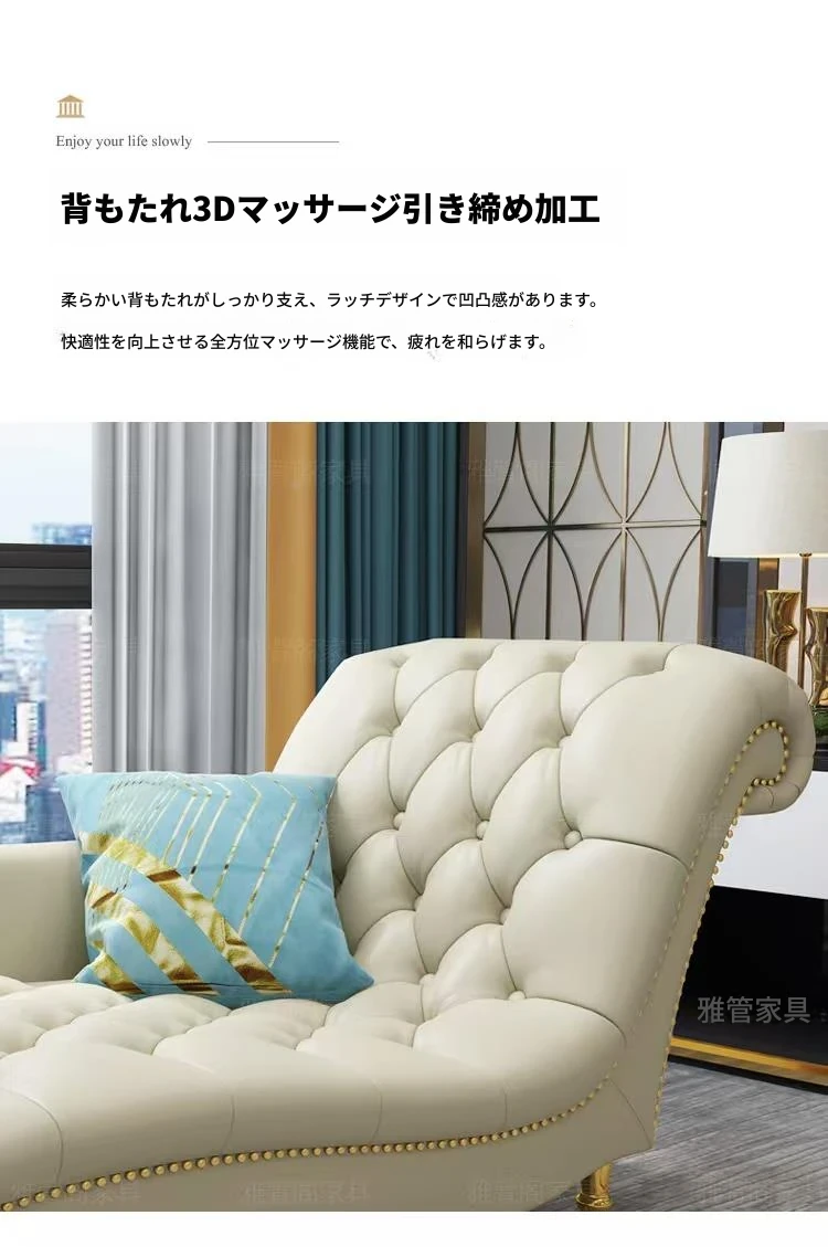 アメリカンスタイルのラグジュアリー・オットマン!小さなリビングや寝室にぴったりな本革の米白色とオレンジ色の一人用リクライニングチェア。優雅なデザインで、あなたの空間を格上げします!