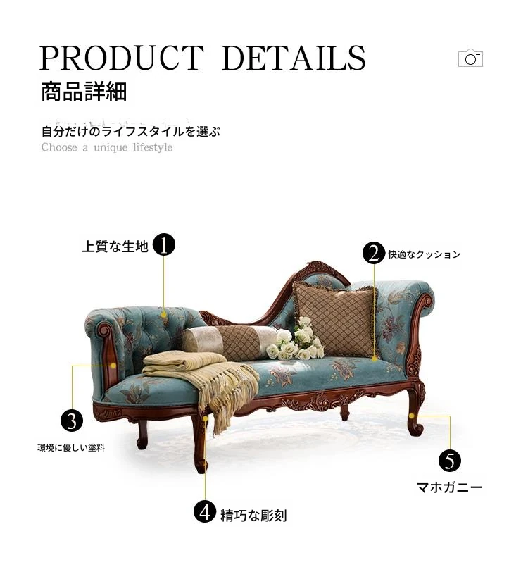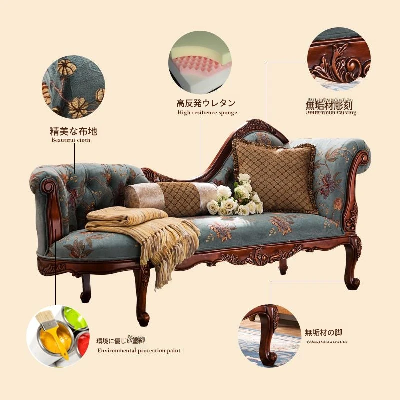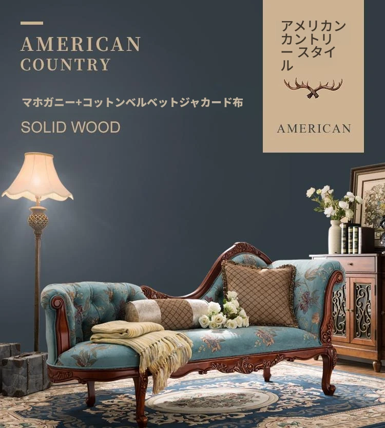 アメリカンスタイルの無垢材製のファブリック・カウチ、バルコニー用リラックスチェア、ソファとしても使用できる美しいデザインの欧風一人用リクライニングチェア。快適なひとときをお楽しみください!