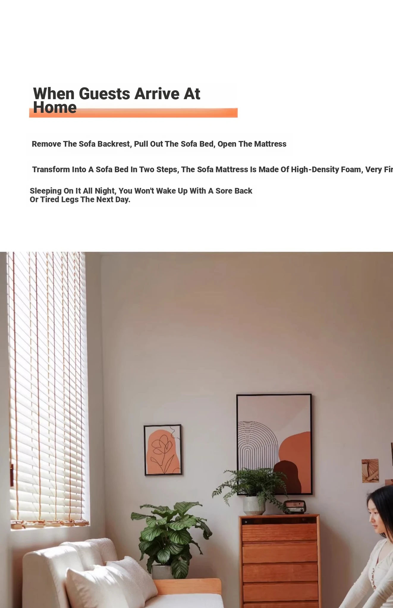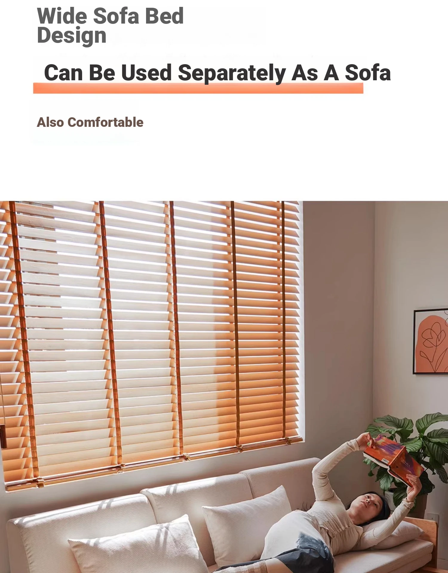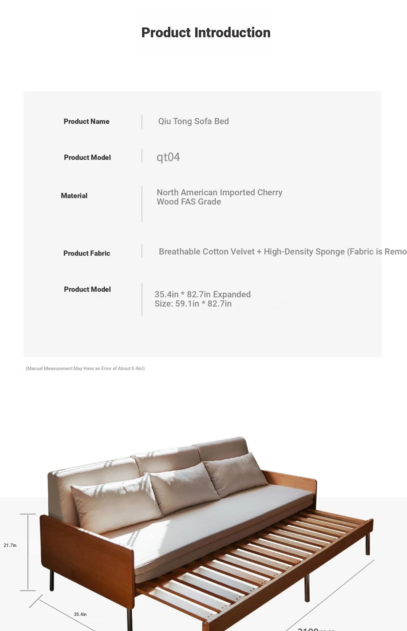 Cherry Wood Expandable Sofa Bed - Solid Wood, Pull-Out Design, Perfect for Small Spaces, Versatile 3-Seater for Sitting and Sleeping, Foldable and Space-Saving Solution.
