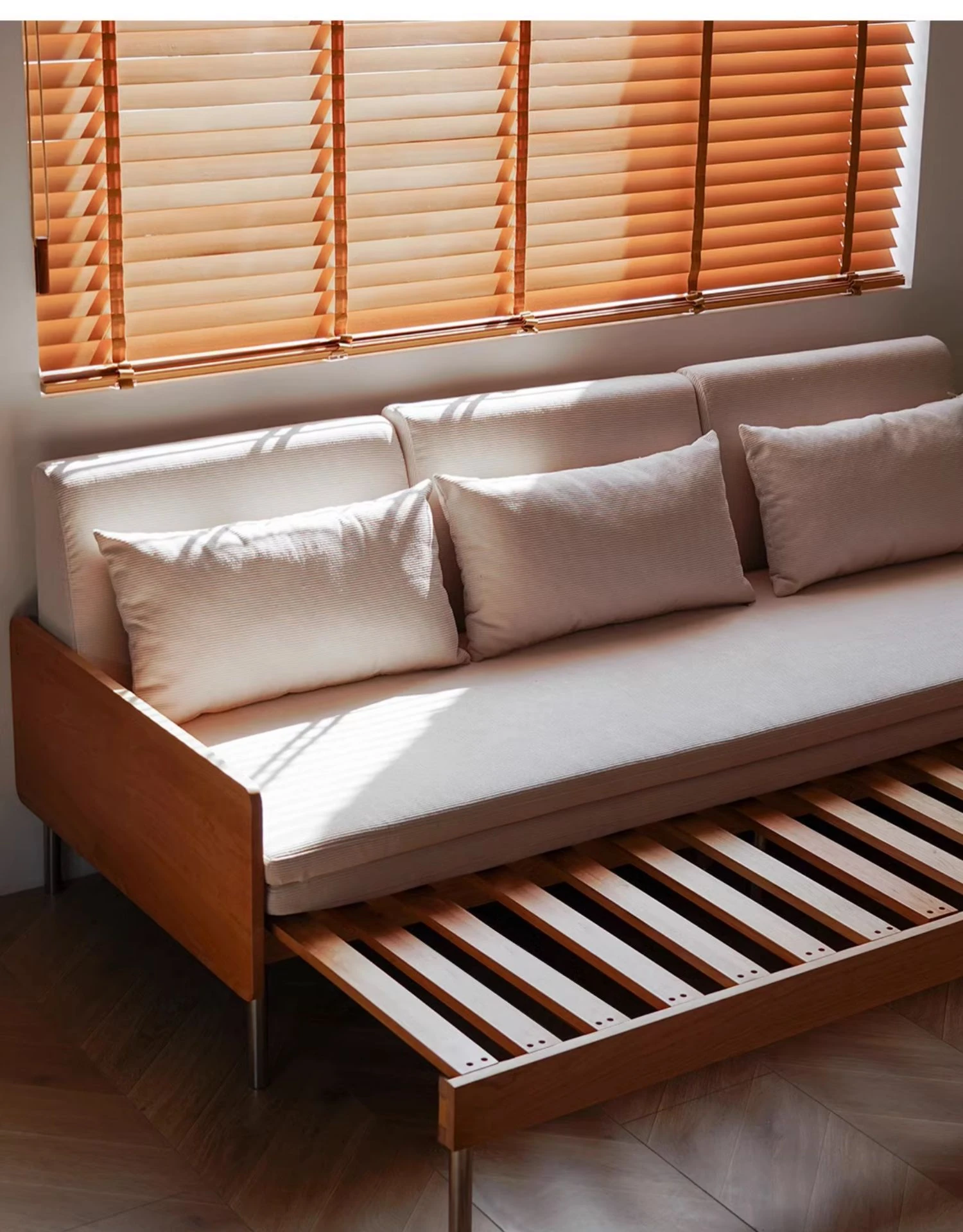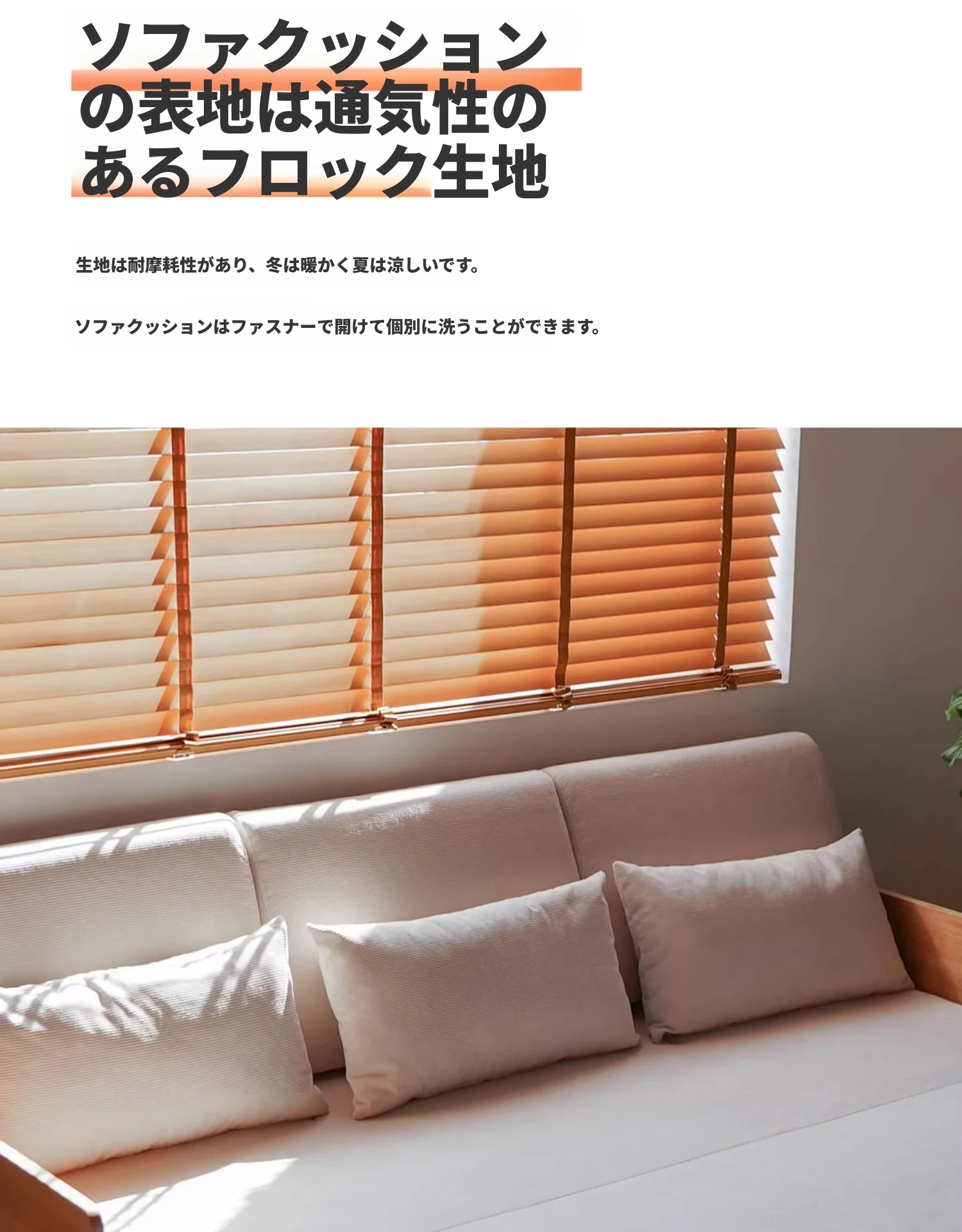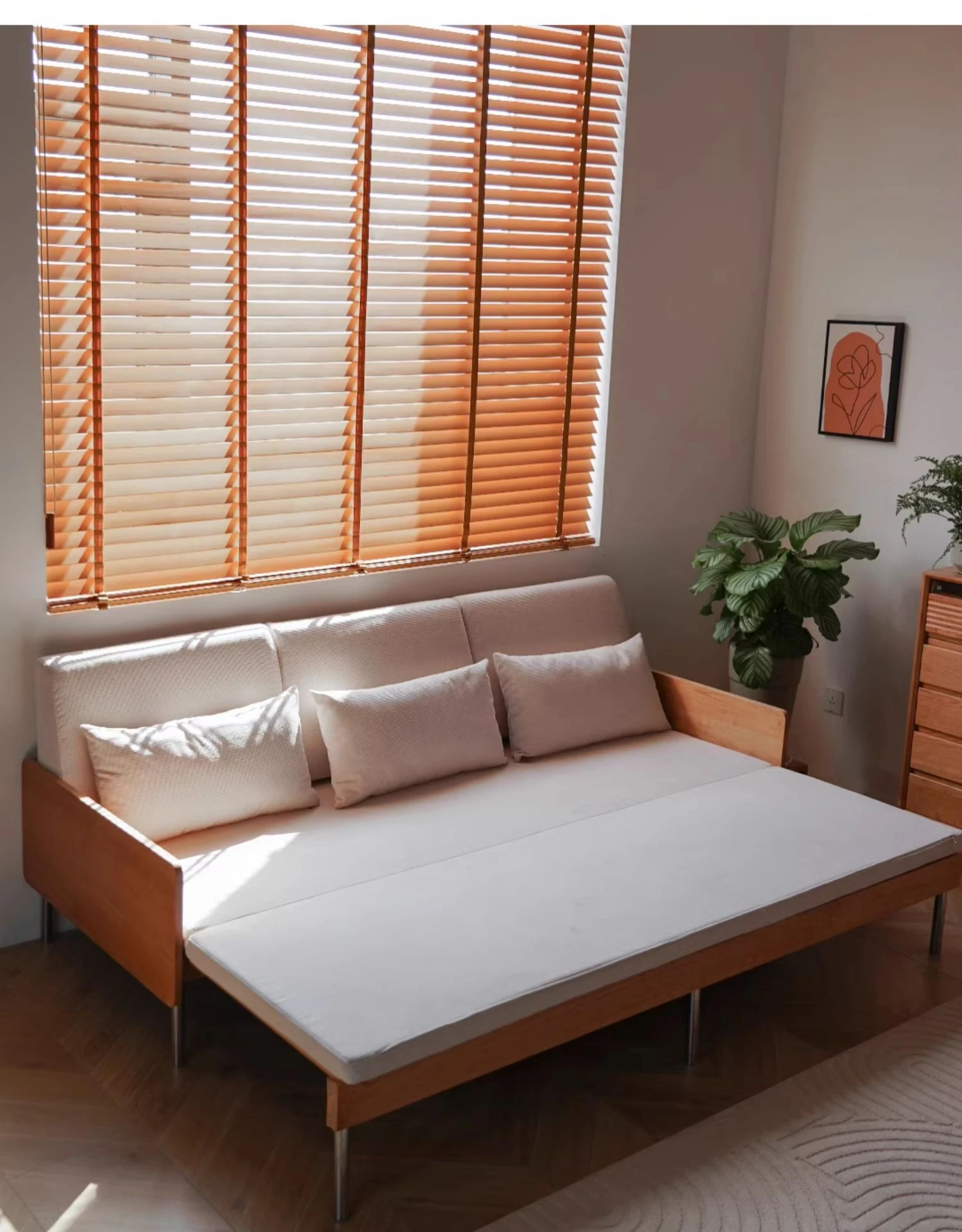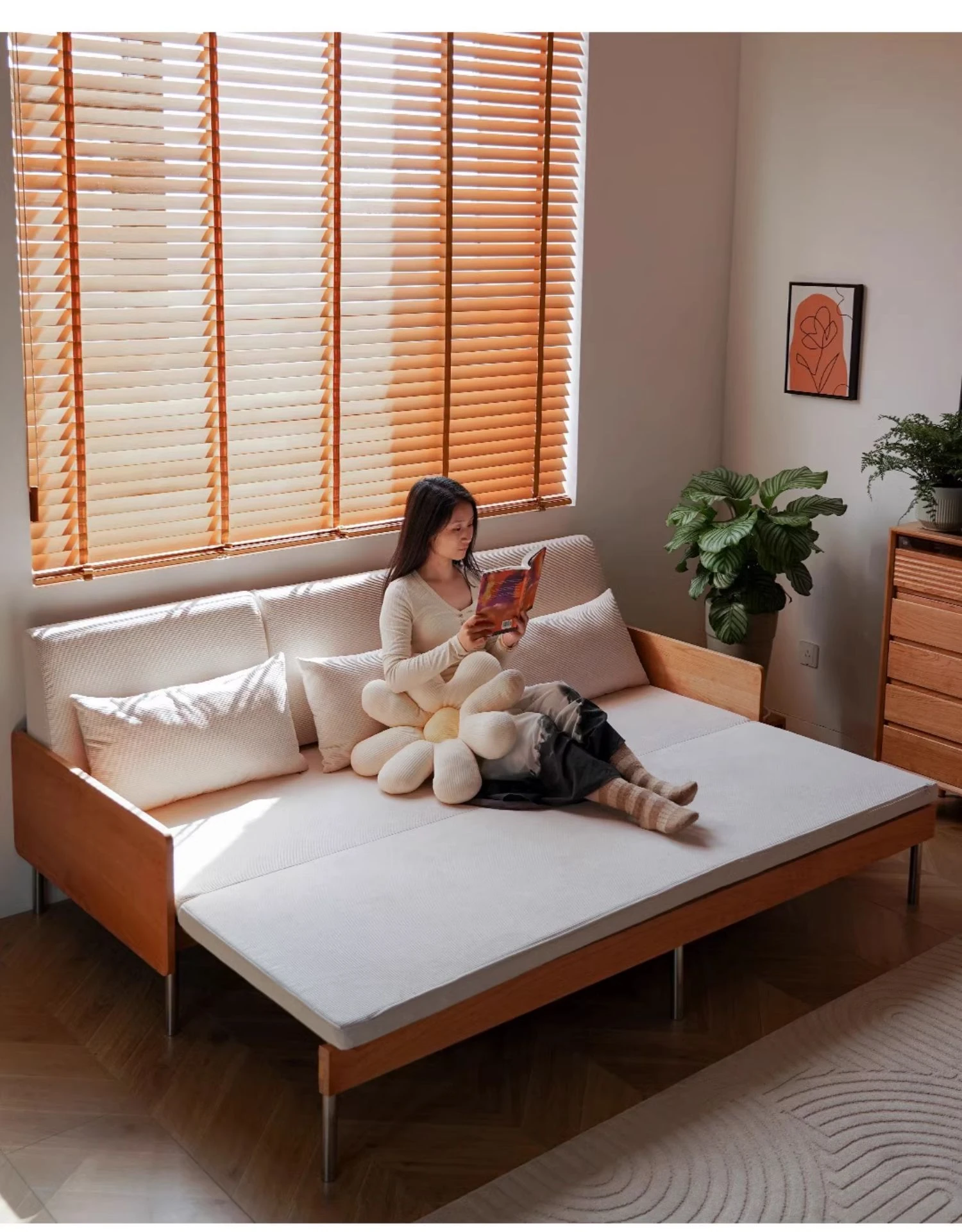 チェリーウッド製スライド式ソファベッド|全木製・コンパクトな3人用・座っても寝ても快適な折りたたみソファ|小スペースにぴったり!