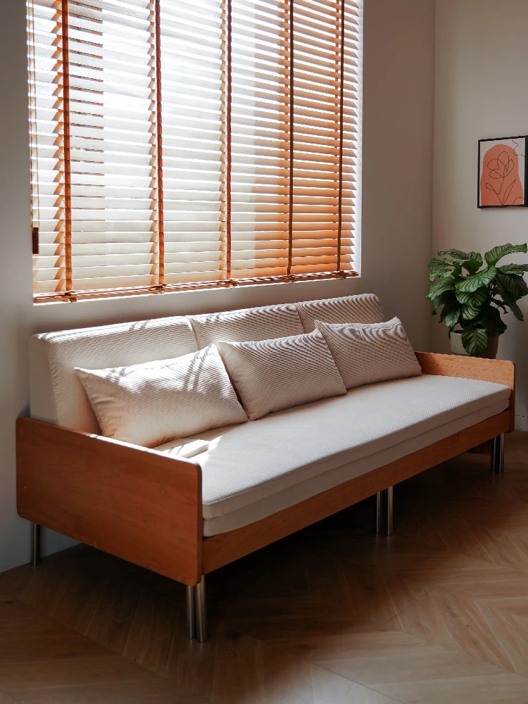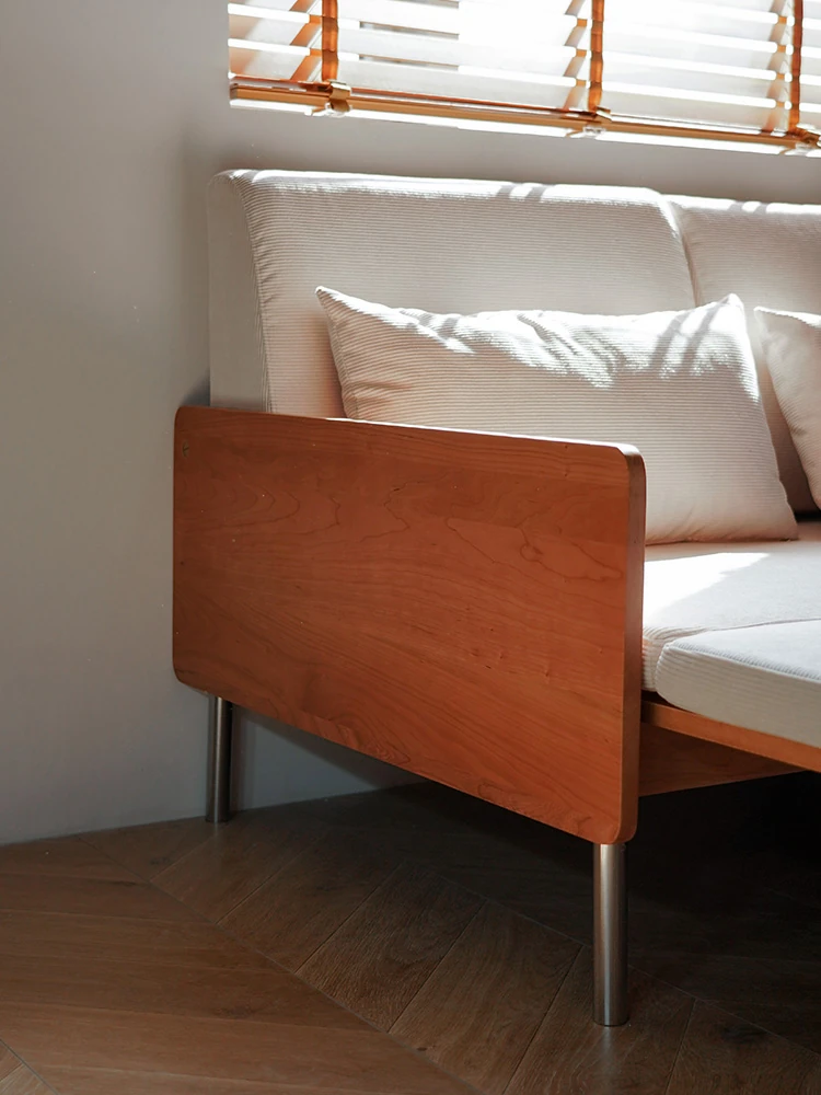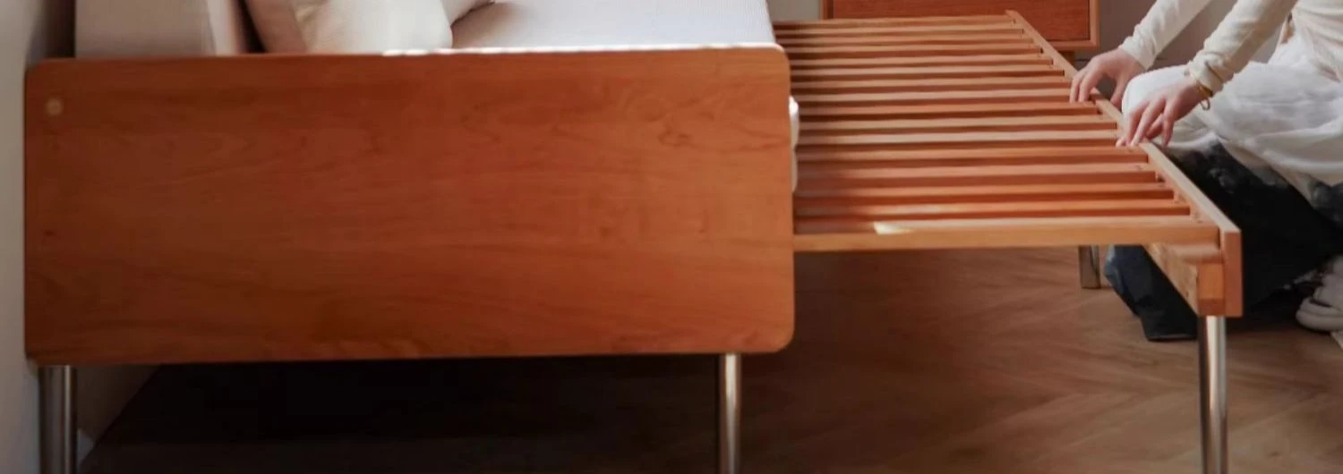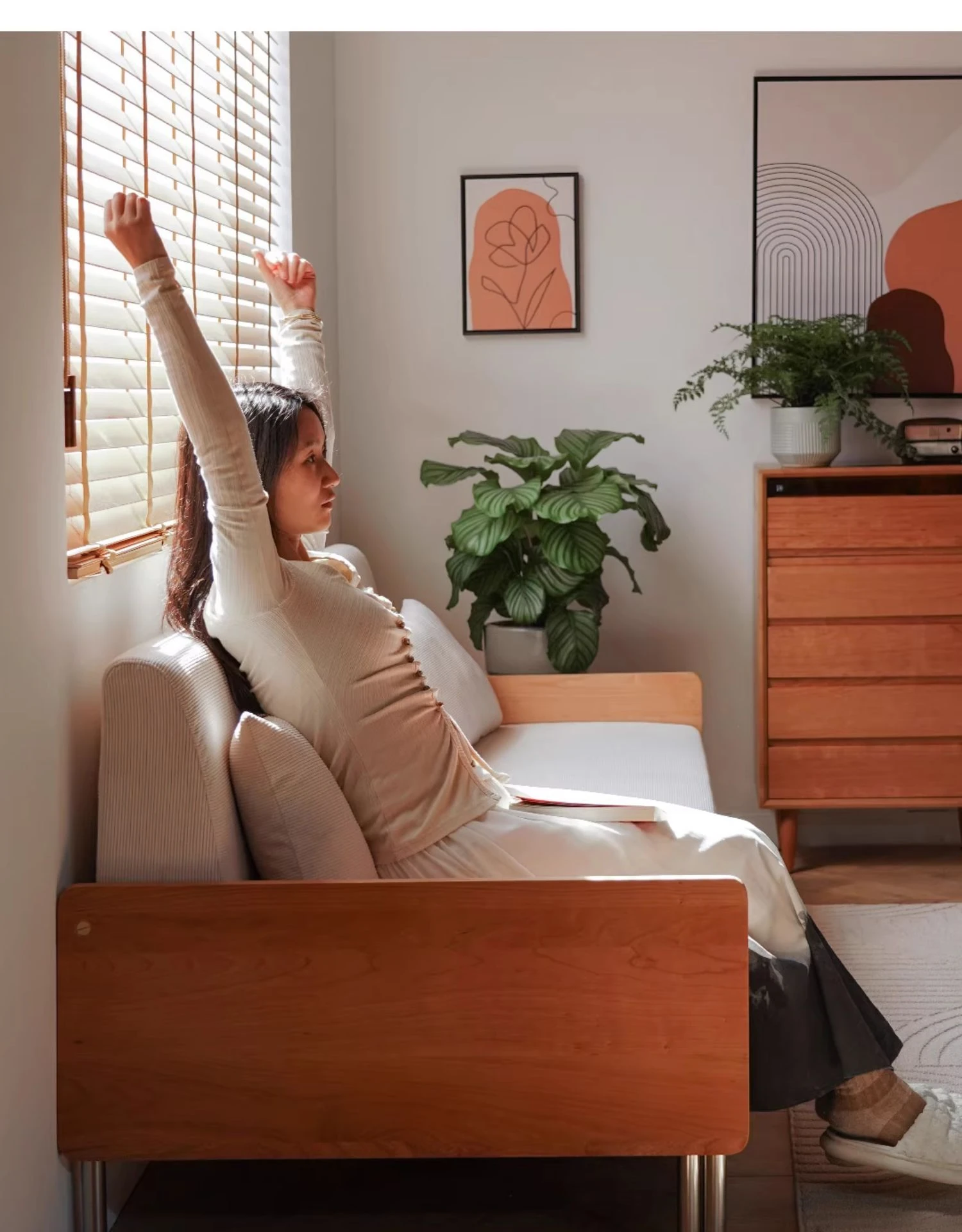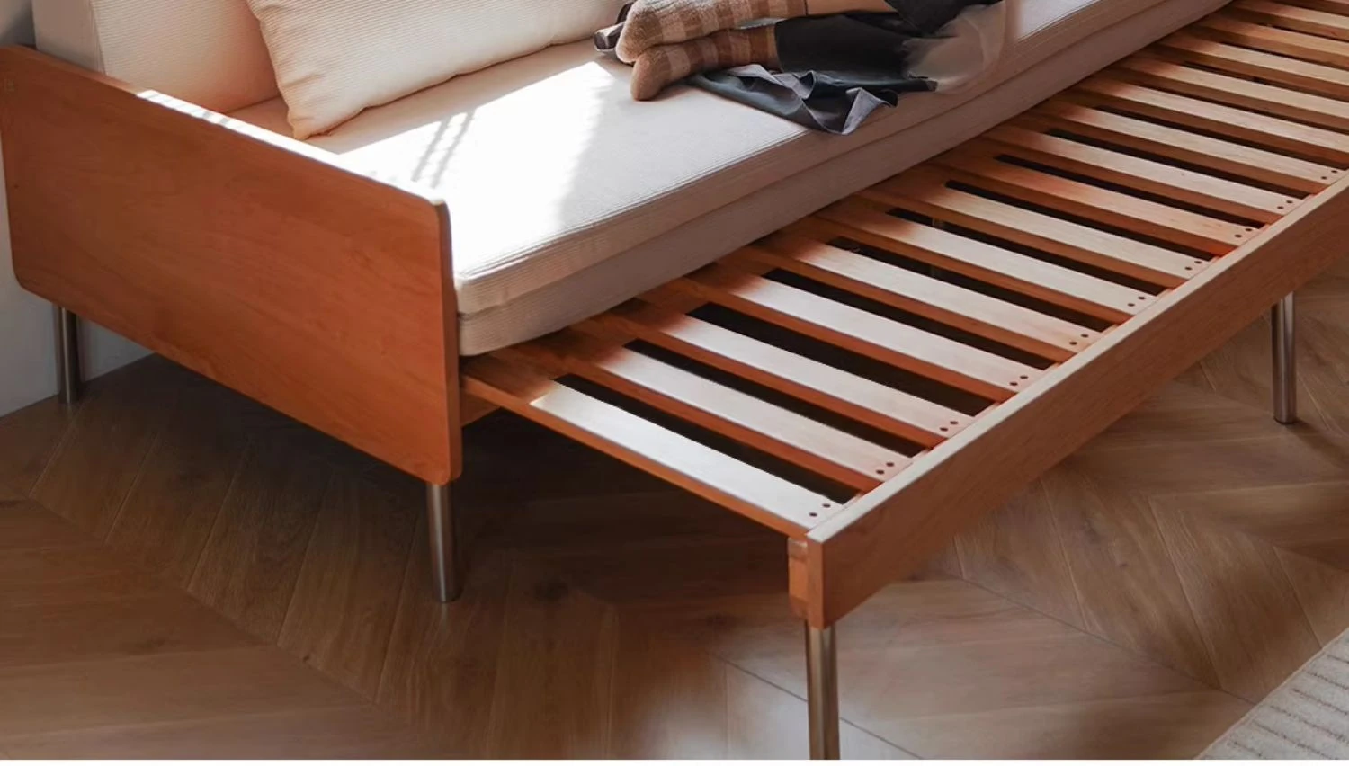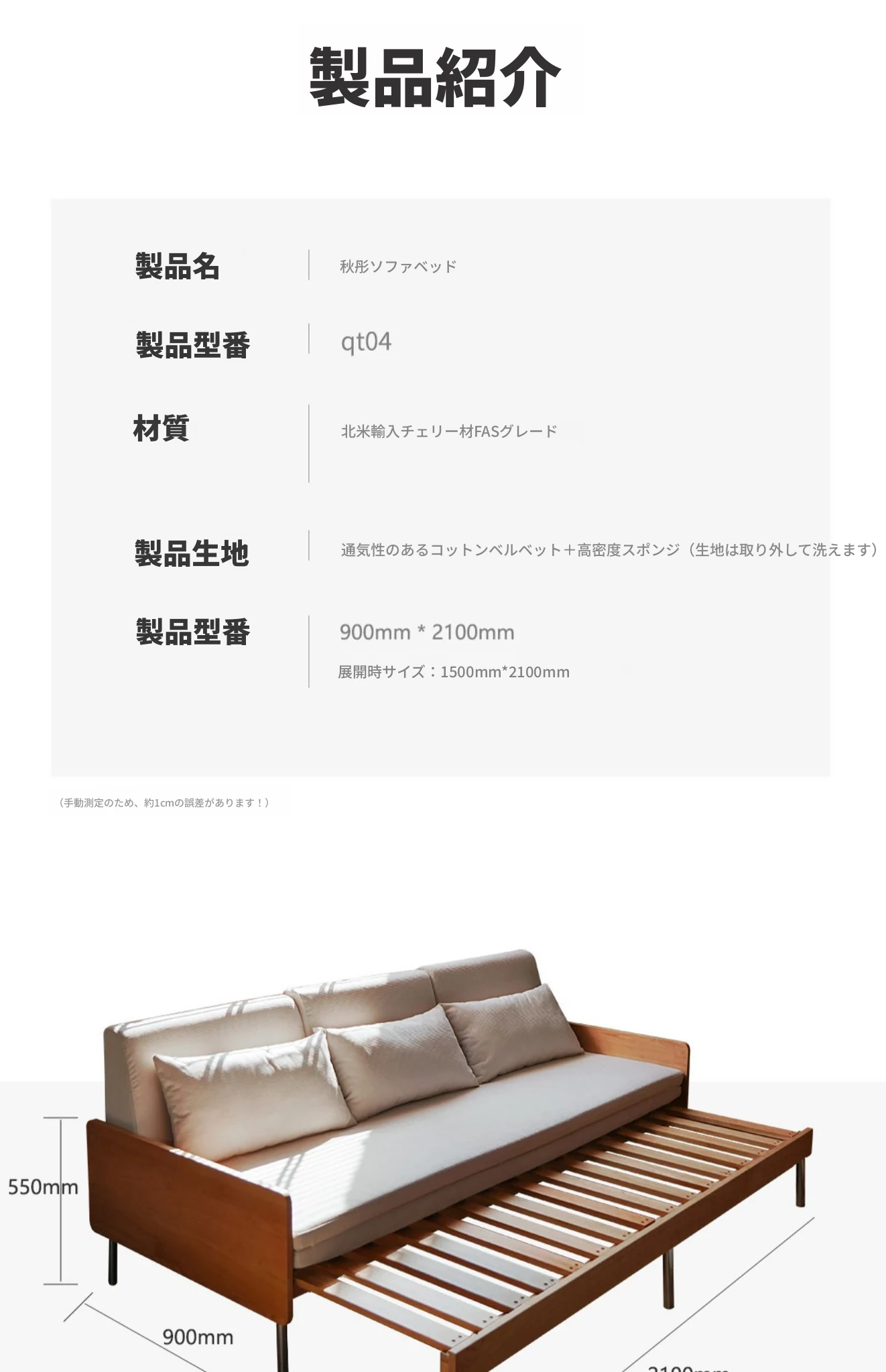チェリーウッド製スライド式ソファベッド|全木製・コンパクトな3人用・座っても寝ても快適な折りたたみソファ|小スペースにぴったり!