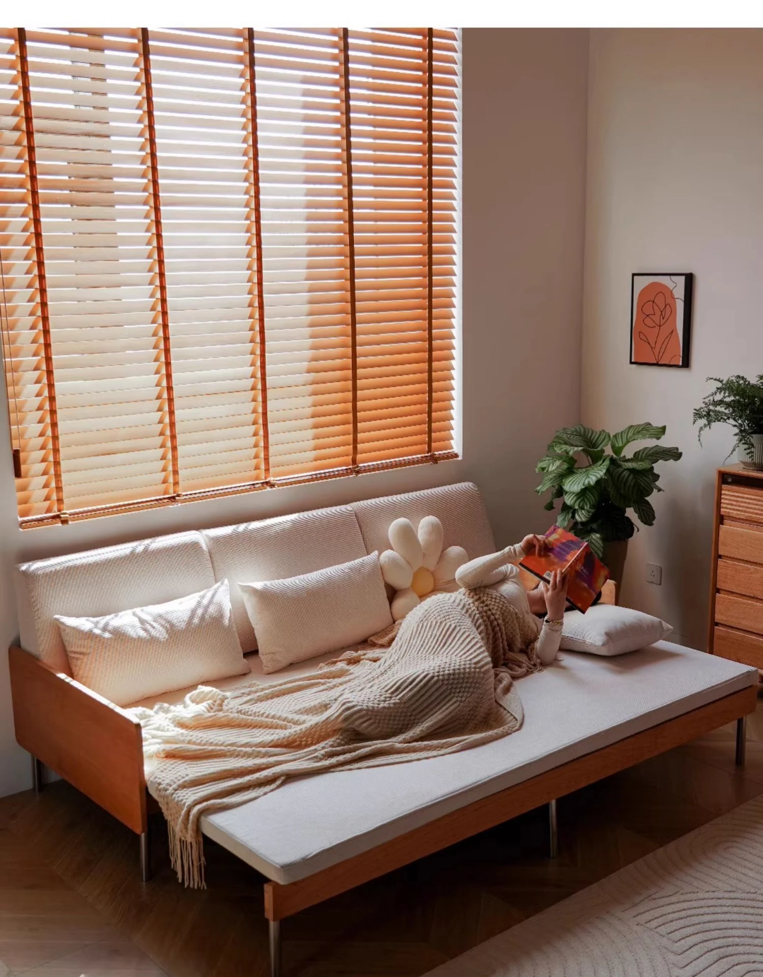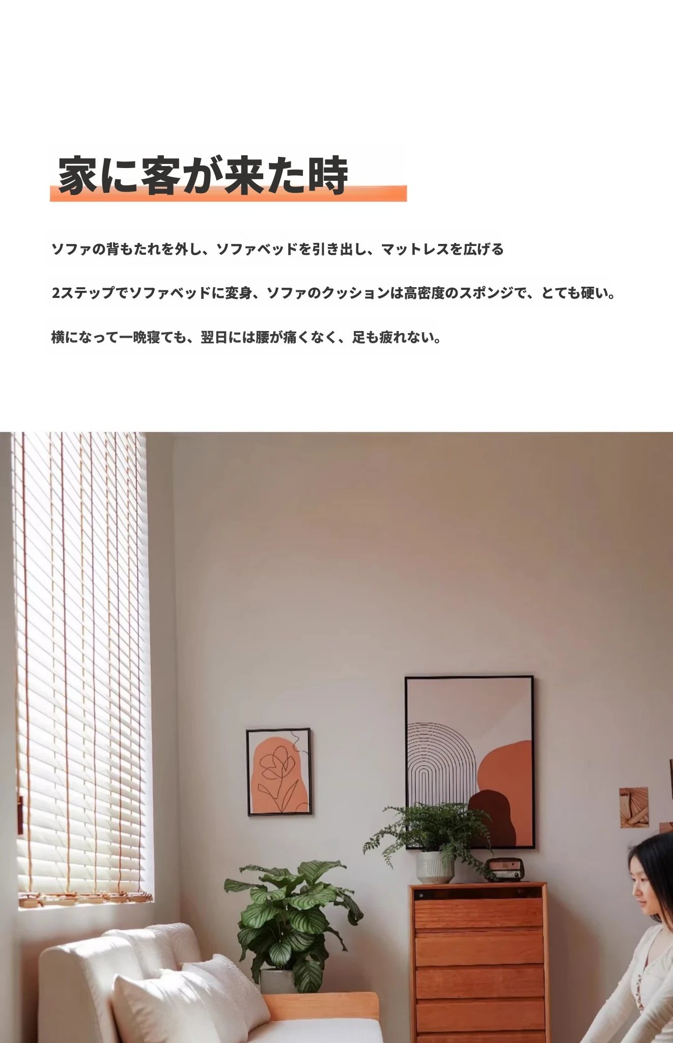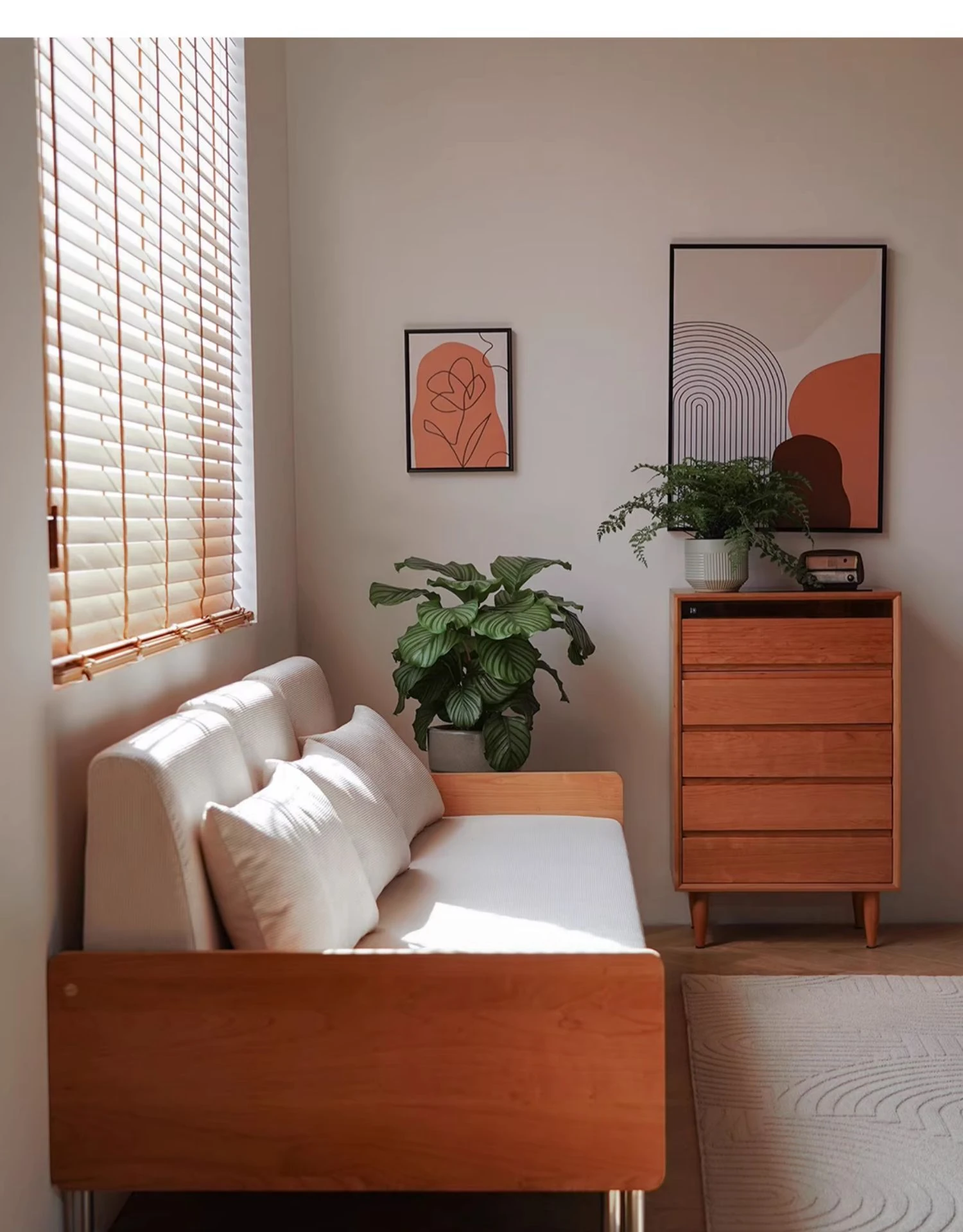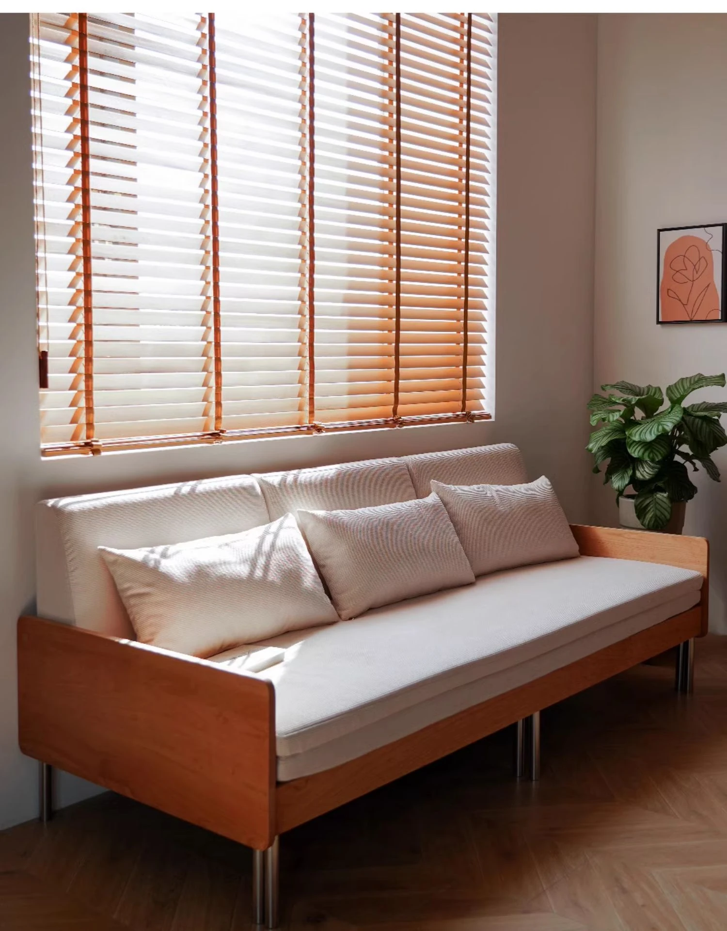 チェリーウッド製スライド式ソファベッド|全木製・コンパクトな3人用・座っても寝ても快適な折りたたみソファ|小スペースにぴったり!