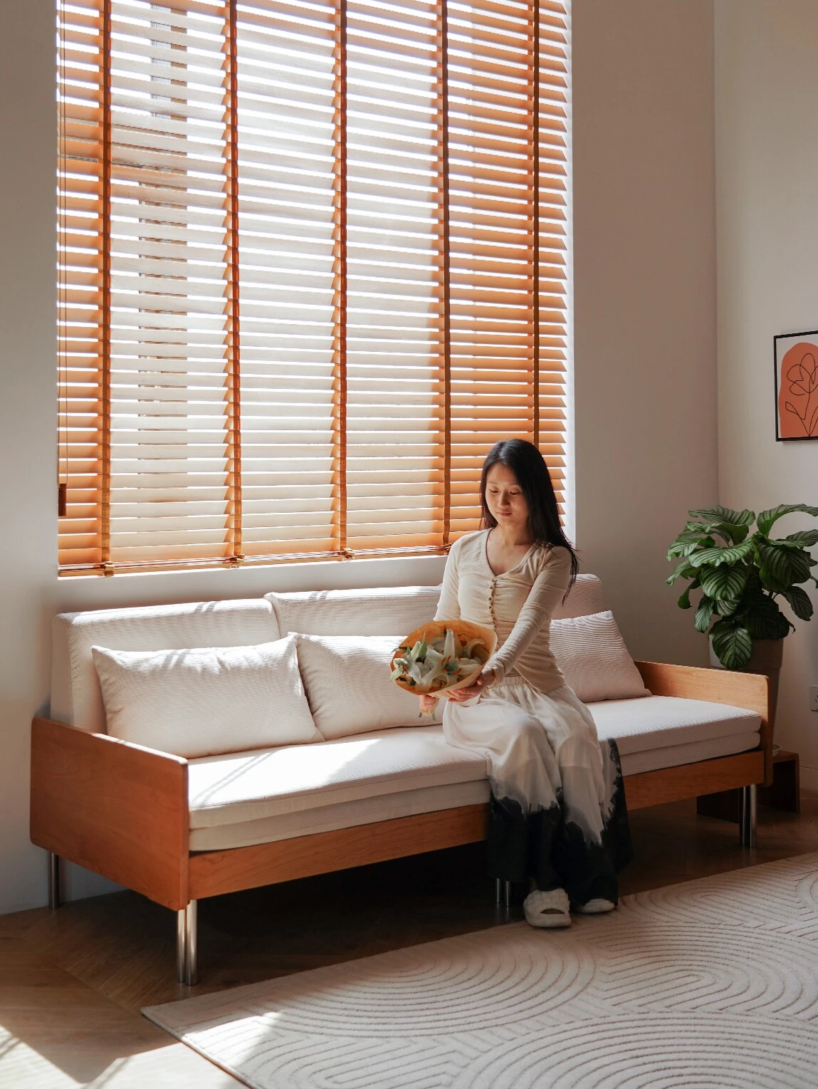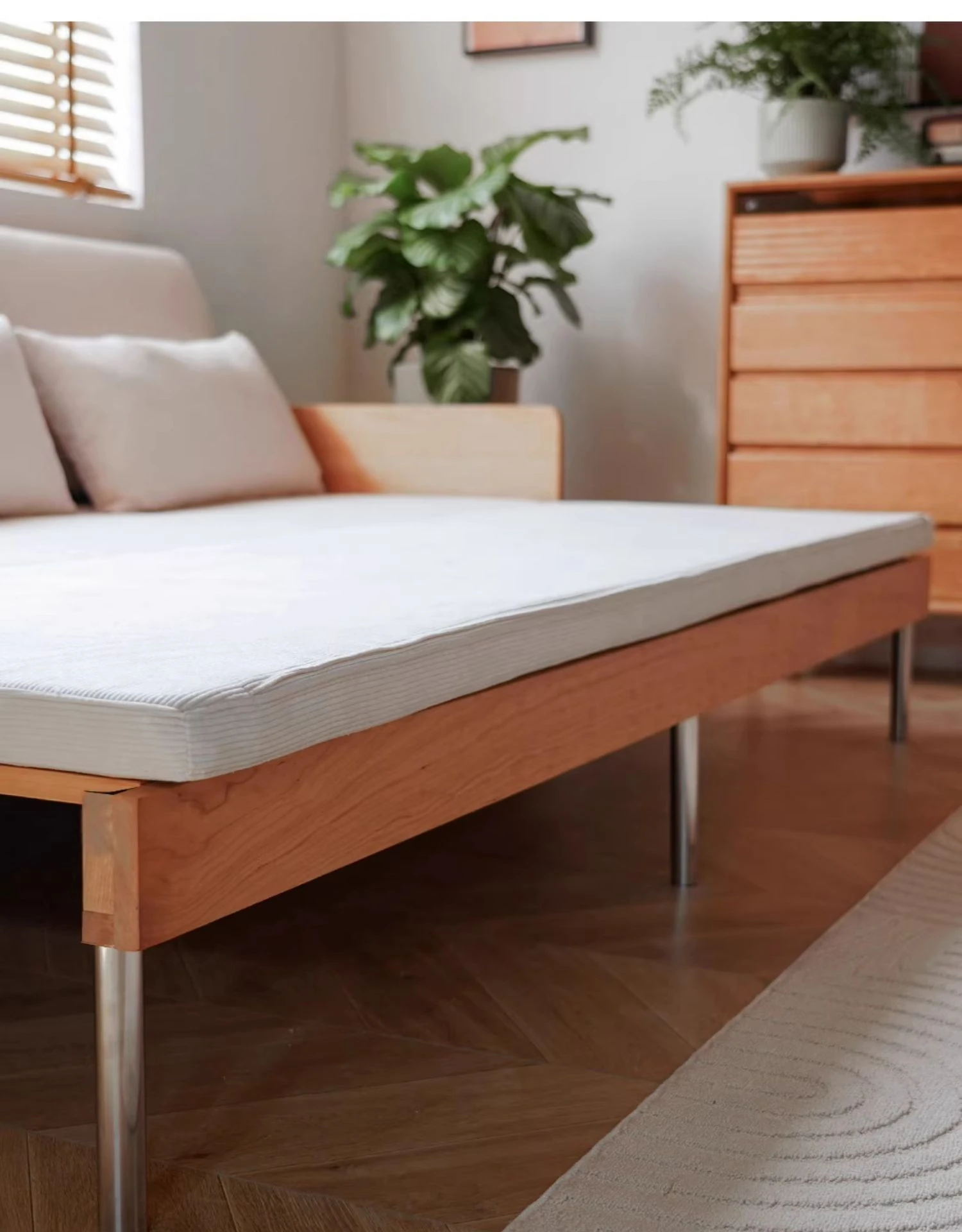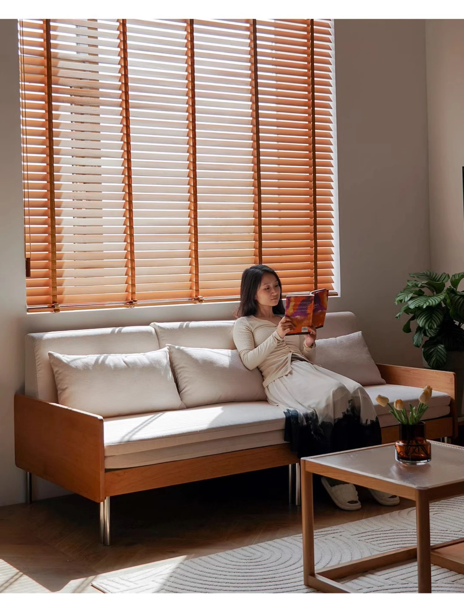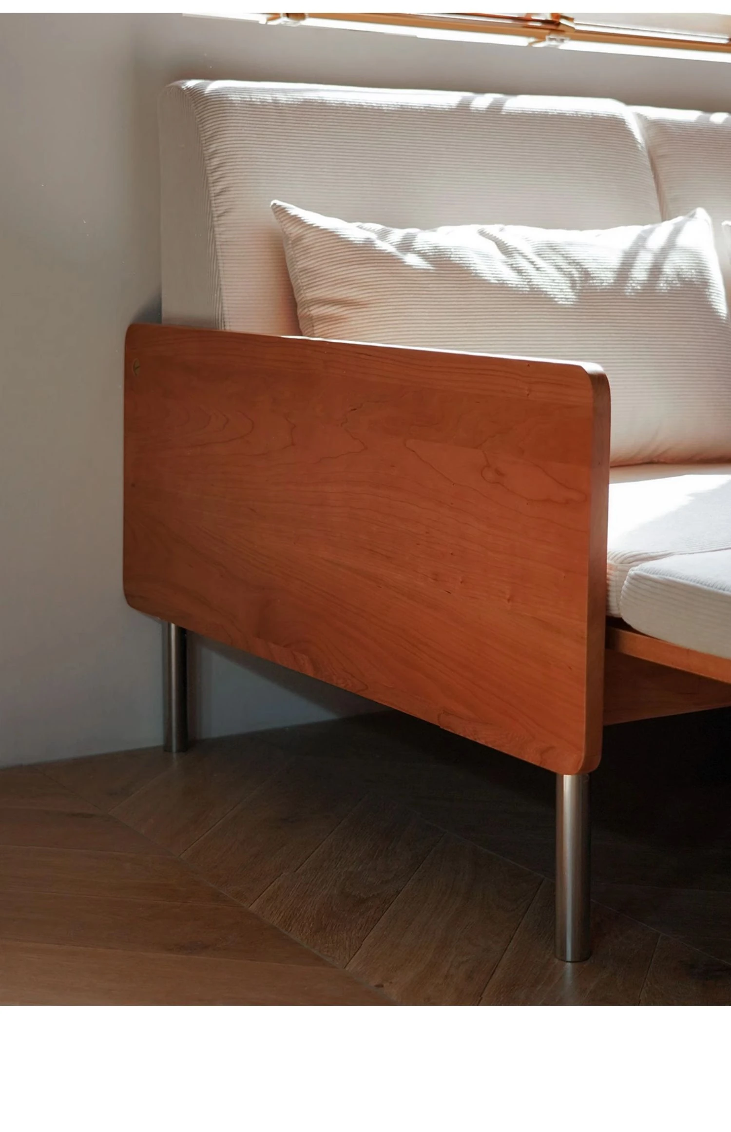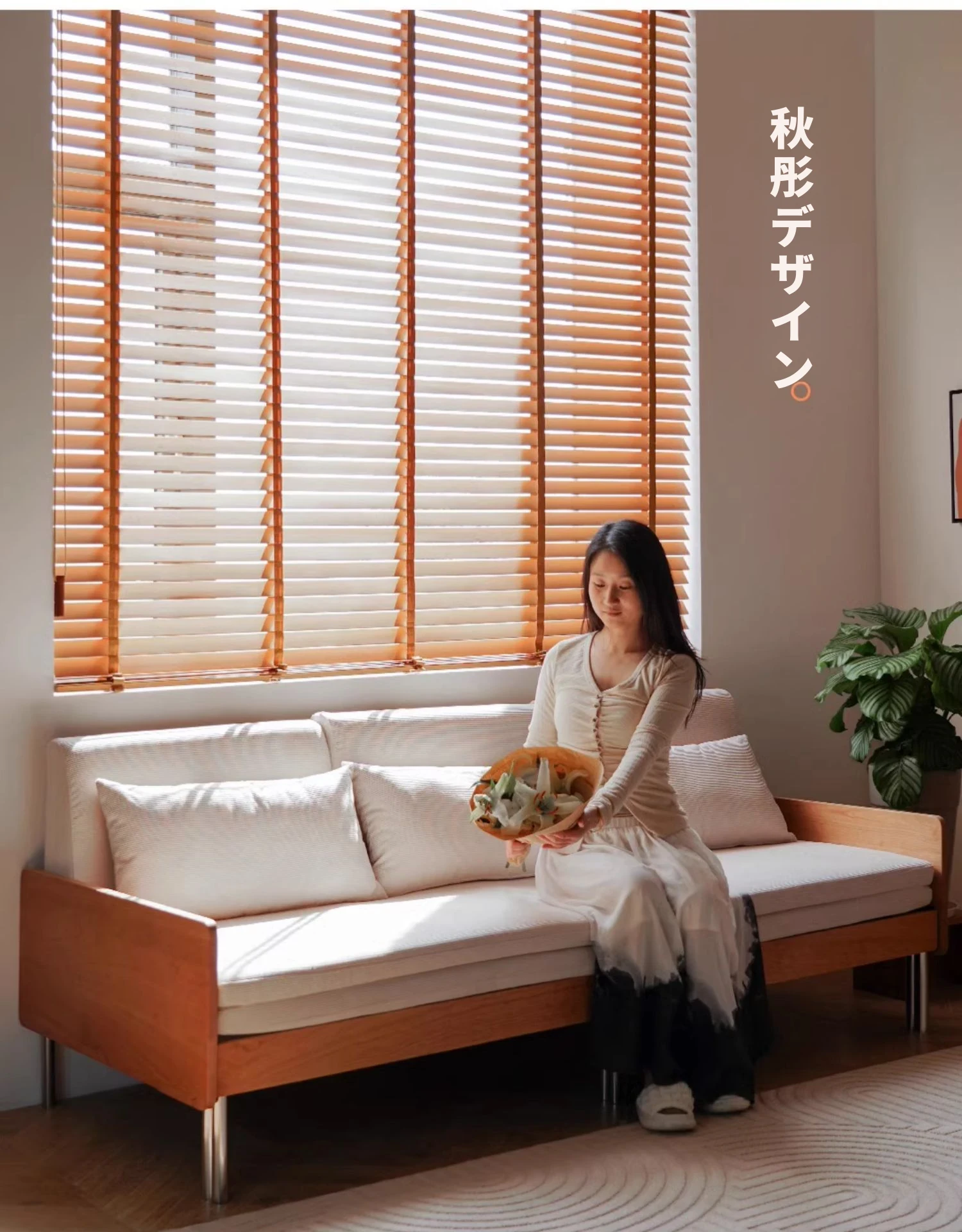 チェリーウッド製スライド式ソファベッド|全木製・コンパクトな3人用・座っても寝ても快適な折りたたみソファ|小スペースにぴったり!