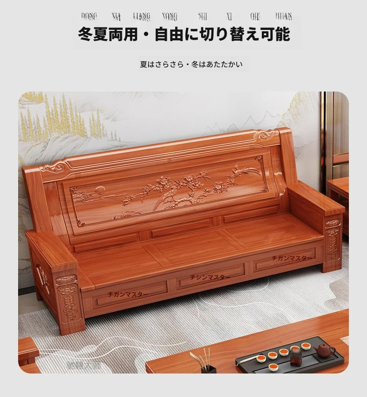 本格中華風無垢材ソファー 三人掛け 田舎の堂屋にぴったり!香樟木製のレトロな春秋椅子で、温もり溢れるリビング空間を演出。自宅の新築やおしゃれなインテリアに最適です!