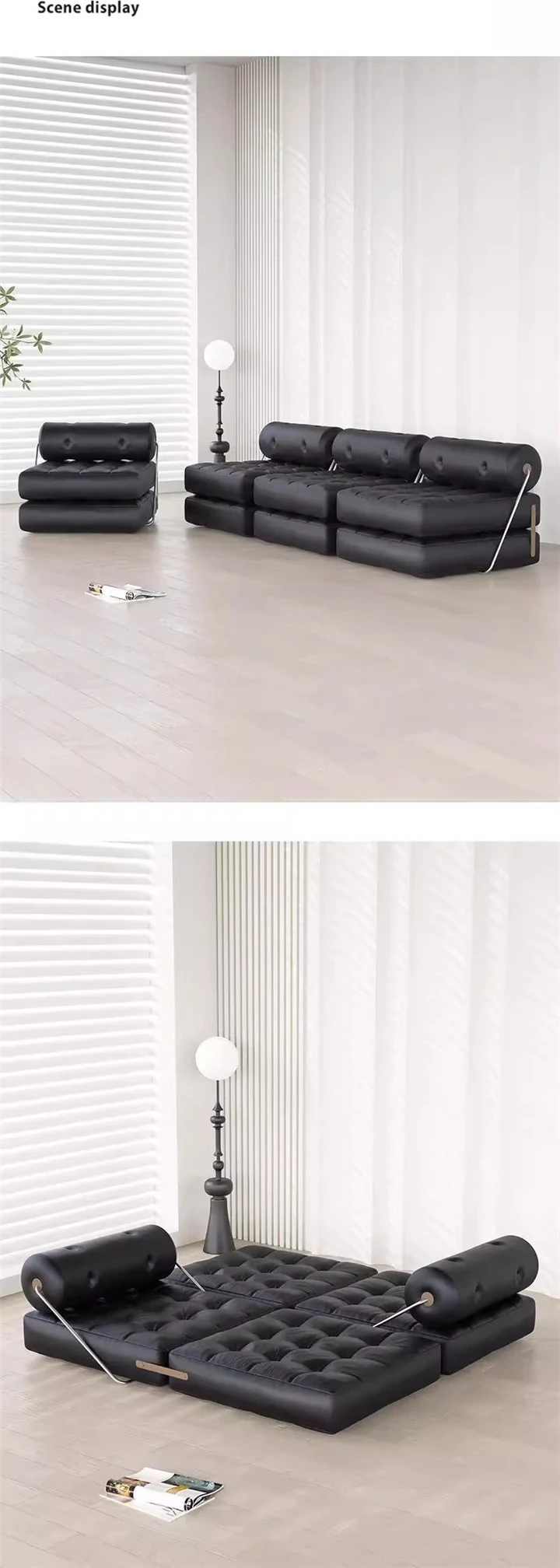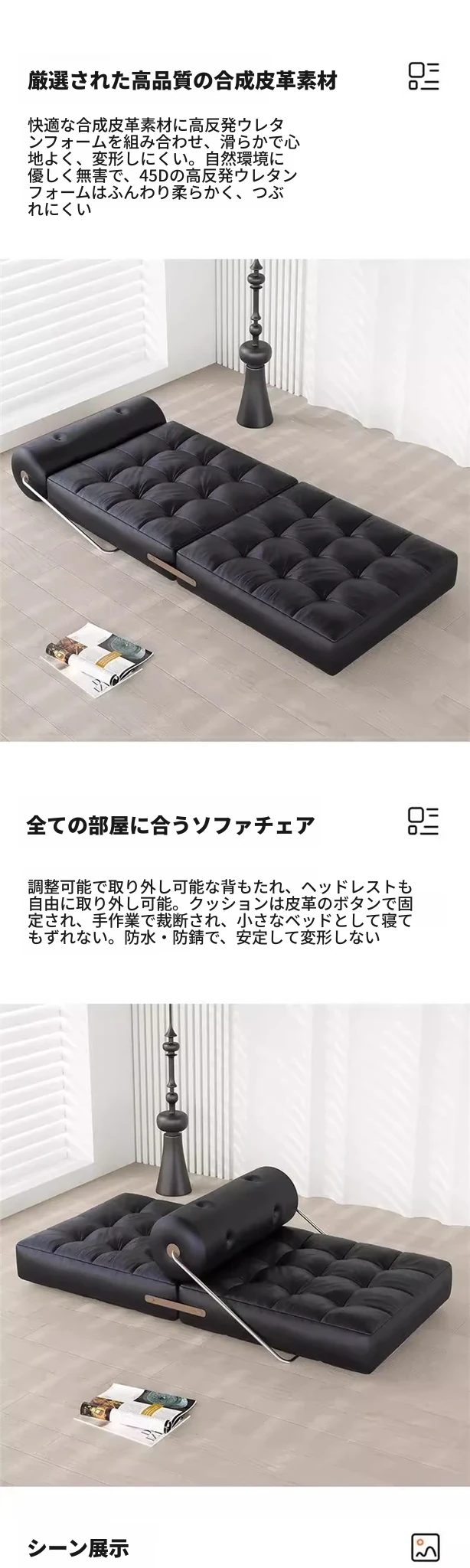折りたたみ式無垢材ソファベッド|小型リビングに最適な2WAYデザイン|シンプルでモダンな多機能|一人でも二人でも快適に使用可能!